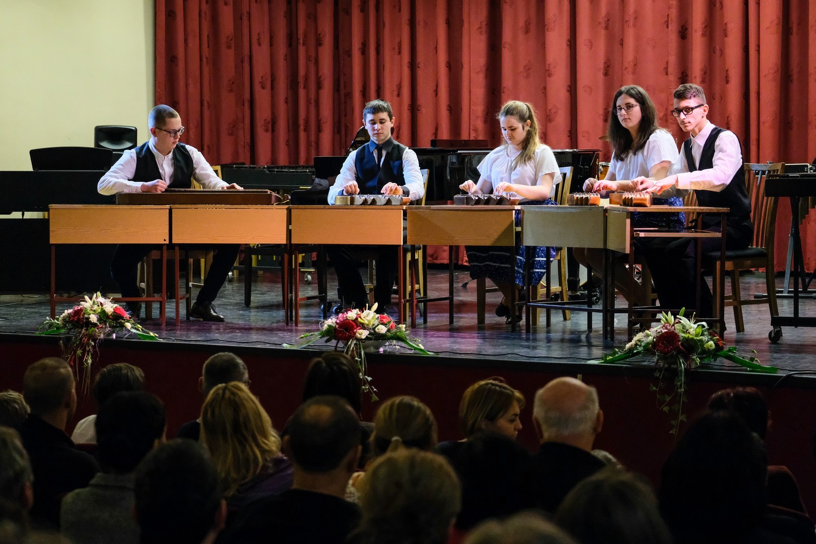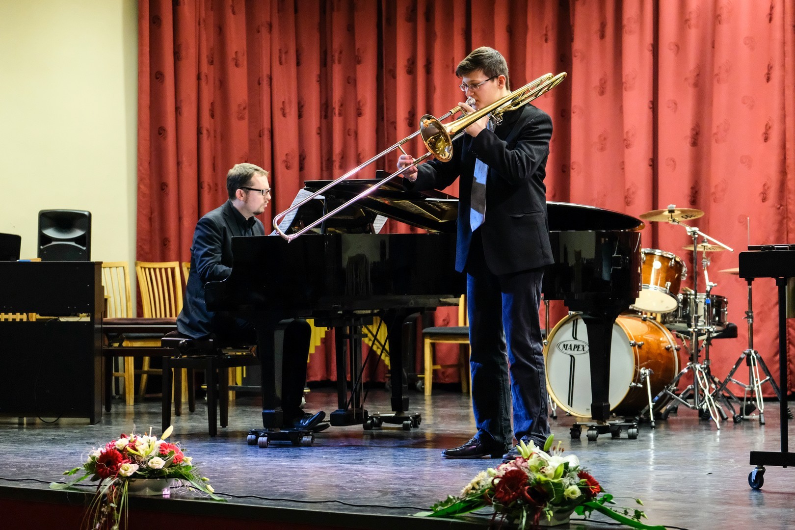 A köszöntők után következett a hangverseny, ahol a tankerület hat művészeti iskolájának diákjai és oktatóik szórakoztatták a közönséget. A koncert utolsó előtti számában Lebanov József és Almási Attila, a Police Big Band harsonása is színpadra léptek a gyulai zeneiskola dixielandegyüttesével.