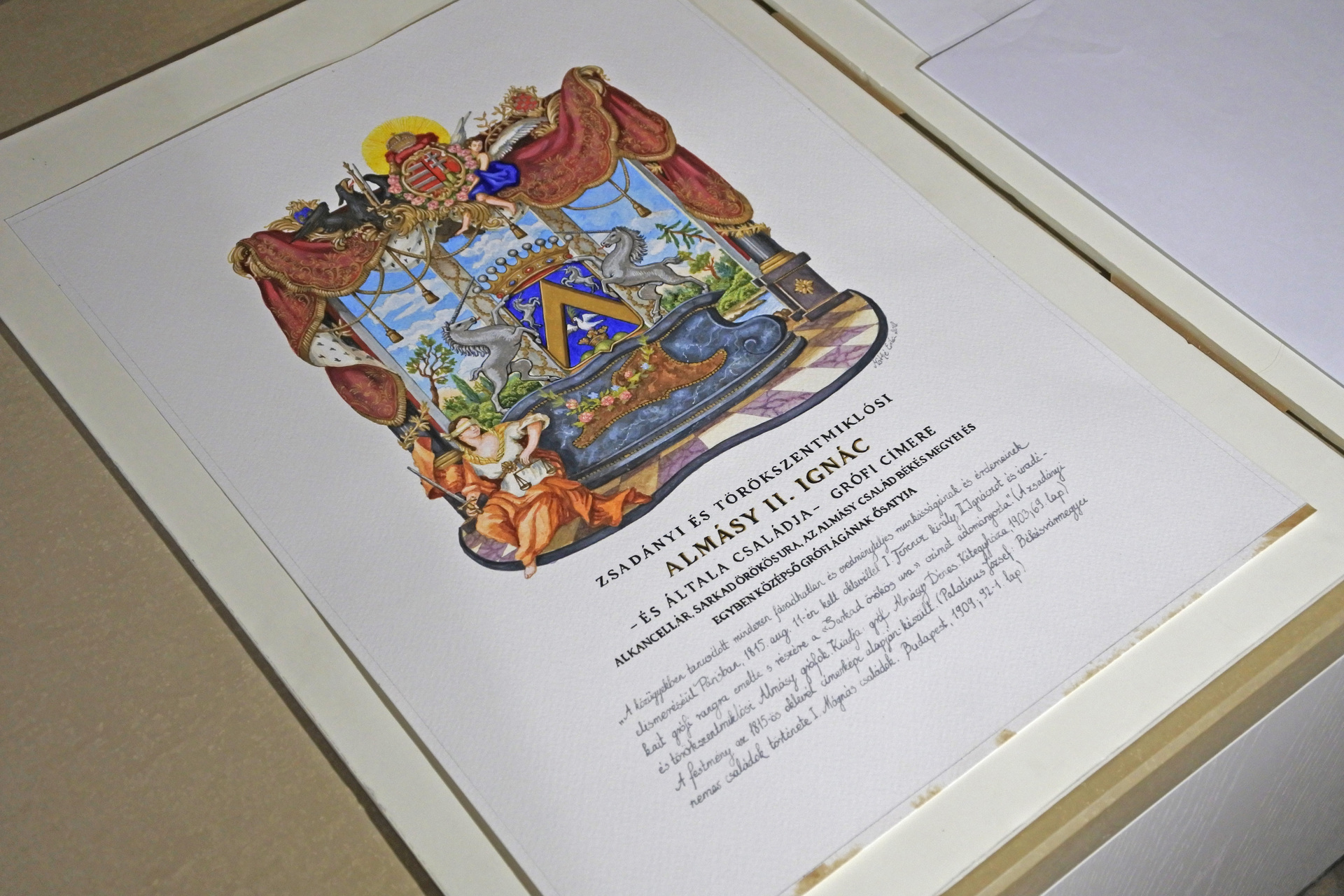 Hozzátette, hogy úgy gondolták, a címernek helye van a kastélyban, hogy méltóképpen őrizze a grófi család emlékét. Megtudtuk, hogy a képet Máté Erika címer- és családfafestő készítette.