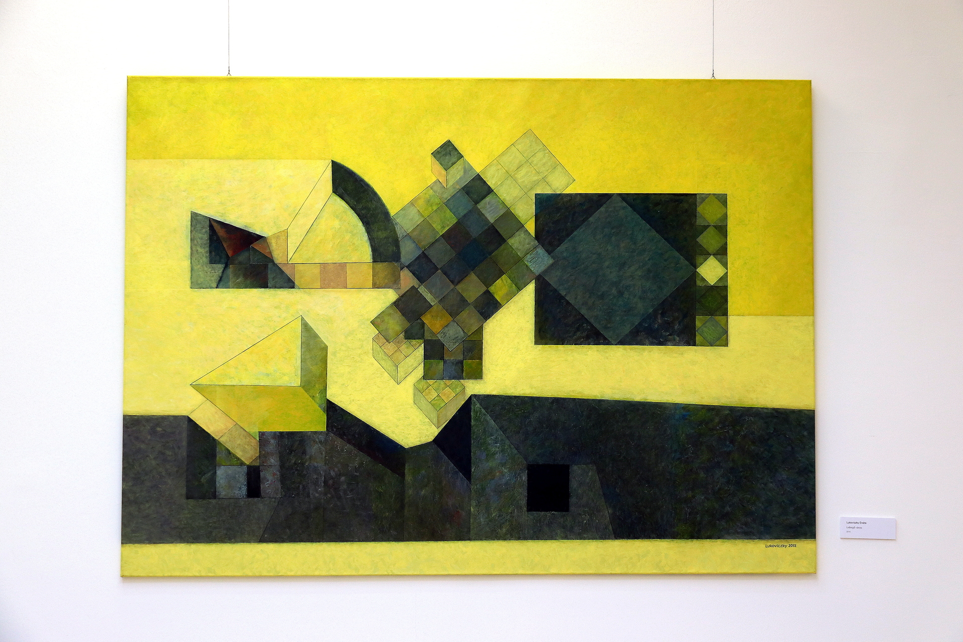 Lukoviczky Endre festő, grafikus a főiskola elvégzése után sokszorosított grafikával, 1981-től szitanyomással foglalkozott. Festményeit az orosz avantgárd konstruktivista iránya és a szuprematizmus alakította. Felismerhető formái elvont terekben lebegnek, írásjelei absztrakt alakzatokként jelennek meg művein. Gyakran sokszögű képformák nyílásaiban, kép a képben kompozíciós modulban fogalmaz.