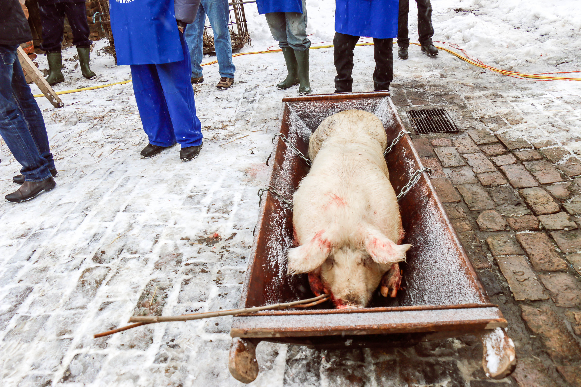 A napindító gondolatok után sváb zenére kezdődött el a hagyományos, német disznótor. Mittag Mónika, a gyulai német nemzetiségi önkormányzat elnöke lapunknak elmondta, hogy minden évben nagyon élvezik a sváb mulatságot, ami abban különbözik a hagyományos magyar disznóvágástól, hogy az állatot forró víz segítségével kopasztják, majd fellógatva dolgozzák fel.