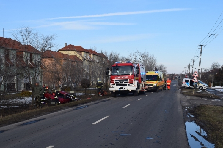 A balesetben a jármű vezetője könnyű, utasa súlyos sérülést szenvedett.