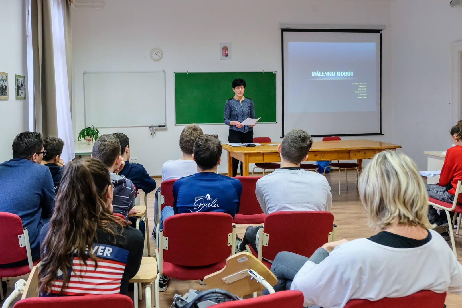 A rendhagyó történelemórán a tanulók felidézték az elhurcolás előzményeit, majd a gyulai vonatkozású rendeleteket és a helyi eseményeket vették sorra. Ezek után a diákok olvastak fel naplórészleteket, verseket, amelyek a tábori életbe engedett betekintést.