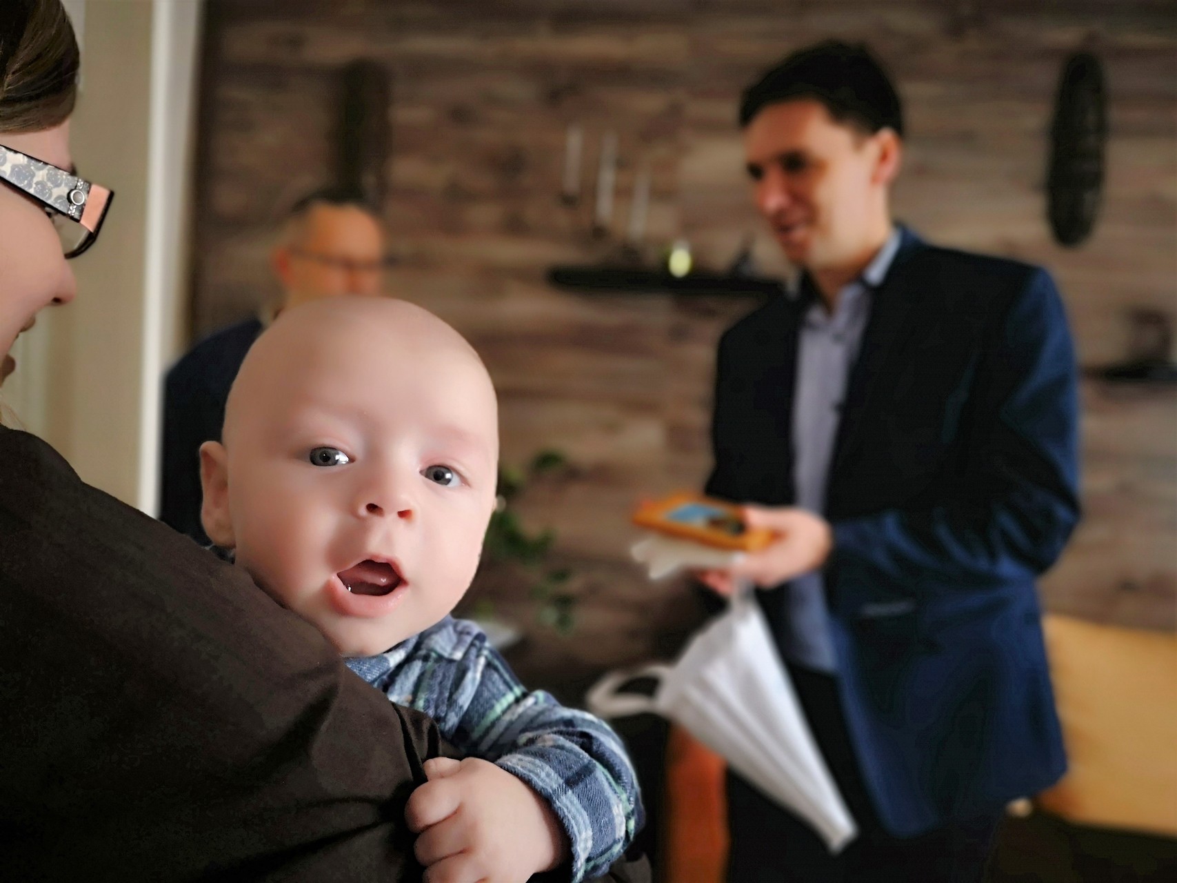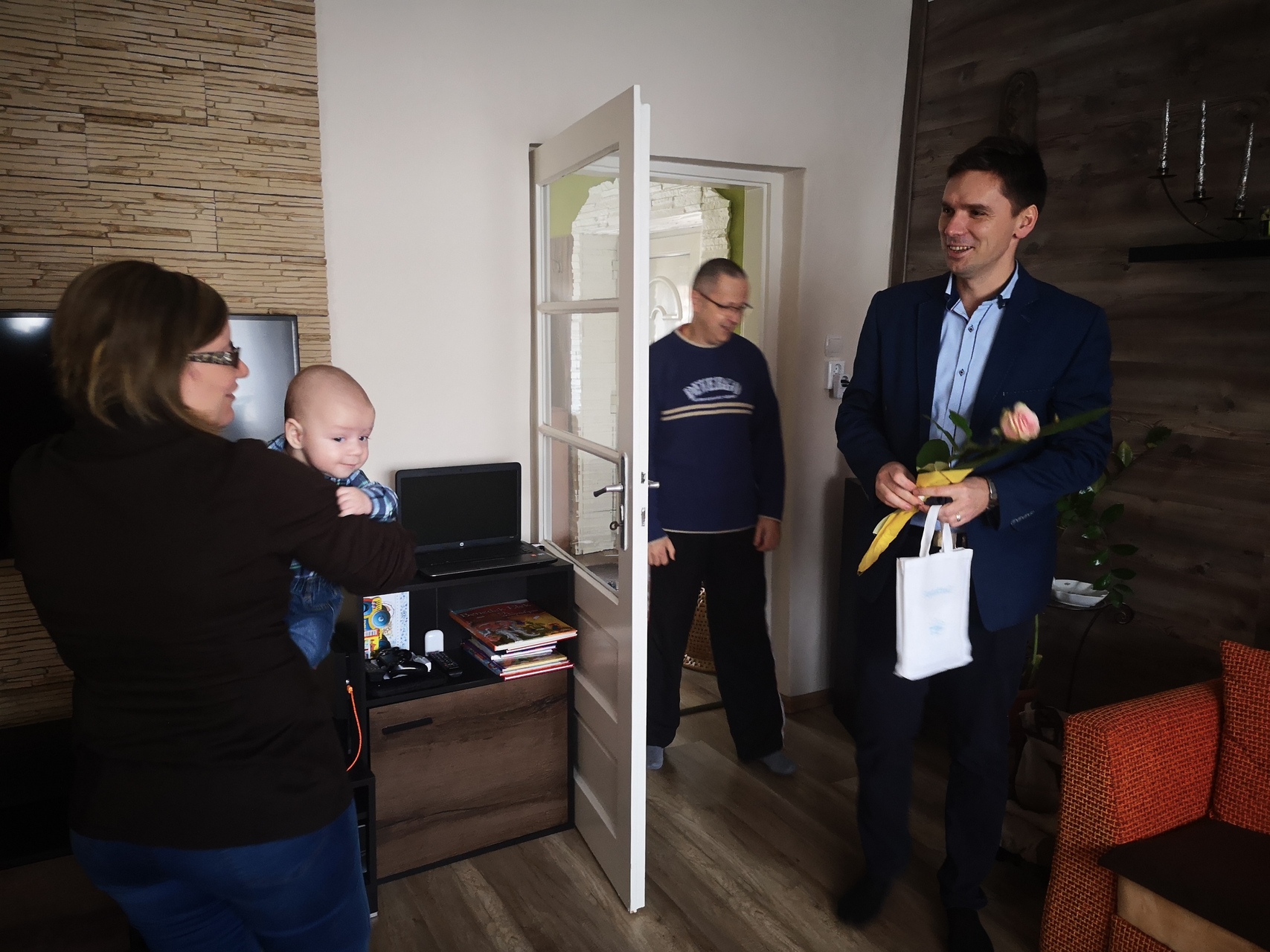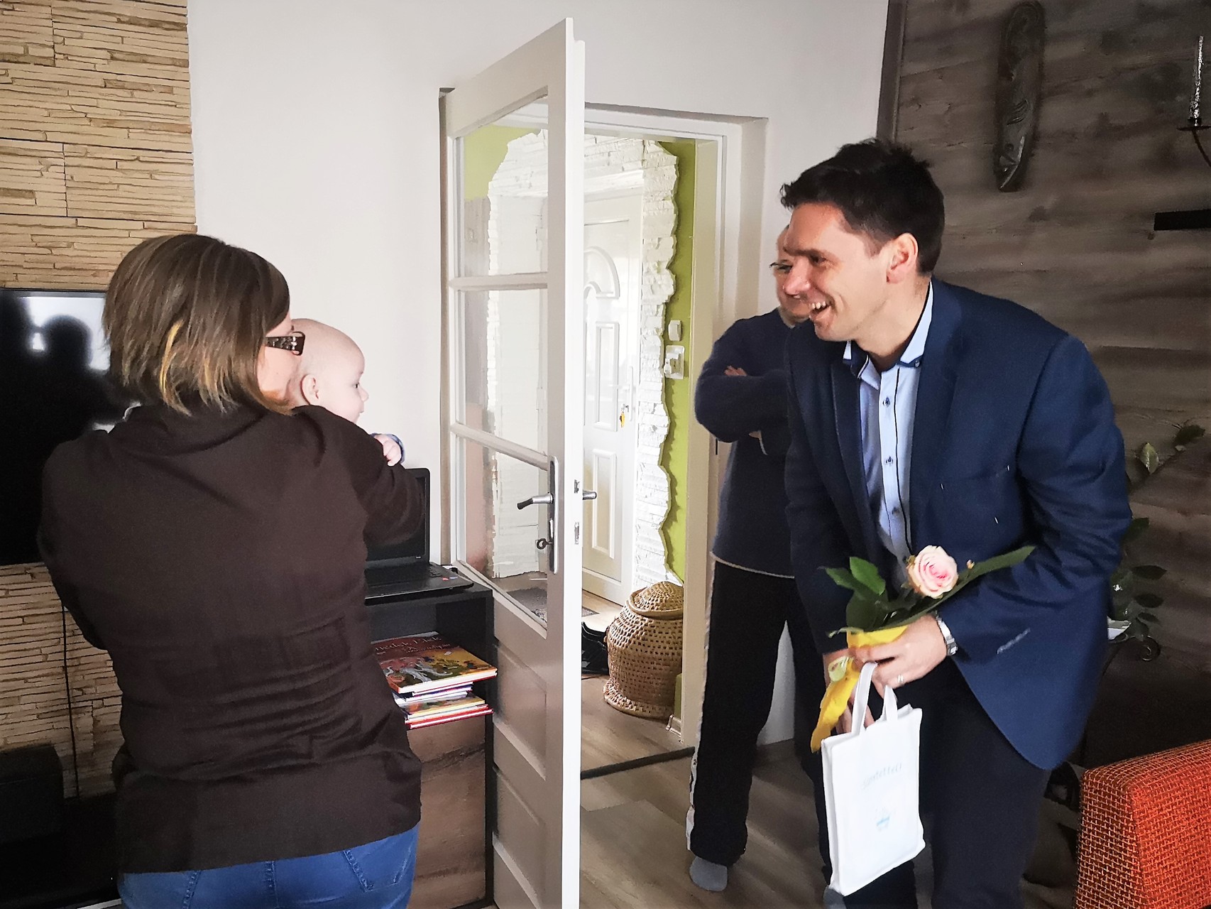 Fekete Attilát és családját köszöntötte a gyulai önkormányzat nevében Kiss Szabolcs képviselő február első napján a városi Babaruha program keretében.