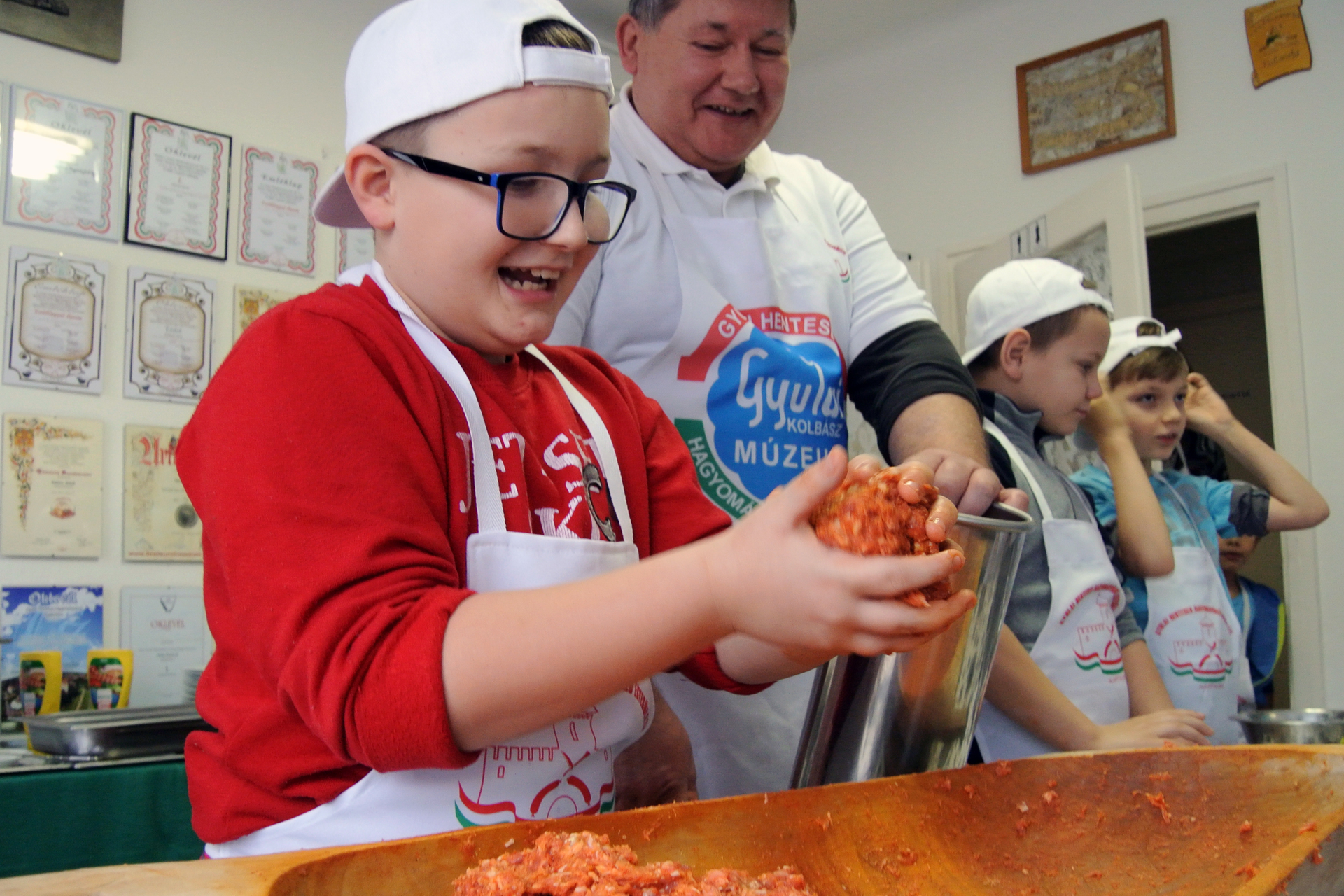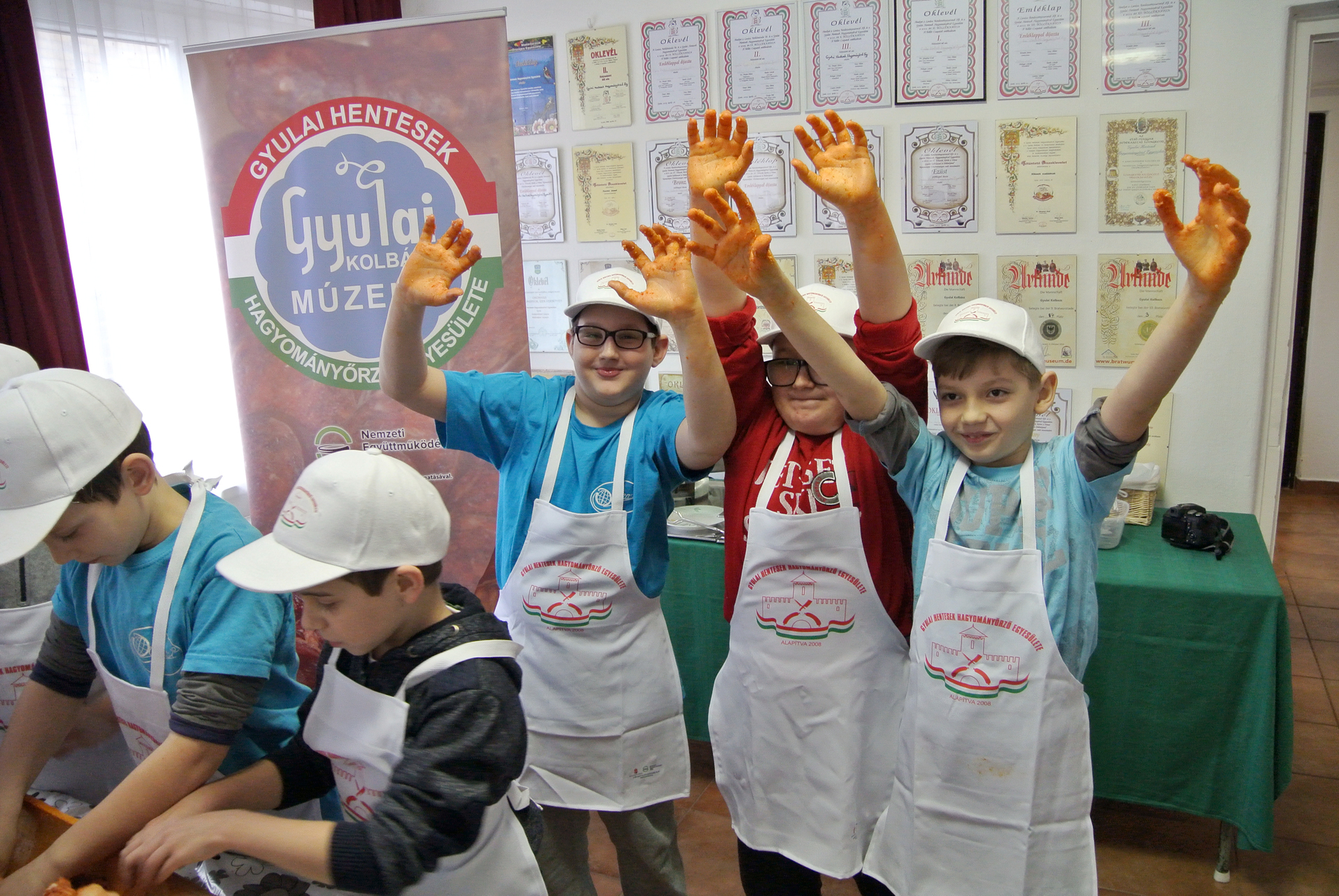 Egészséges élelmiszer, egészséges táplálkozás = egészséges ifjúság – újratöltve címmel rendezett ismeretterjesztő programot a a Gyulai Hentesek Hagyományőrző Egyesülete február 2-án. A Nemzeti Együttműködési Alap pályázatának keretében Dinya Imre elnök előadást tartott az egészséges ételekről, körbevezette vendégeit a Gyulai Kobászmúzeum tárlatán, majd Hajduk Zoltán segítségével Gyula város méltán leghíresebb ehető termékének elkészítésébe is beavatta őket. Videós anyagunkban Dinya Imre mesél a programról és láthatjuk a Dürer iskola diákjait munka közben.