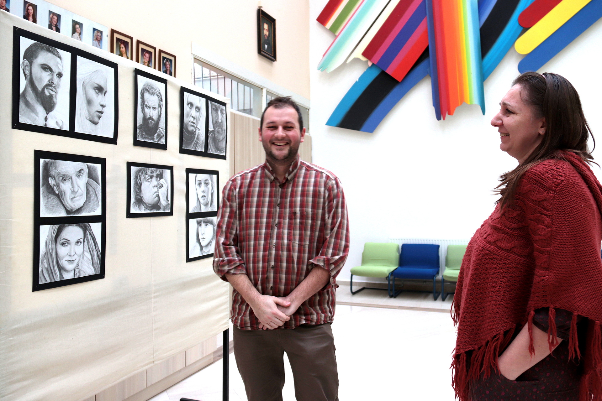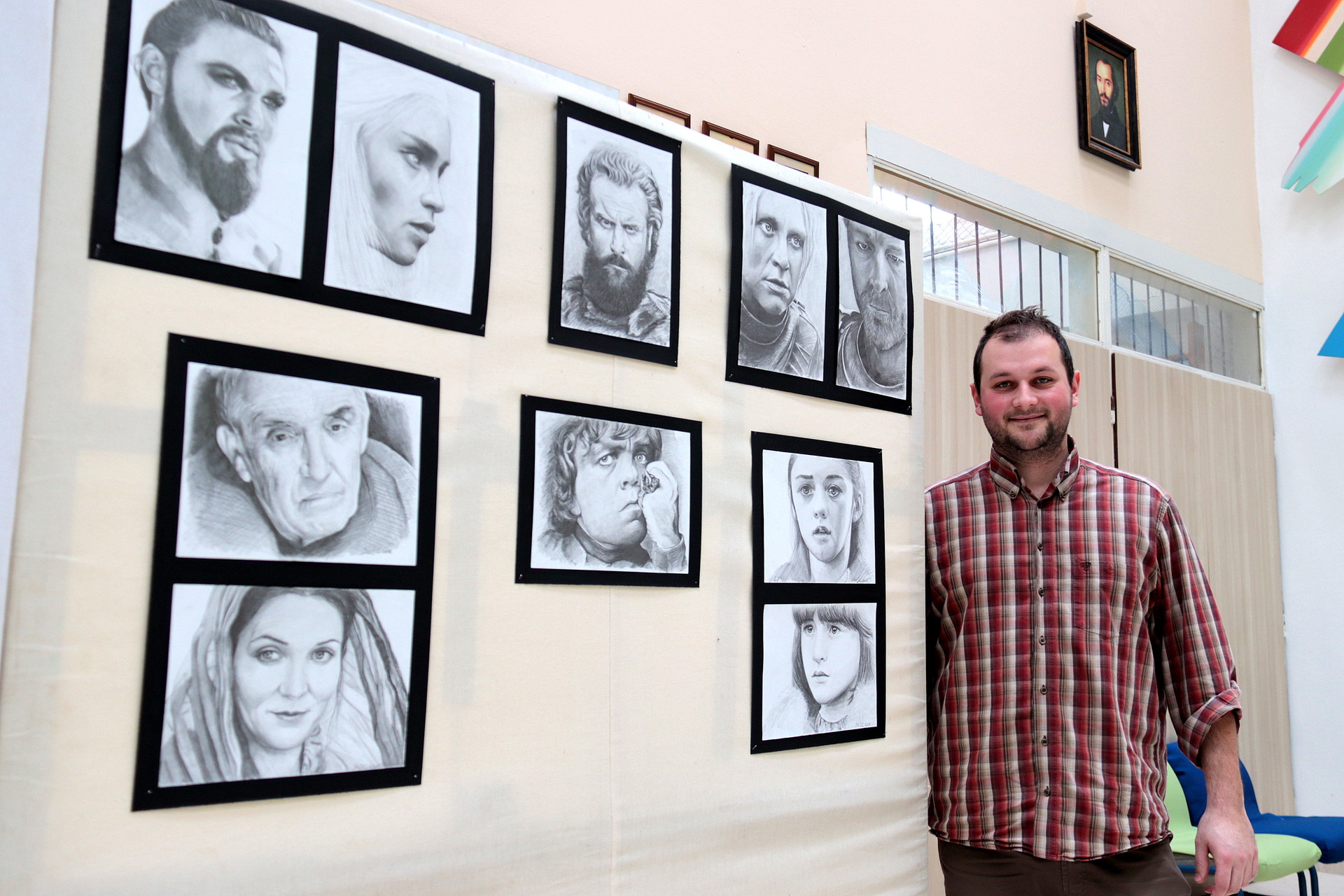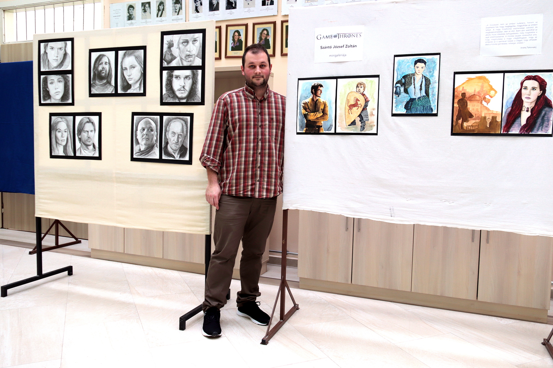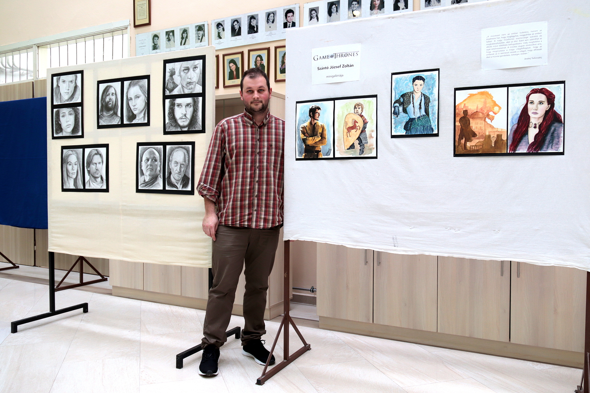 Szántó József Zoltán angolt tanít a román gimiben, abban az iskolában, ahol a Trónok harcának is nagy a rajongótábora. Ez a két legfőbb oka annak, hogy a portrékat pont itt állította ki. Mindenképp azt szerette volna elérni, hogy a sorozatot még április előtt, vagyis a soron következő évad premierjét megelőző várakozási időben mutassa be a fiataloknak. Mivel a grafikáknak nagy a sikerük, feleségével, aki szintén angol szakos pedagógus, azt tervezik, hogy egy másik gyulai helyszínre is elviszik a válogatást.