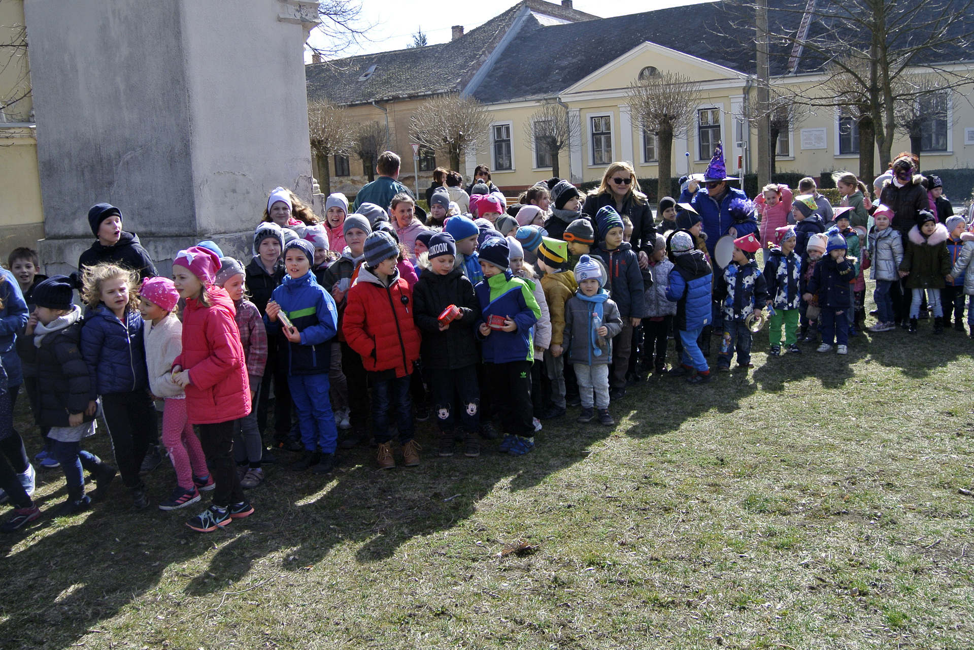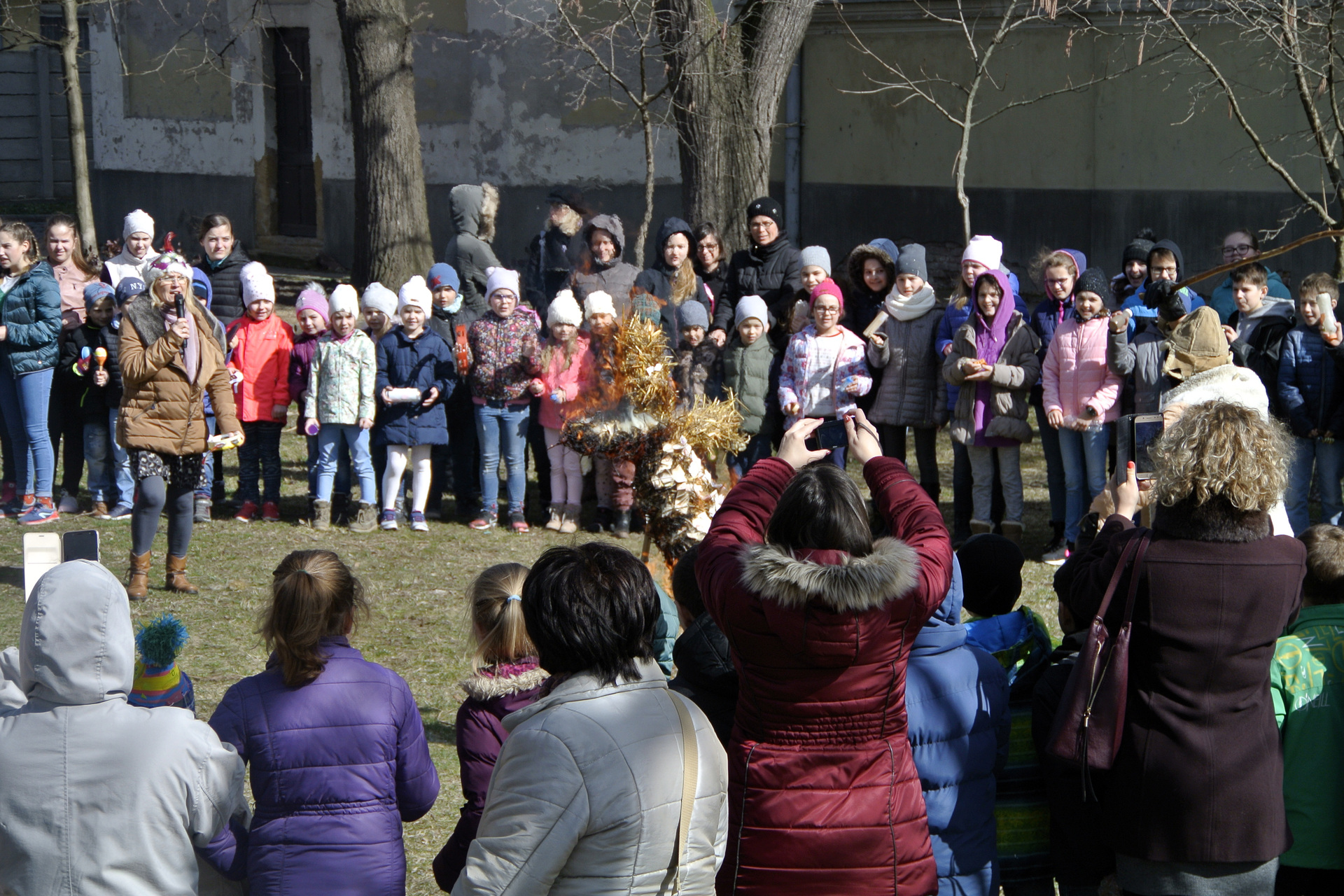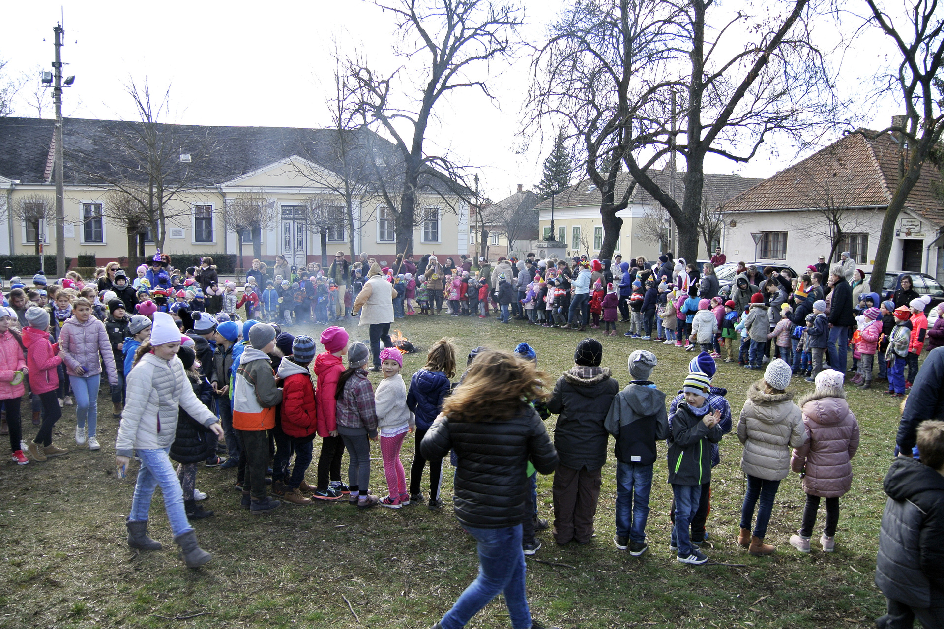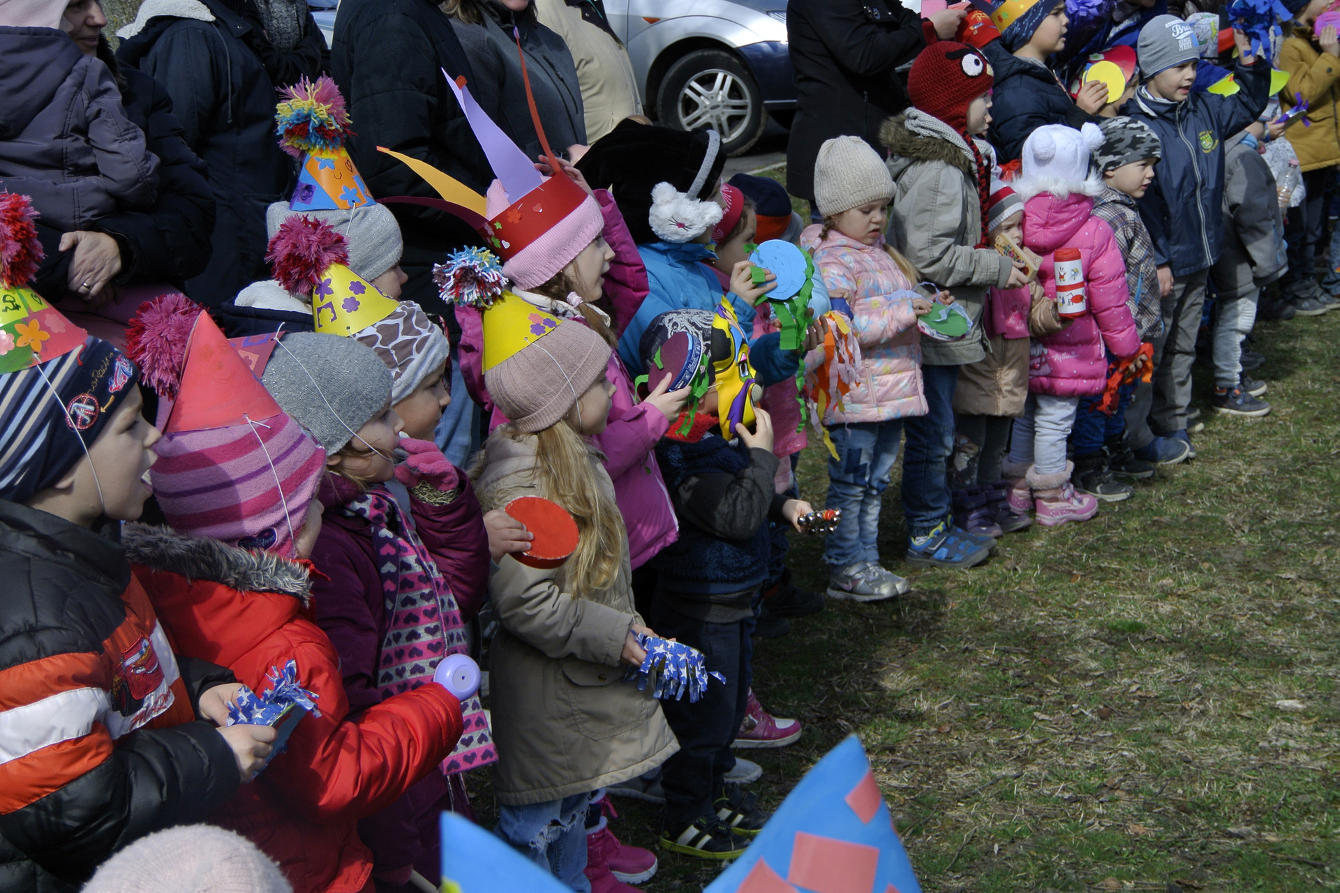 Zajongva, mondókázva és énekelve űzték el a telet a gyulai óvódások és általános iskolások március 5-én a téltemetés elnevezésű rendezvényen.