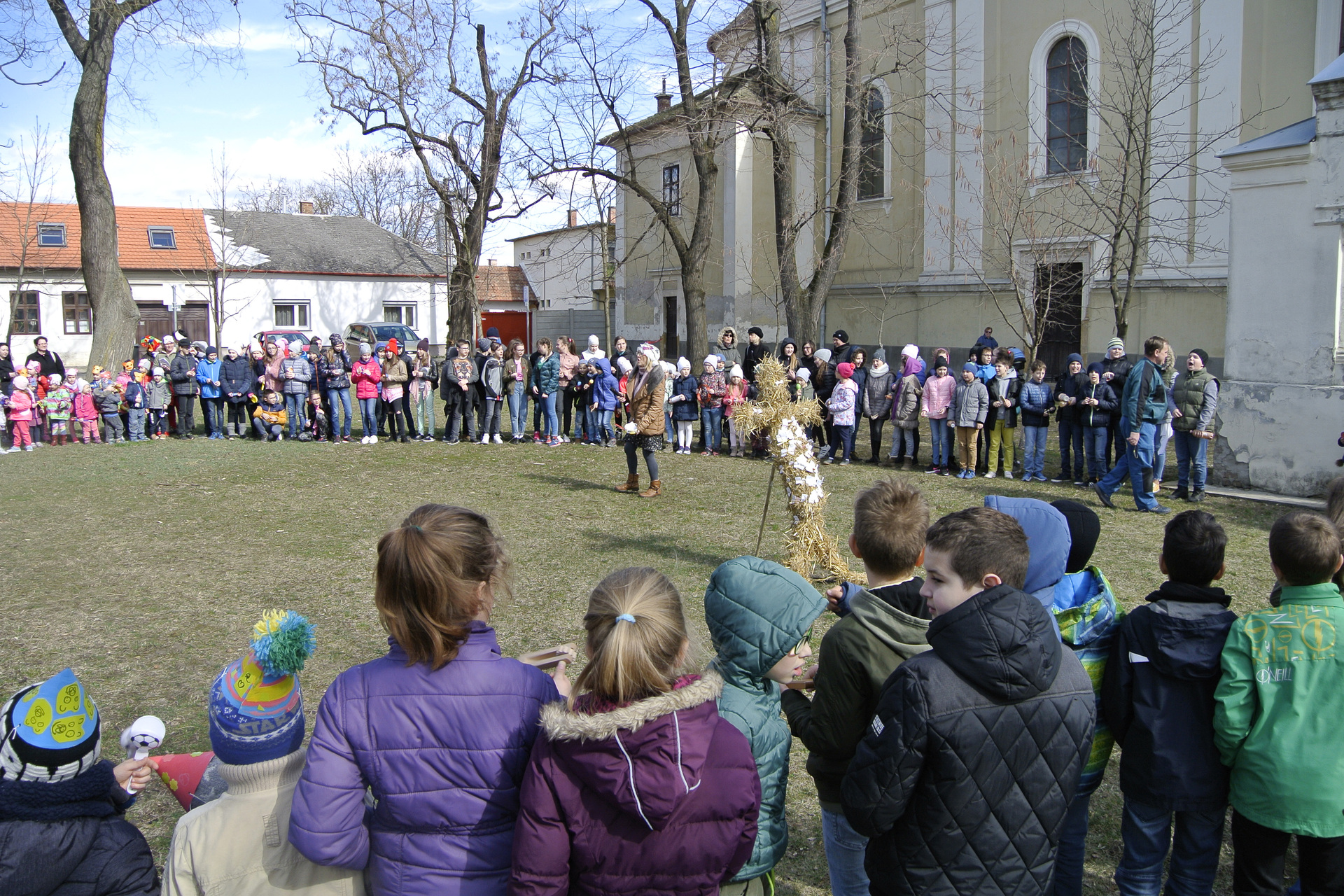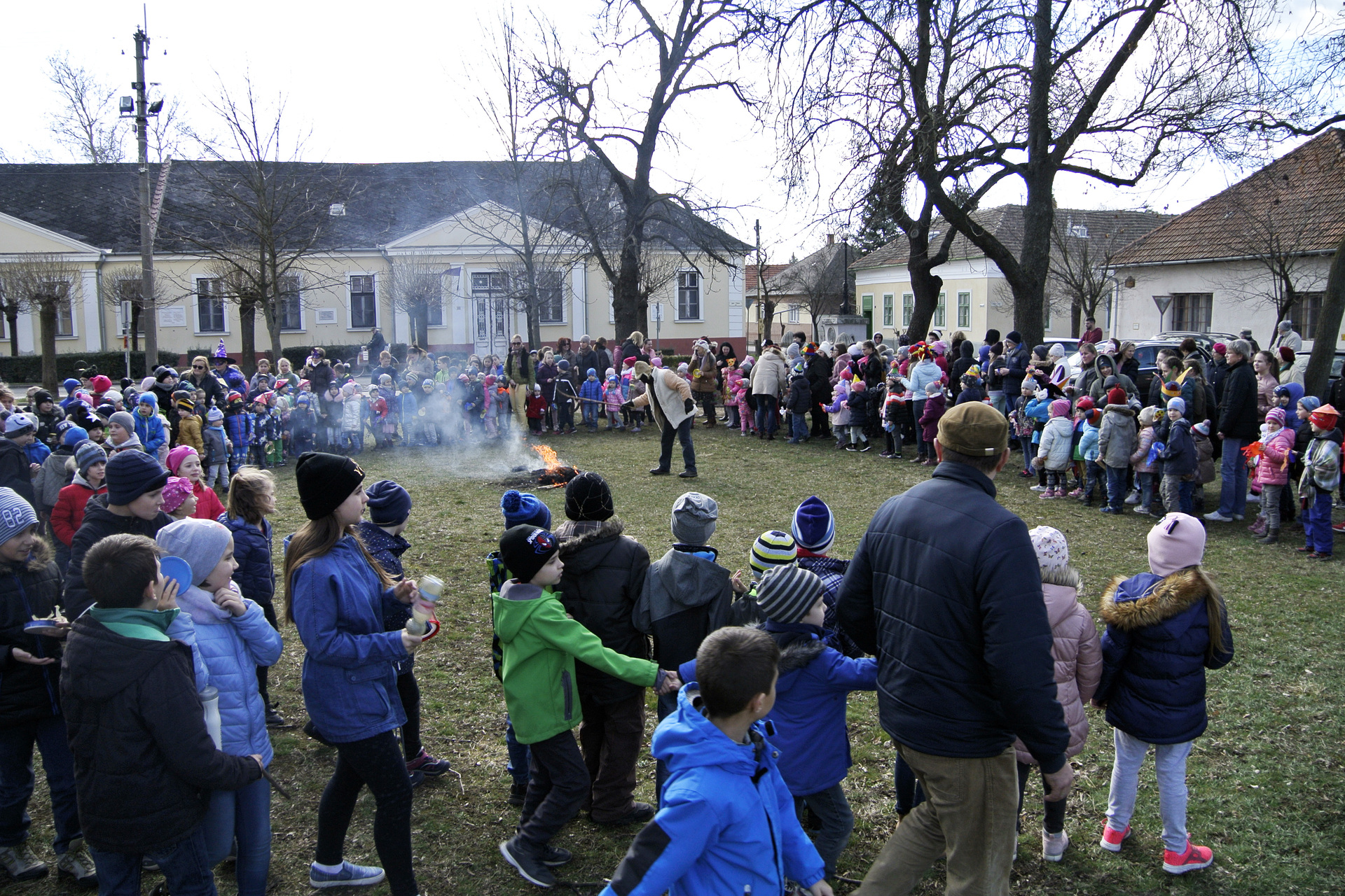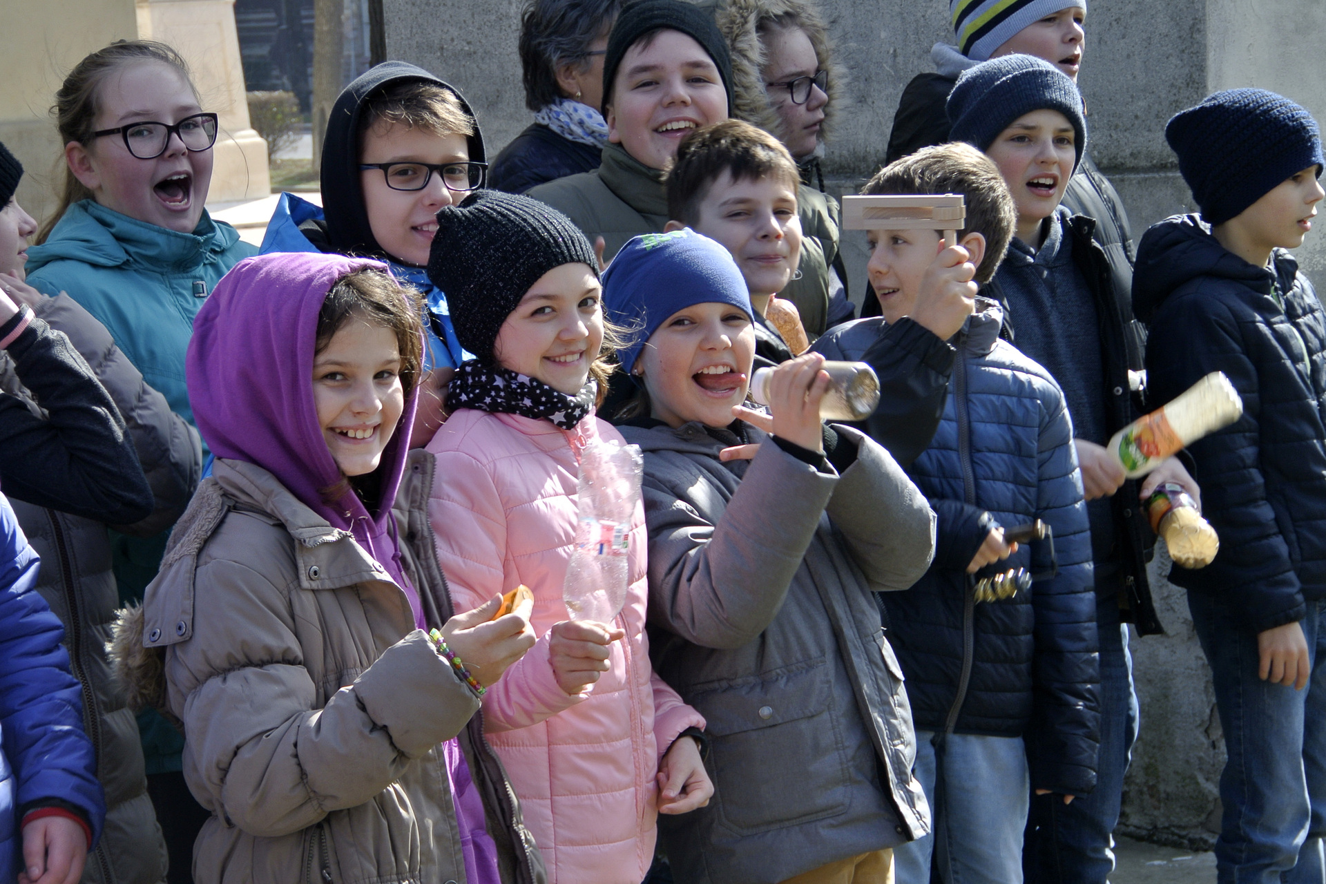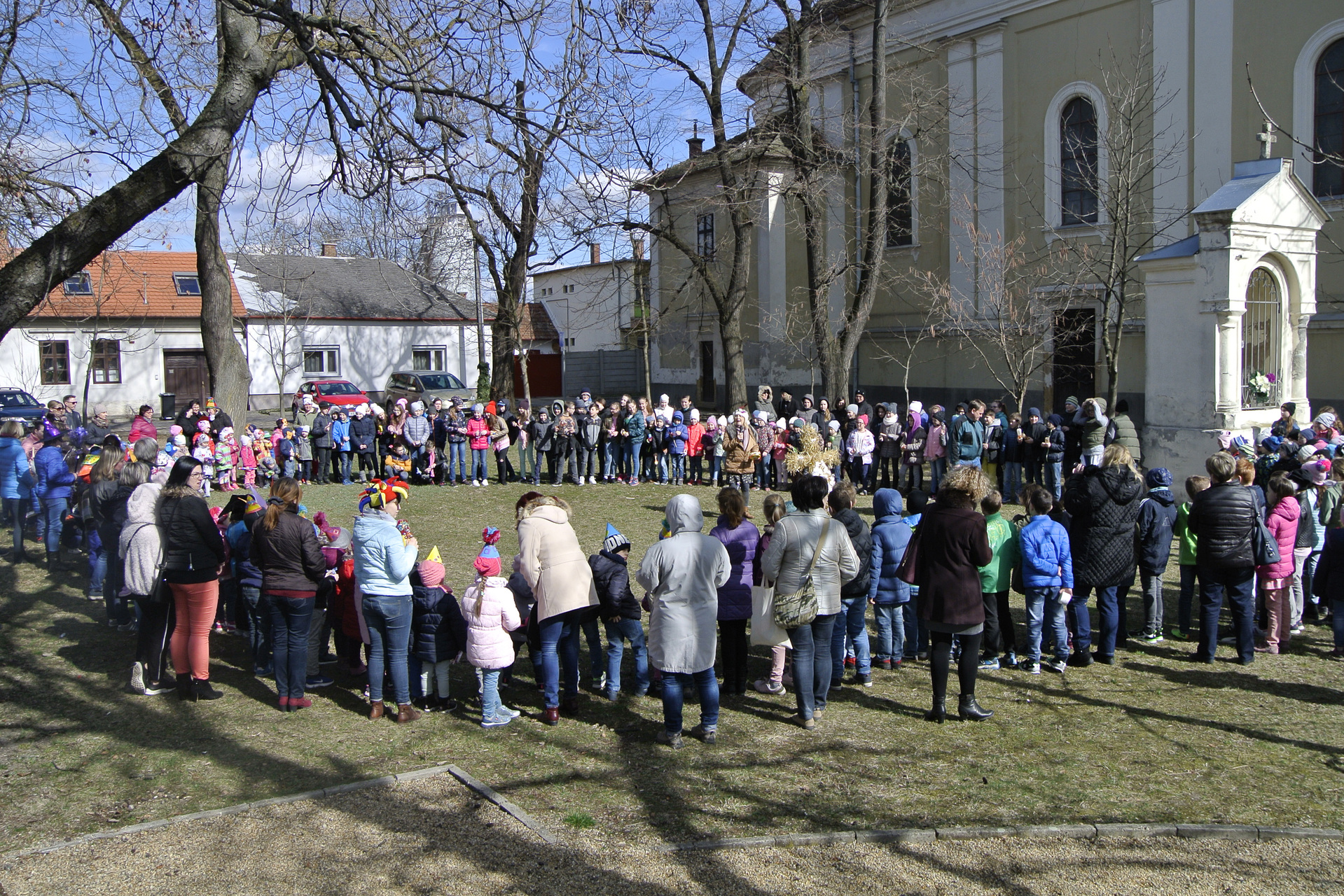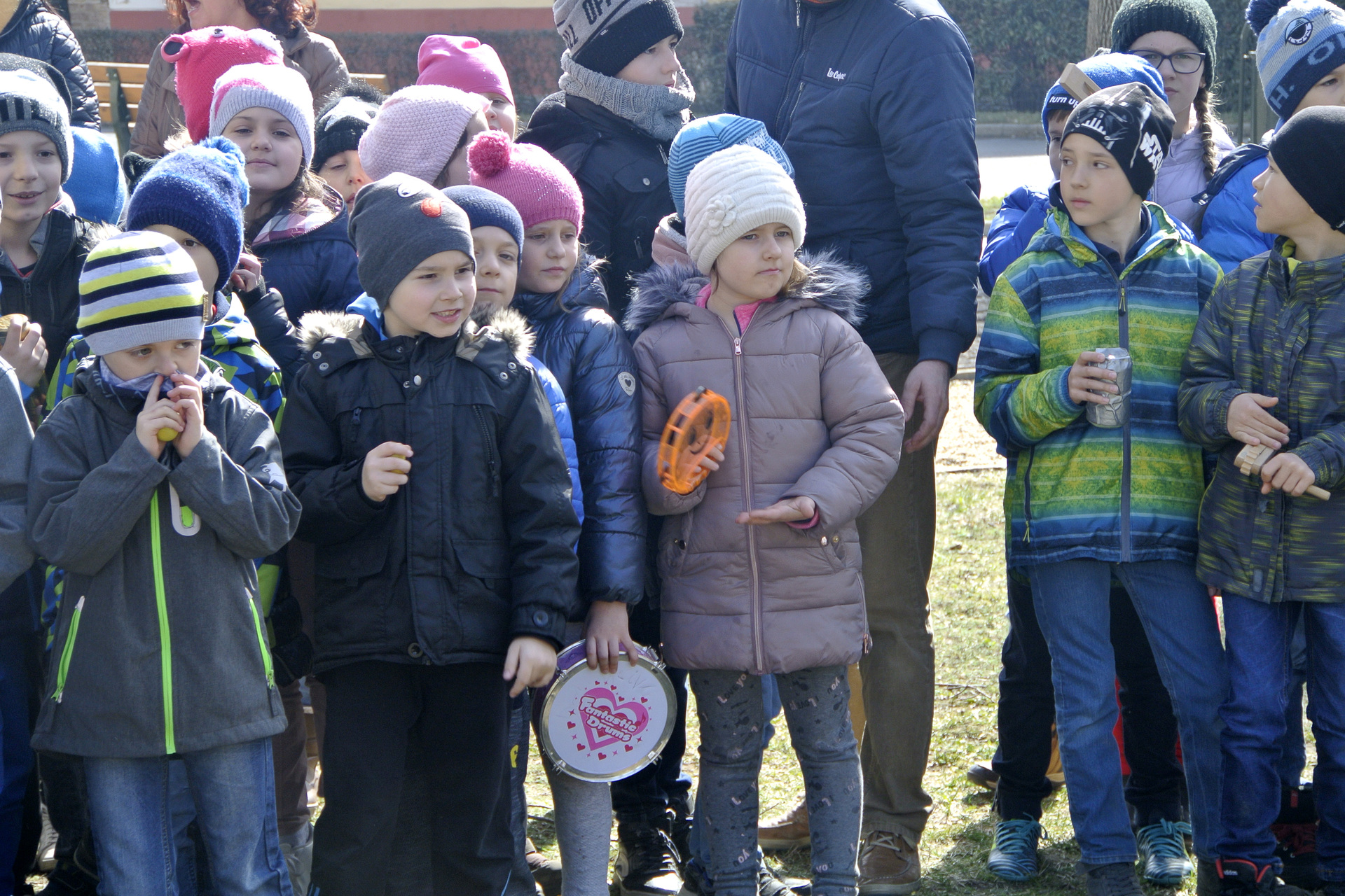 Zajongva, mondókázva és énekelve űzték el a telet a gyulai óvódások és általános iskolások március 5-én a téltemetés elnevezésű rendezvényen.
