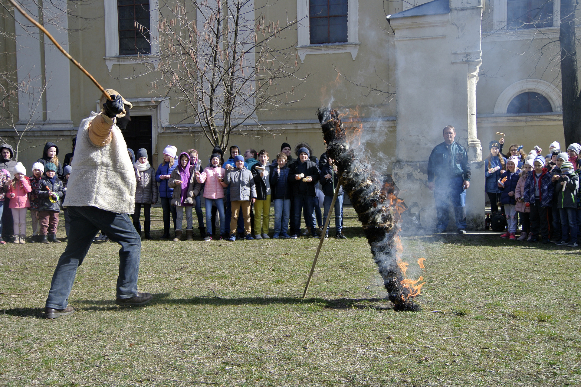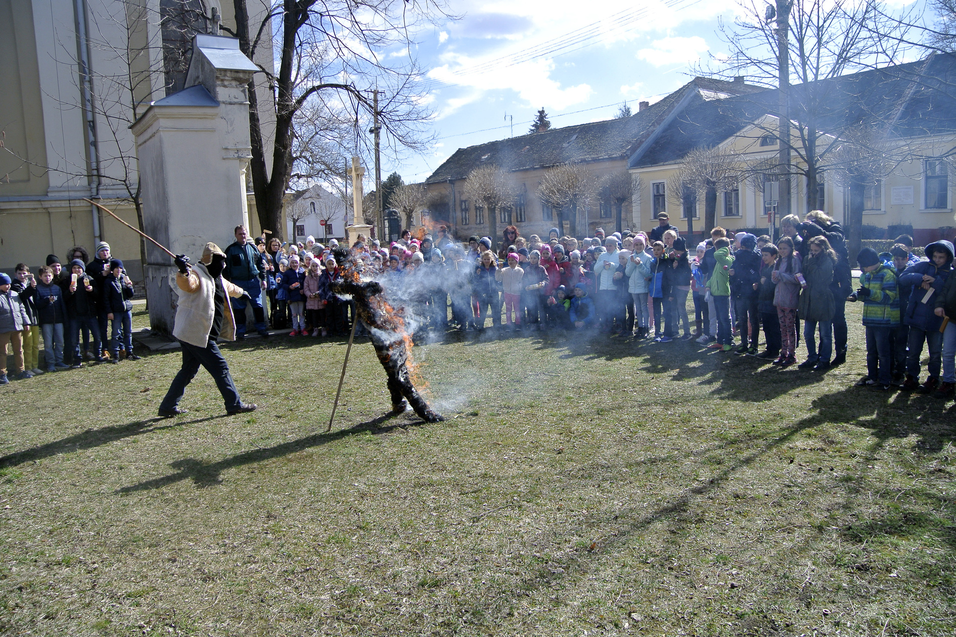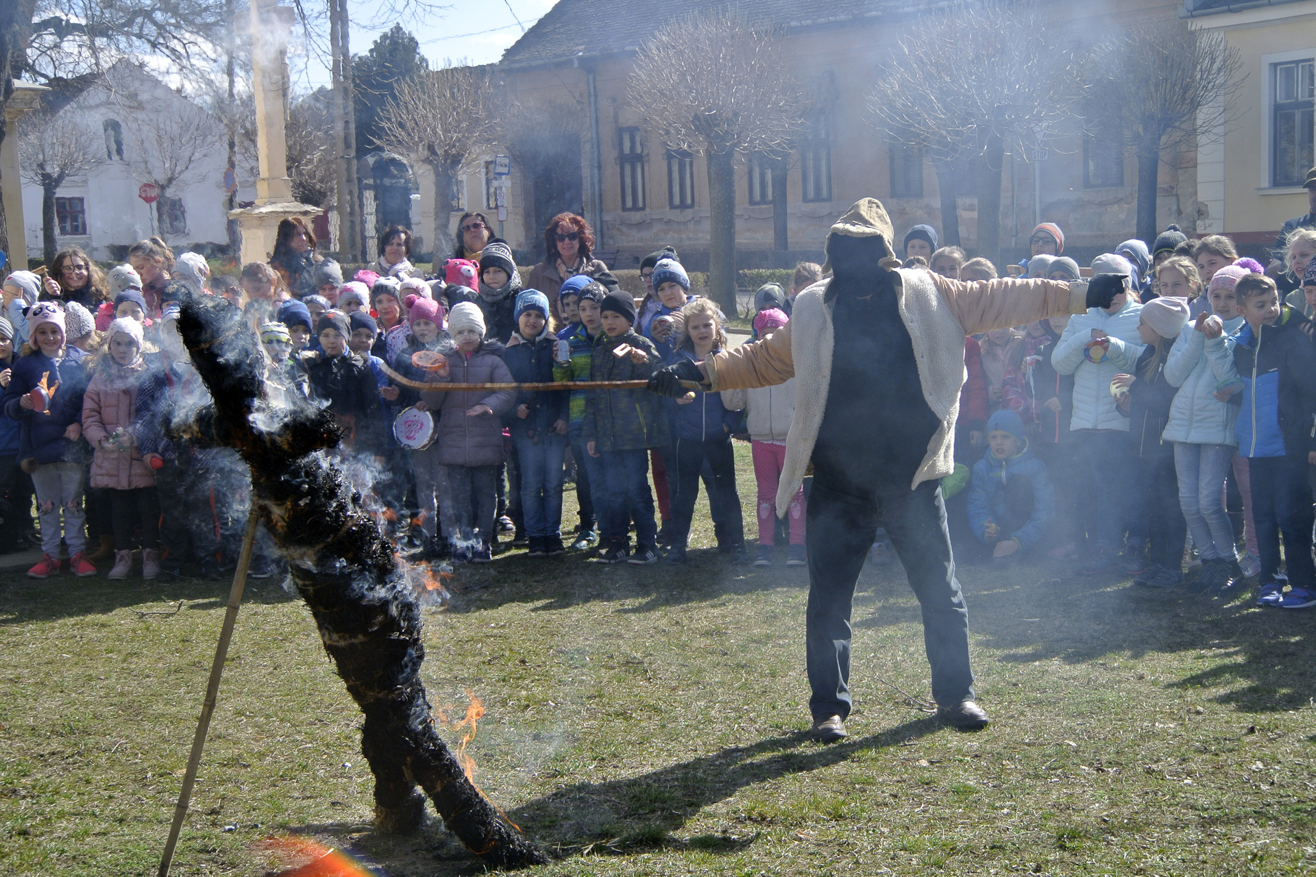 Az óvónő hozzátette, hogy minden gyermeknek hoznia kell magával egy kereplőt vagy valamilyen zajkeltő eszközt, ezekkel vonulnak az Apor térig, ahol magyar és német népi mondókákkal, énekekkel kezdődik a téltemetés. A hangoskodás közben a szalmabábot meggyújtják, ezzel elégetve a bajt és a betegésget.