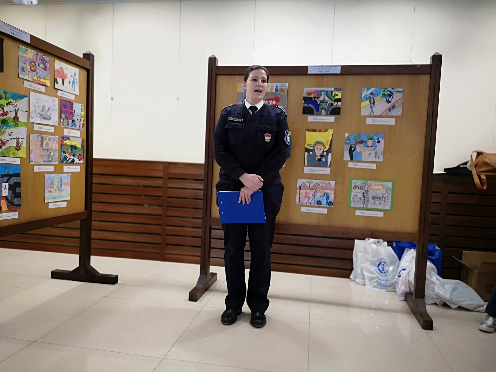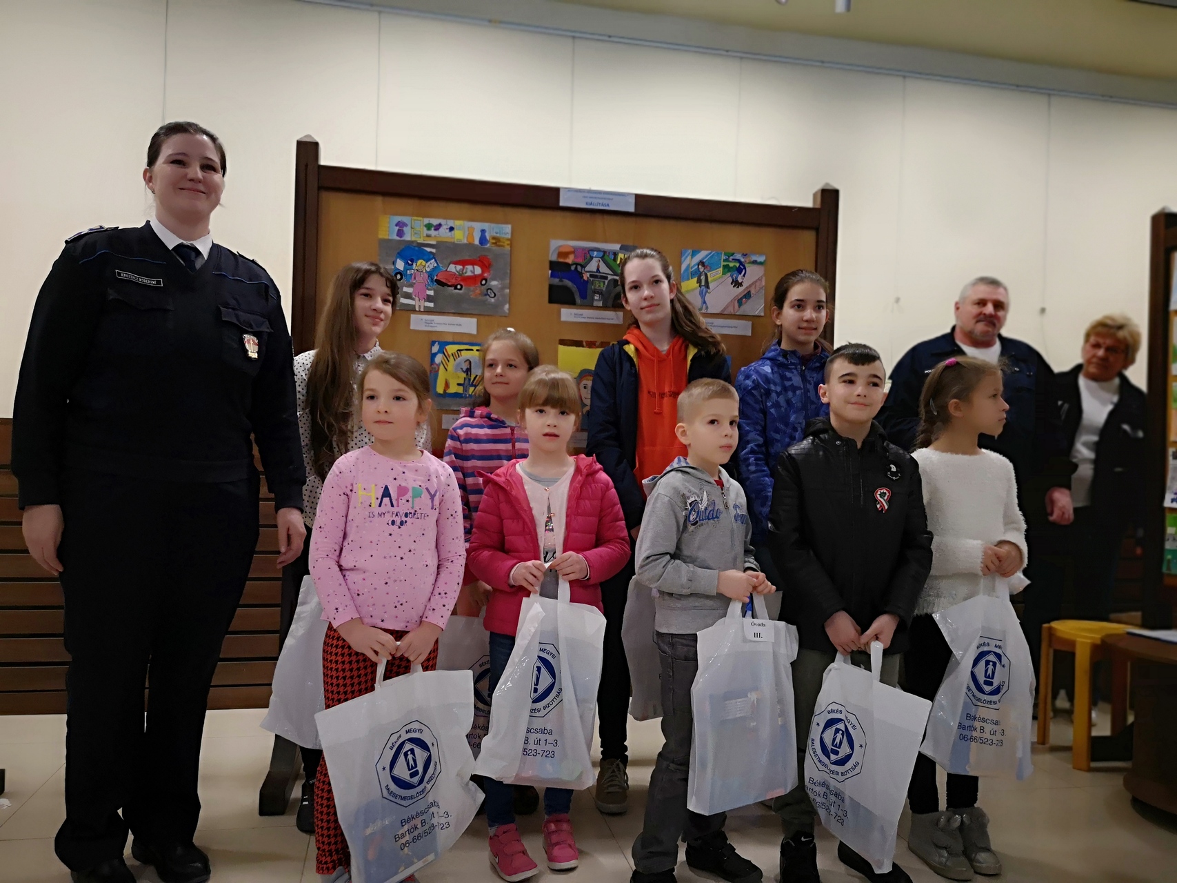 Kruzsicz Róbertné rendőrzászlós lapunknak elmondta: az aulában az összes pályaművet kiállították, az alkotásokat a következő hetekben bárki megtekintheti a művelődési házban. Hozzátette, hogy idén 266 alkotás érkezett, 10 óvodából és kilenc általános iskolából. Az óvodások, az alsósok és felsősök kategóriájában is három dobogóst, valamint tizenkét különdíjast választott ki a helyi képzőművészekből és szakemberekből álló zsűri.