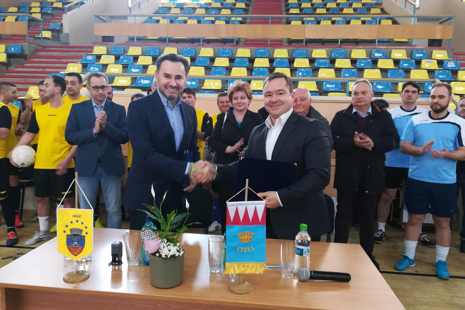 A mérkőzés előtt egy protokolláris eseményt is tartottak, amelyen Gheorghe Falca, Arad város polgármestere és Kónya István, Gyula város alpolgármestere írt alá egy közös megállapodást.