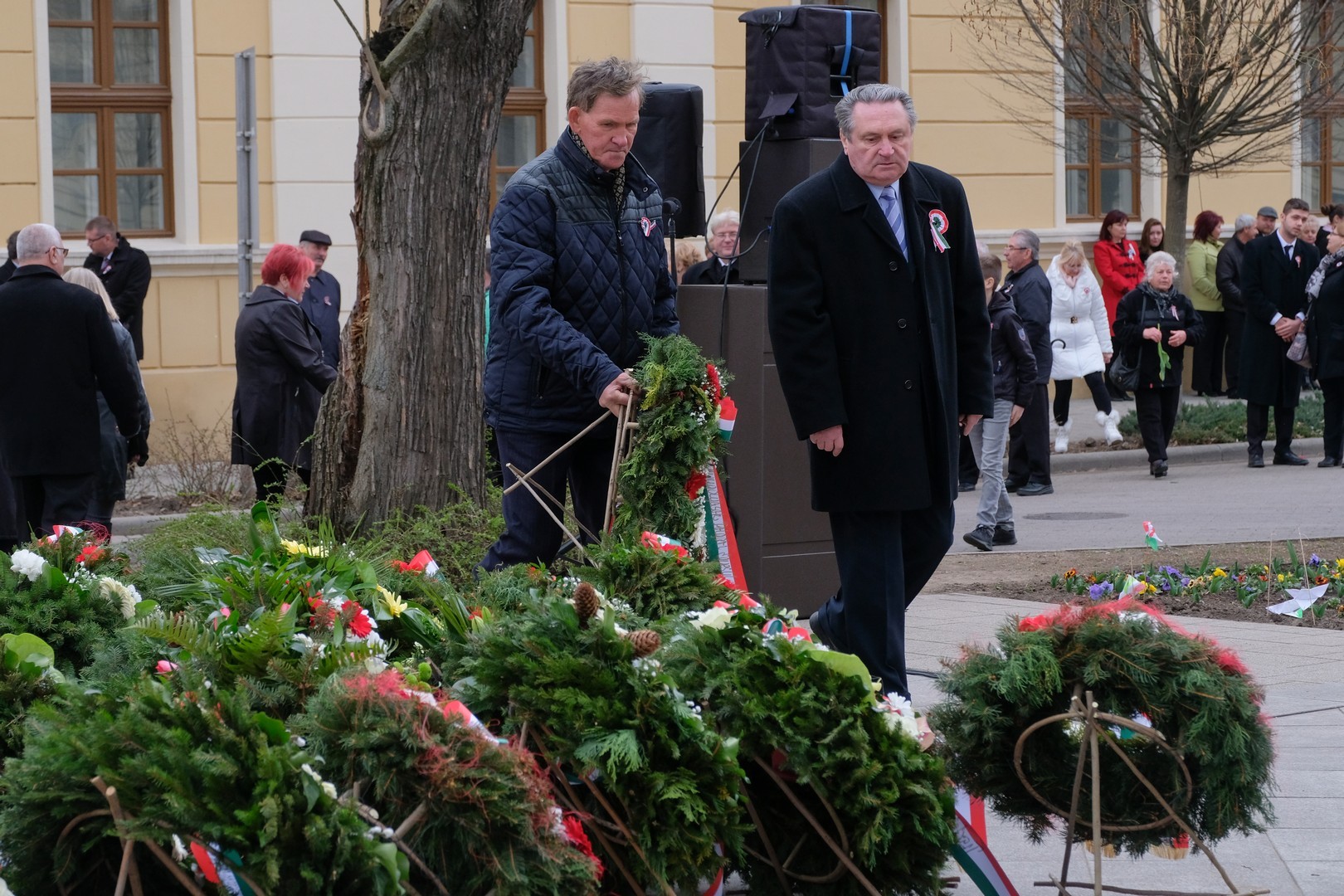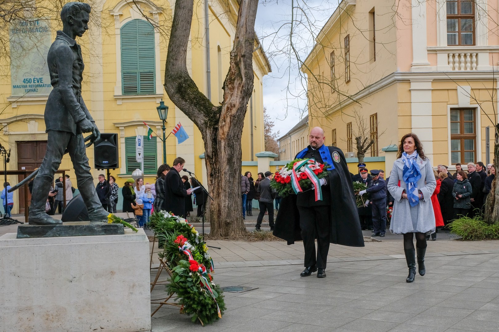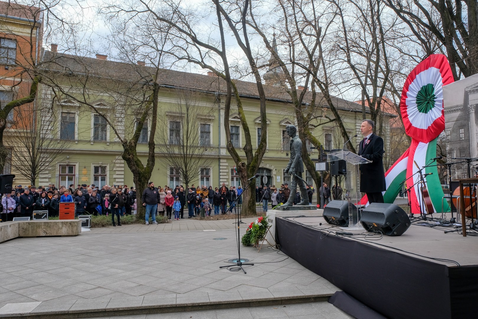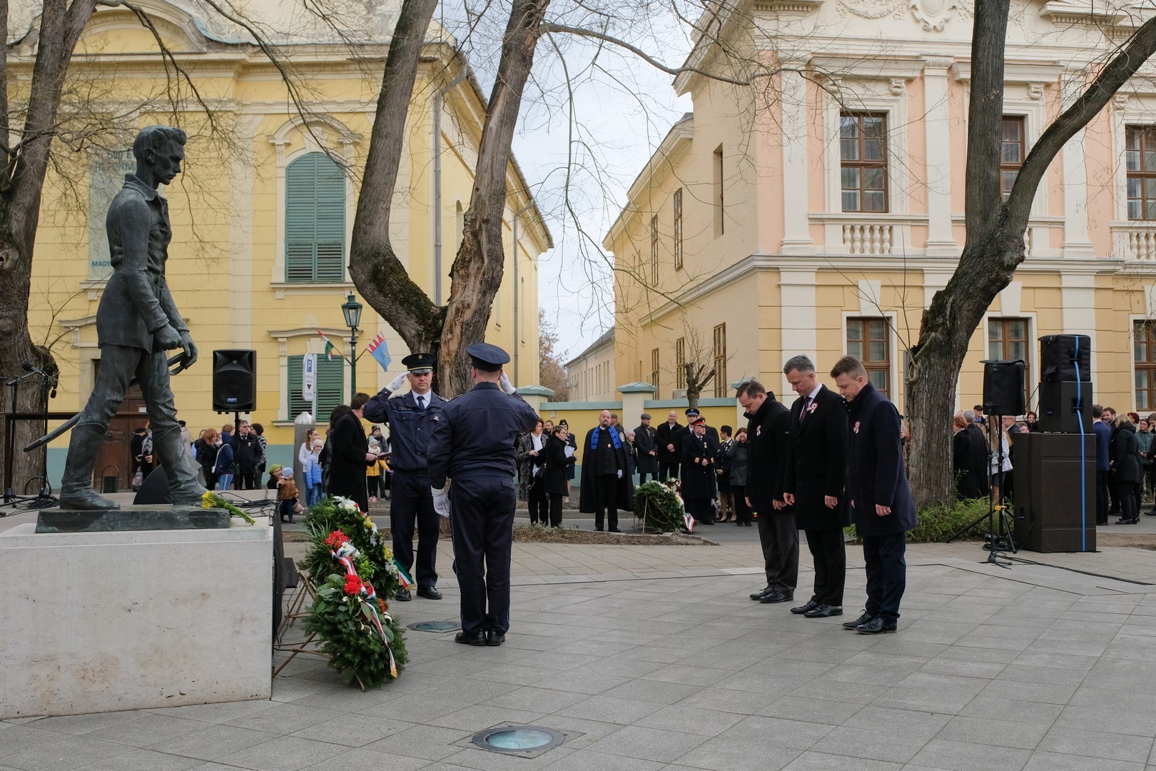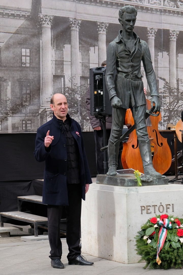 A polgármester kiemelte: a mindenkori hatalom csak akkor képes magáénak vallani a márciusi ifjak üzenetét, akkor képes valóban és szívből ünnepelni, ha lételeme a szabadság, a polgári jogegyenlőség és a testvériség, valamint képes küzdeni a nemzeti szuverenitásért. – Szerencsések vagyunk, hogy ma ilyen világban élhetünk. A rendszerváltozás óta törvényes nemzeti ünnepünk március 15., amikor a hivatalos Magyarország és a magyar néplélek egyaránt önfeledten ünnepel – fogalmazott.