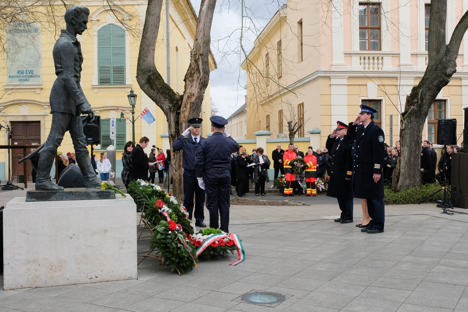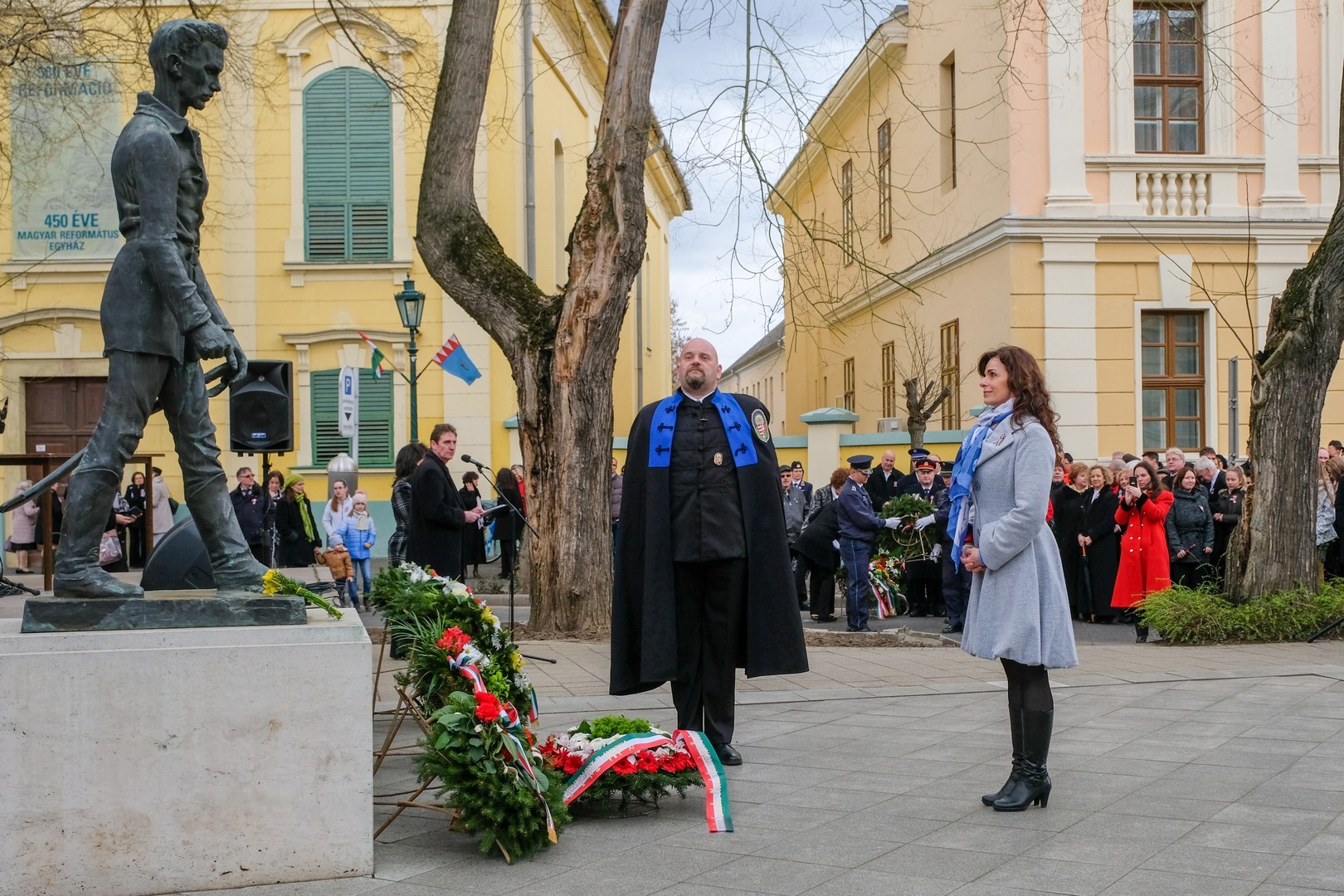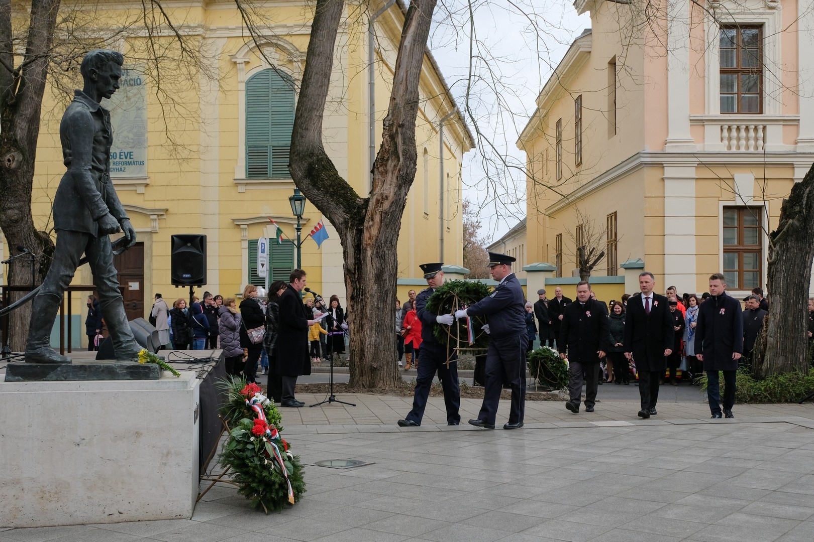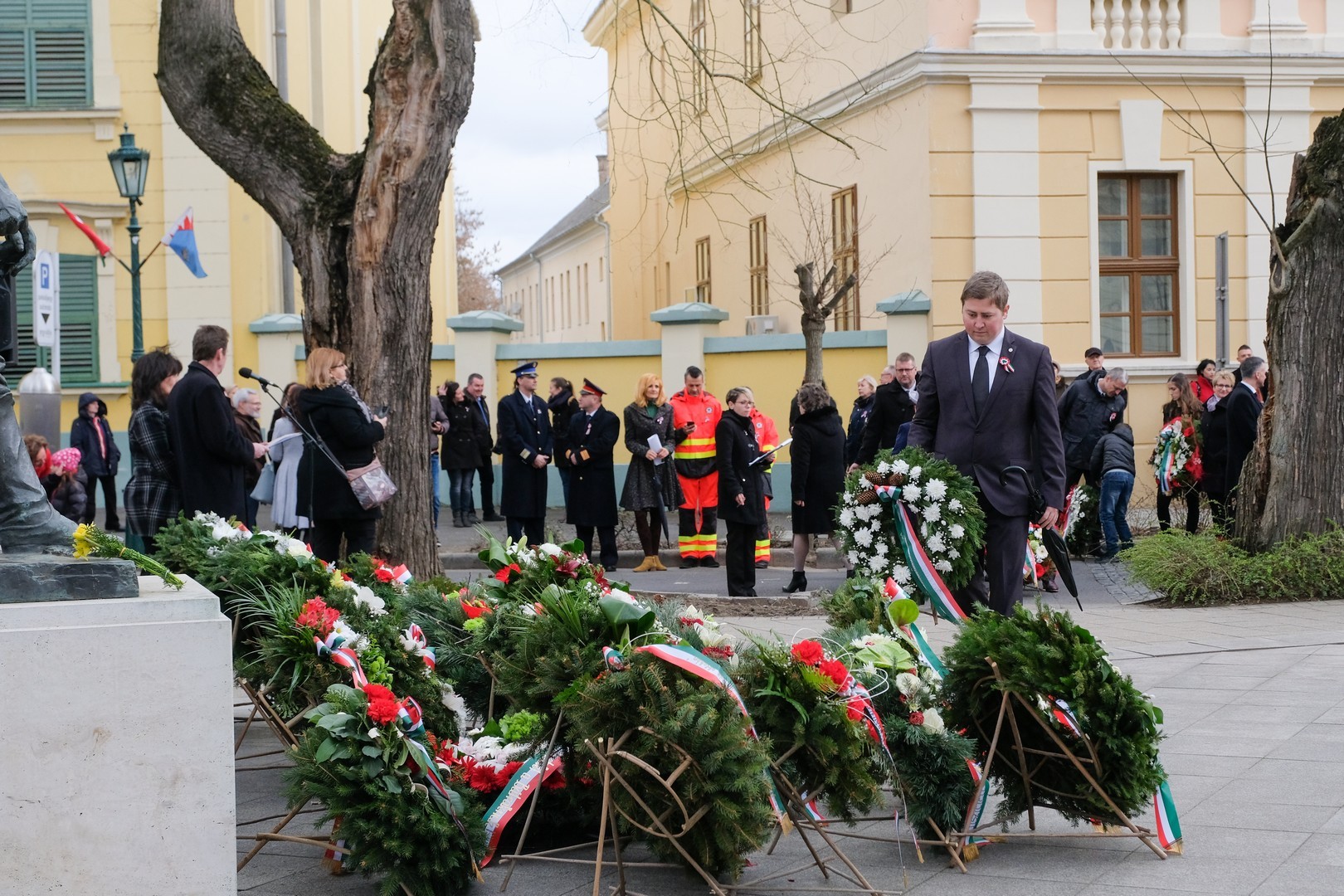 A polgármester kiemelte: a mindenkori hatalom csak akkor képes magáénak vallani a márciusi ifjak üzenetét, akkor képes valóban és szívből ünnepelni, ha lételeme a szabadság, a polgári jogegyenlőség és a testvériség, valamint képes küzdeni a nemzeti szuverenitásért. – Szerencsések vagyunk, hogy ma ilyen világban élhetünk. A rendszerváltozás óta törvényes nemzeti ünnepünk március 15., amikor a hivatalos Magyarország és a magyar néplélek egyaránt önfeledten ünnepel – fogalmazott.