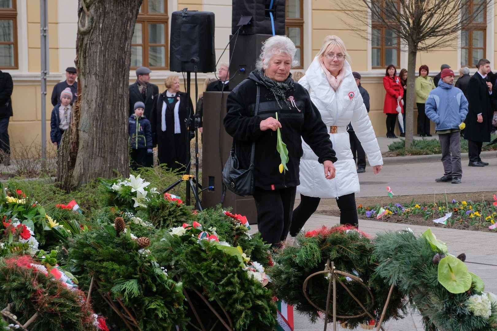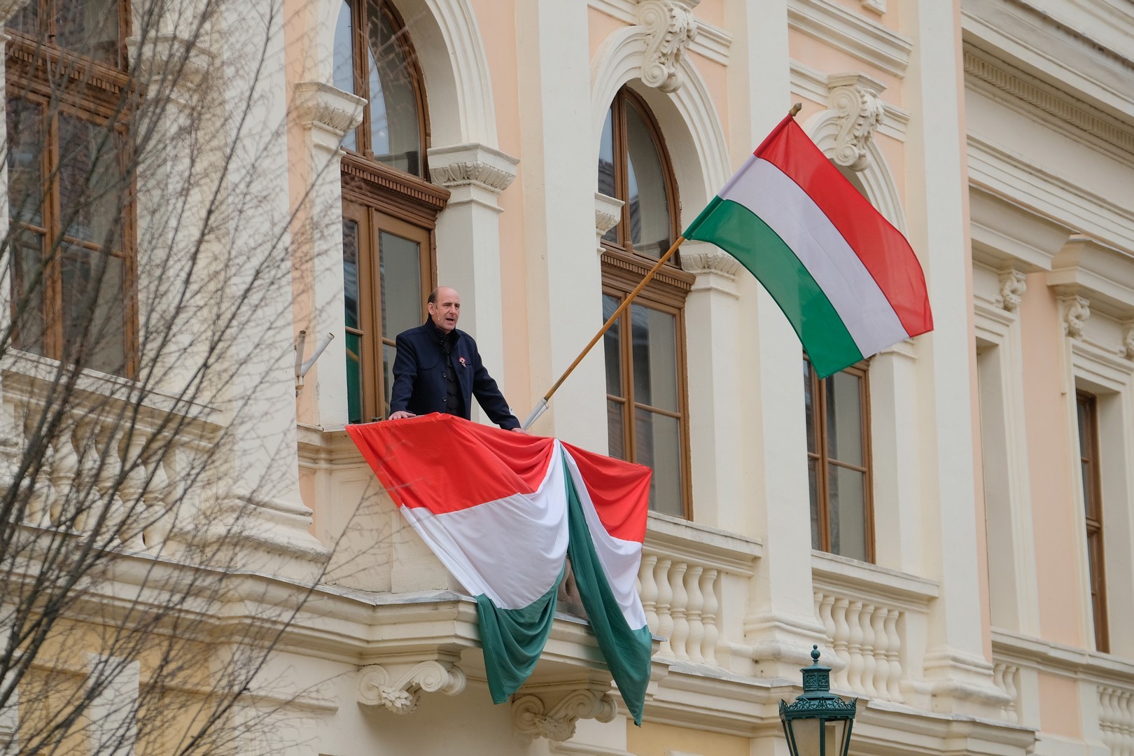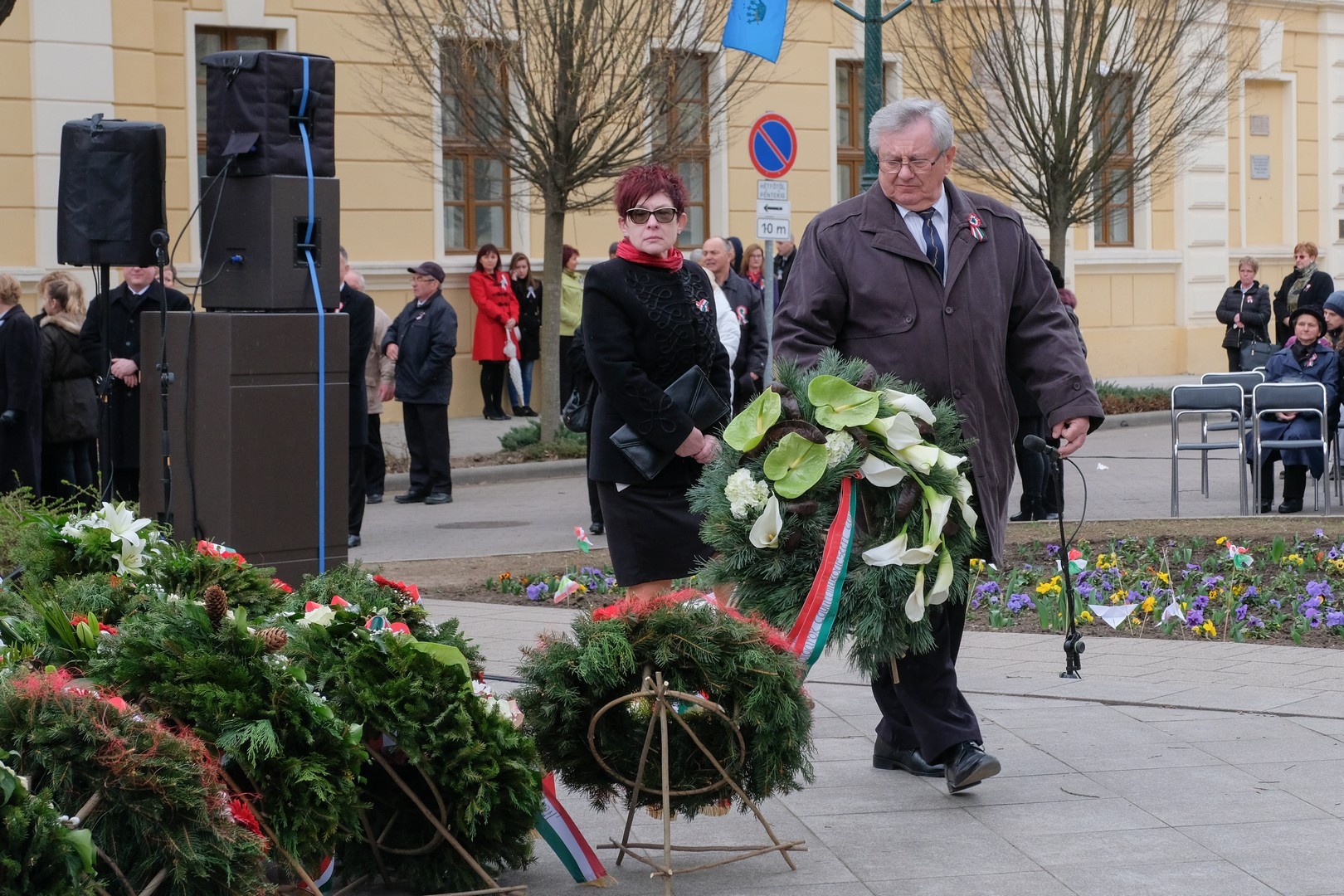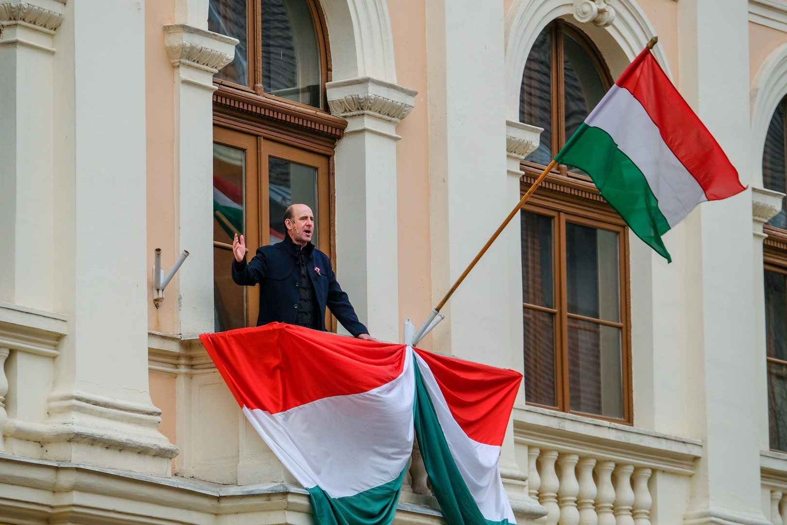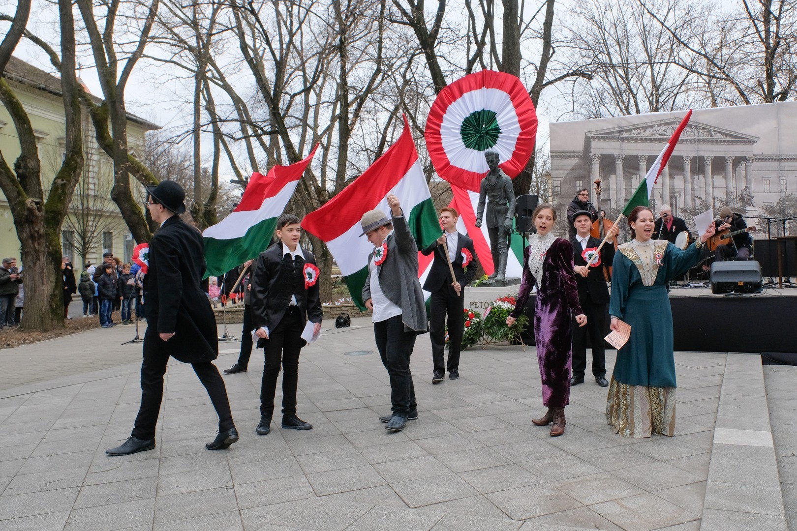 A polgármester kiemelte: a mindenkori hatalom csak akkor képes magáénak vallani a márciusi ifjak üzenetét, akkor képes valóban és szívből ünnepelni, ha lételeme a szabadság, a polgári jogegyenlőség és a testvériség, valamint képes küzdeni a nemzeti szuverenitásért. – Szerencsések vagyunk, hogy ma ilyen világban élhetünk. A rendszerváltozás óta törvényes nemzeti ünnepünk március 15., amikor a hivatalos Magyarország és a magyar néplélek egyaránt önfeledten ünnepel – fogalmazott.