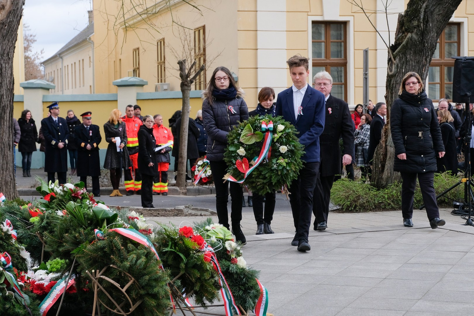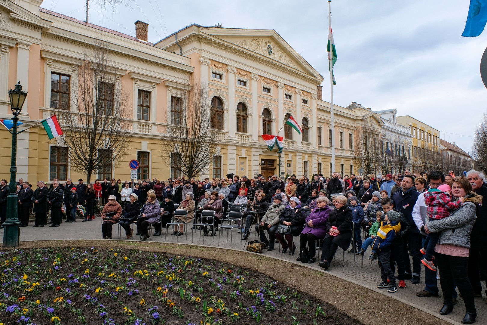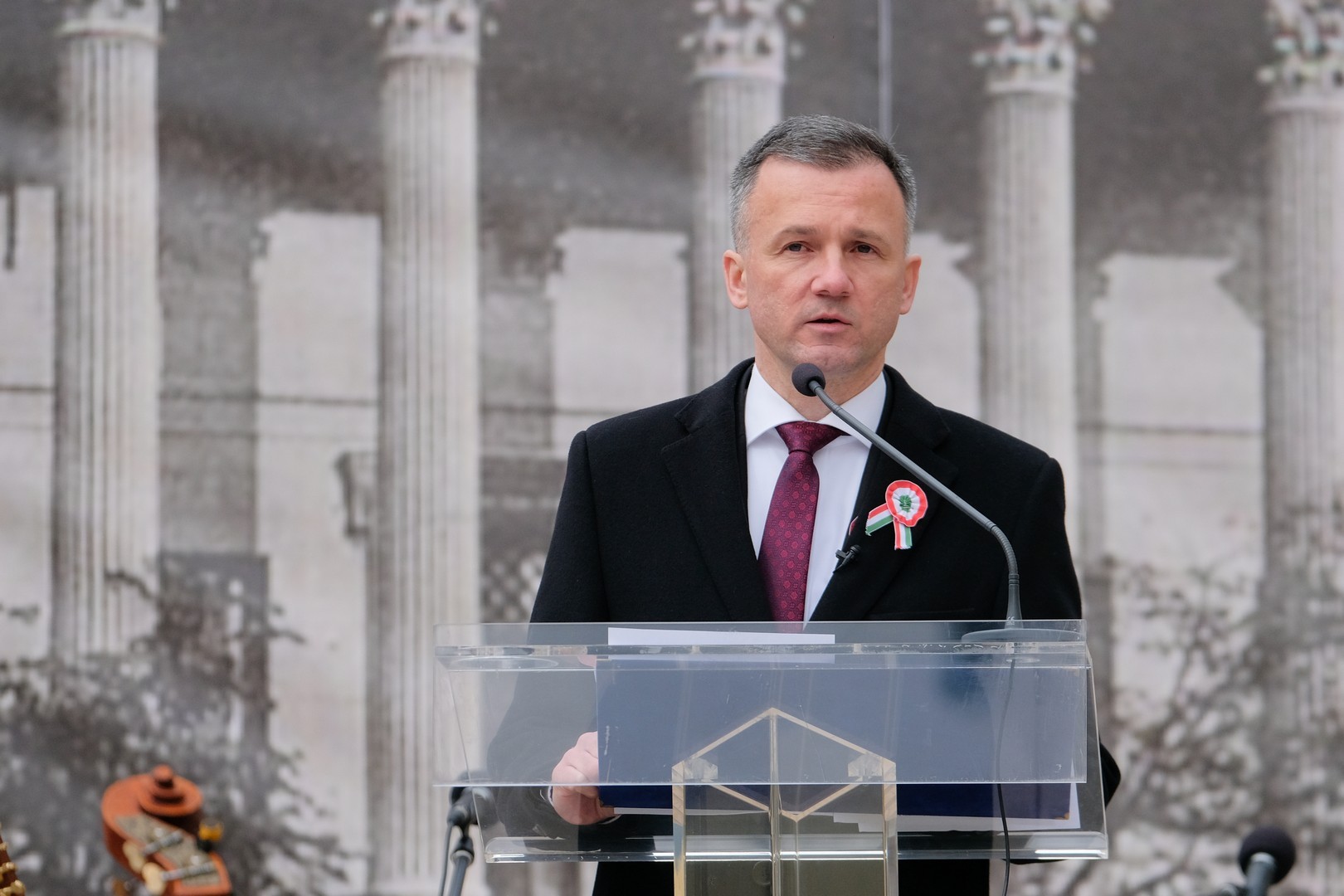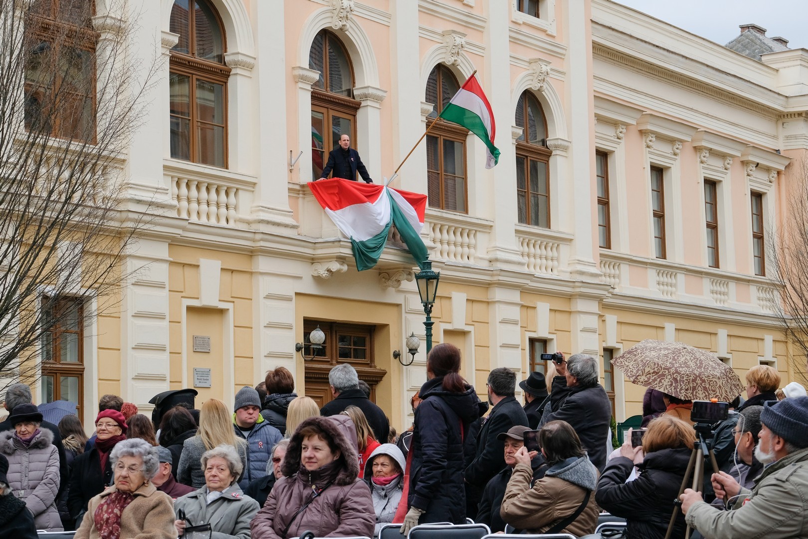 A polgármester kiemelte: a mindenkori hatalom csak akkor képes magáénak vallani a márciusi ifjak üzenetét, akkor képes valóban és szívből ünnepelni, ha lételeme a szabadság, a polgári jogegyenlőség és a testvériség, valamint képes küzdeni a nemzeti szuverenitásért. – Szerencsések vagyunk, hogy ma ilyen világban élhetünk. A rendszerváltozás óta törvényes nemzeti ünnepünk március 15., amikor a hivatalos Magyarország és a magyar néplélek egyaránt önfeledten ünnepel – fogalmazott.