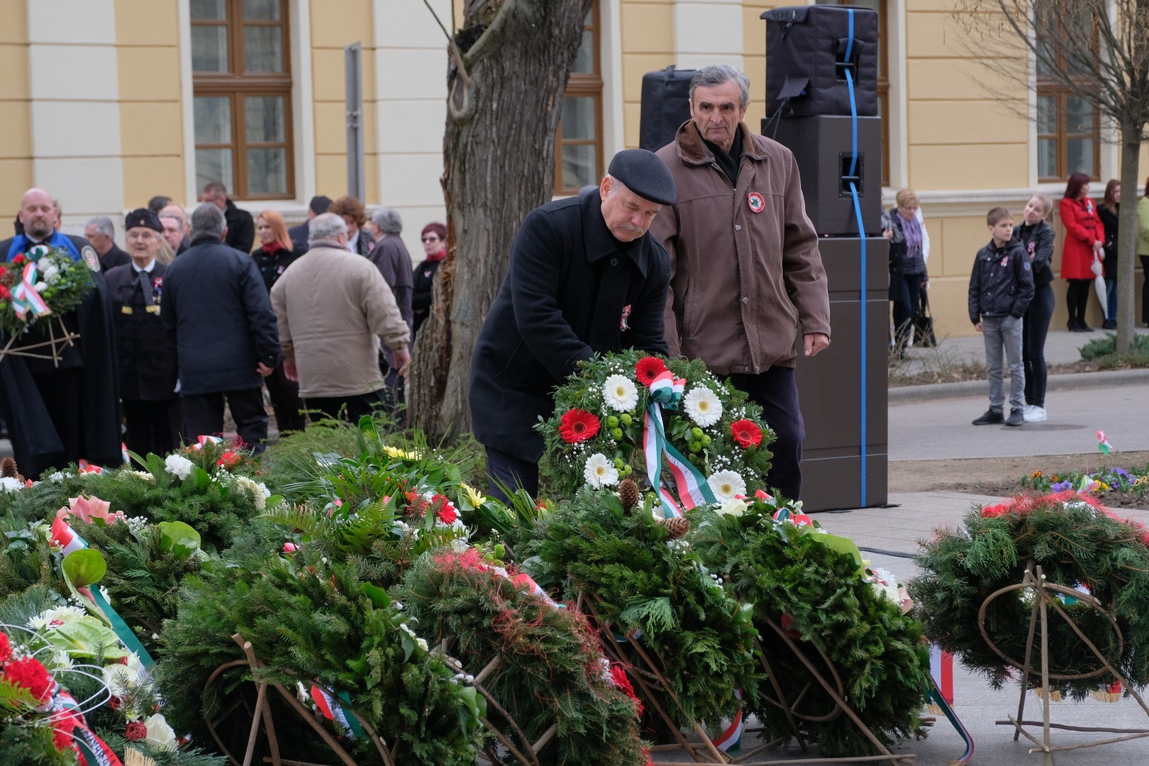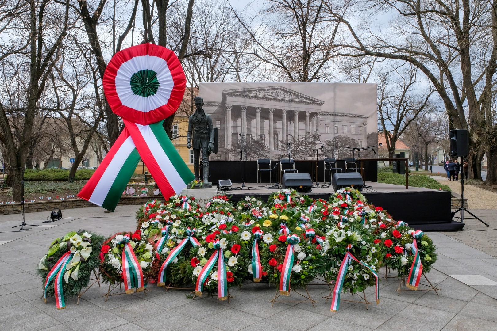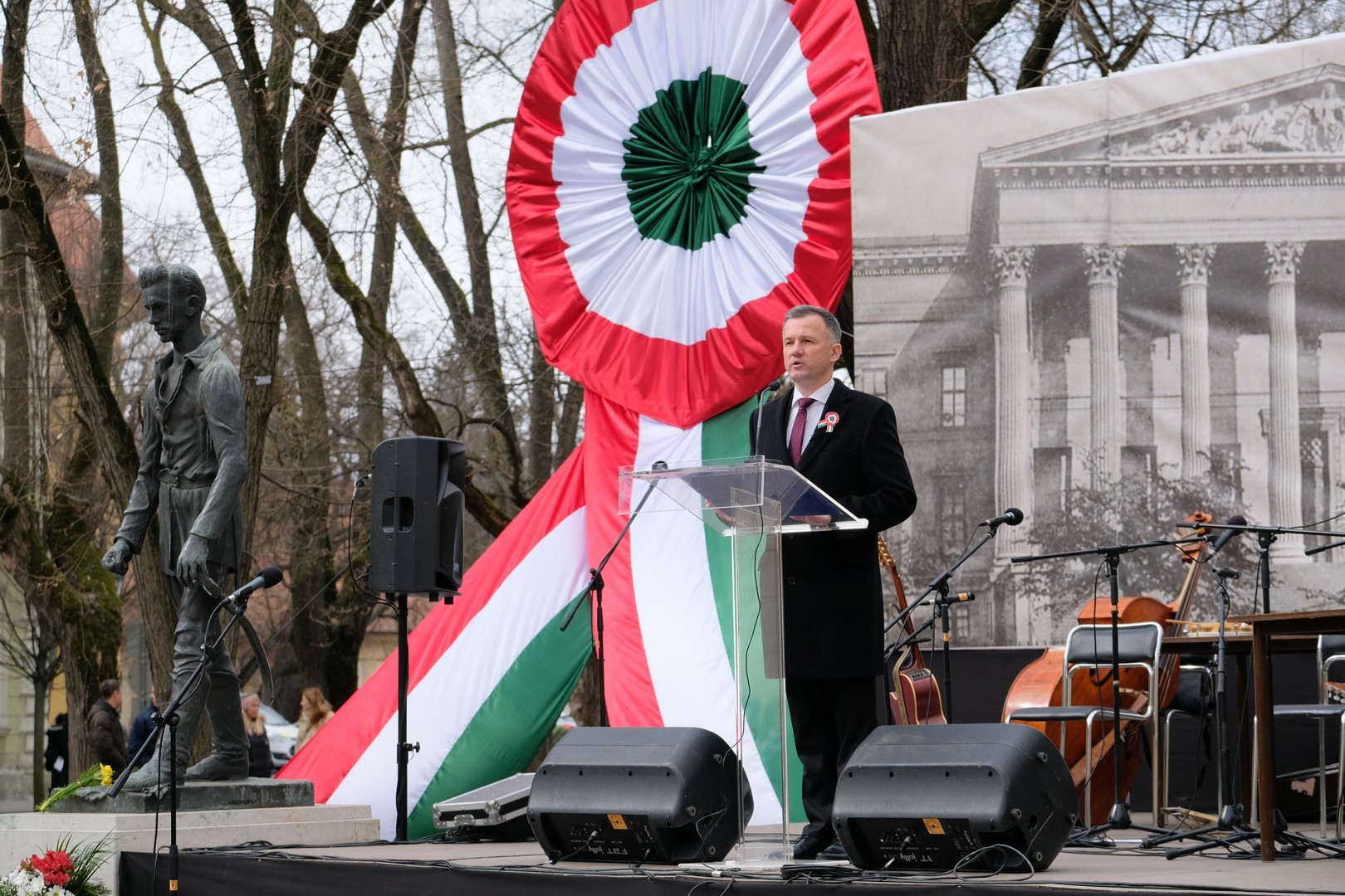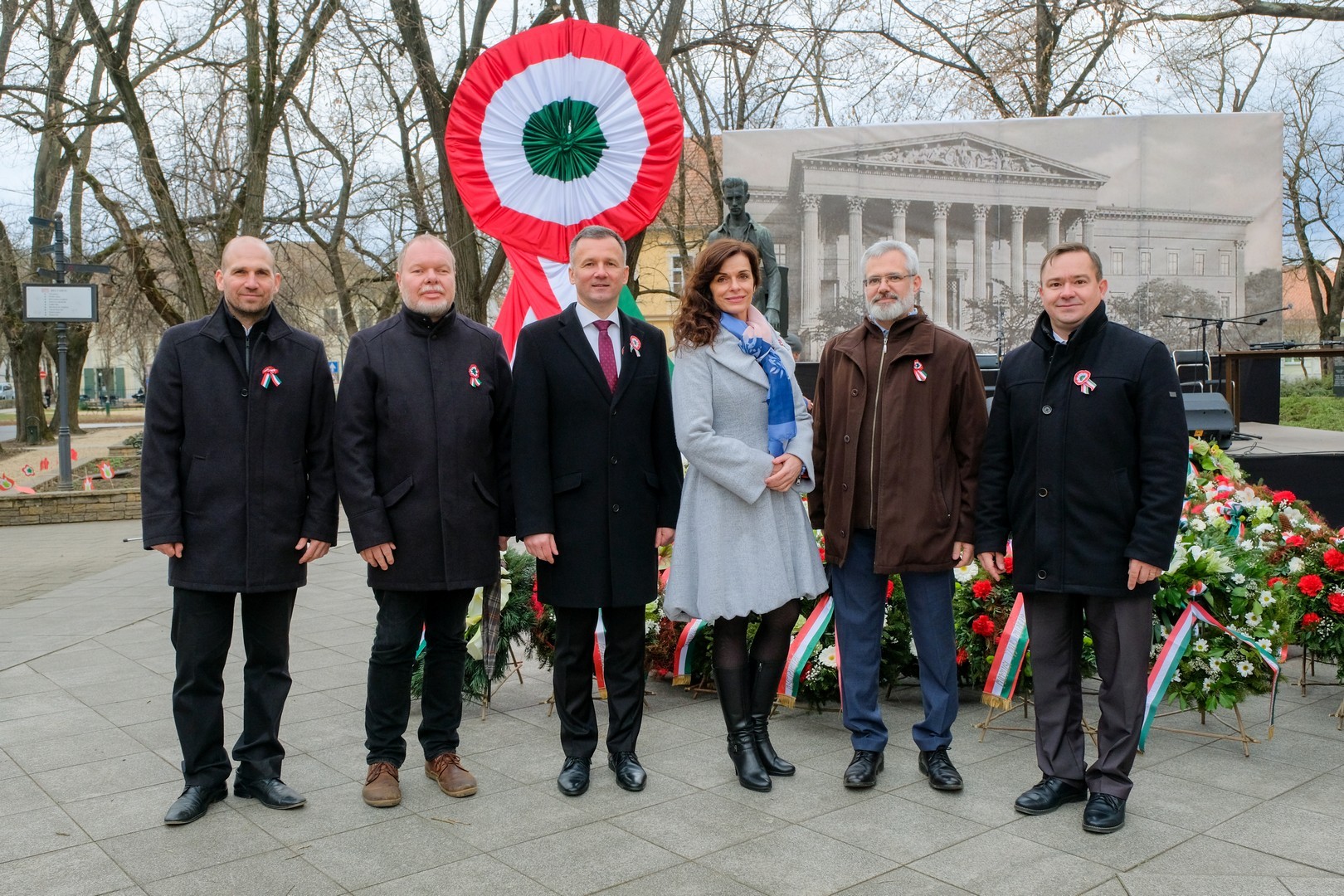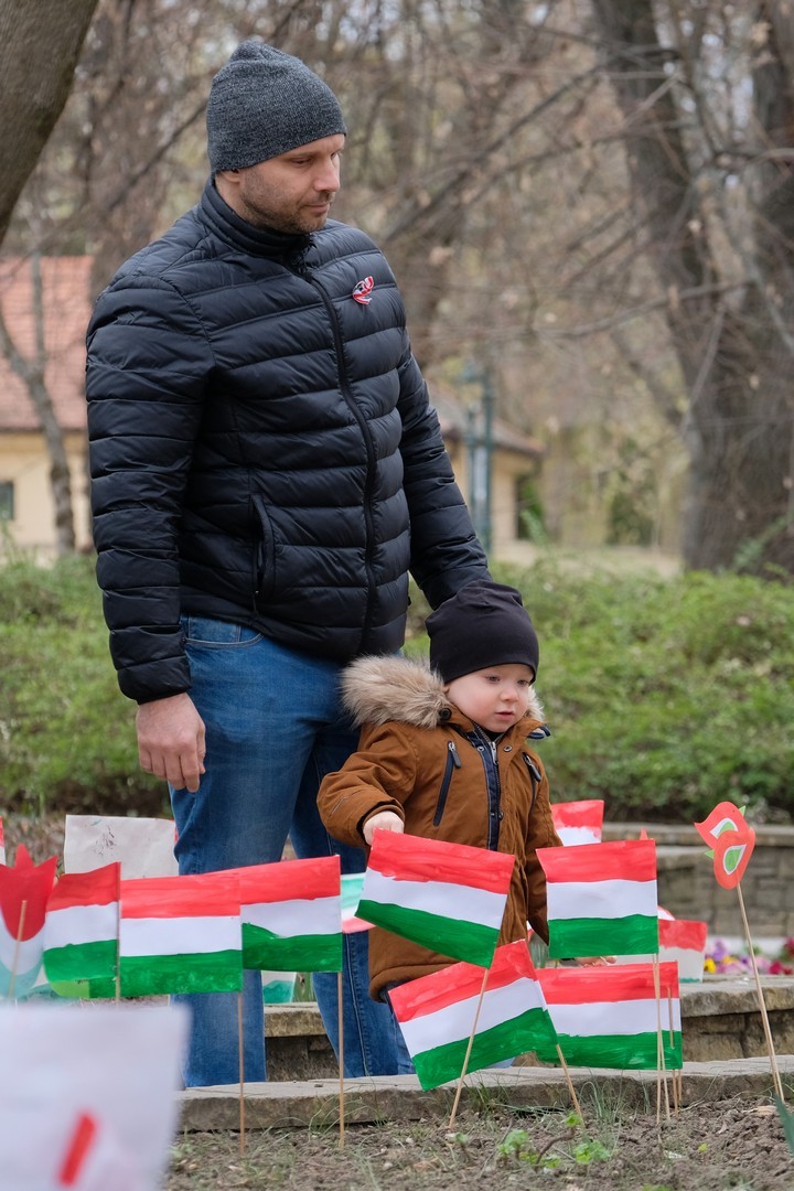 – A nagy koszorúk körül a kis zászlók azt üzenik, hogy a jelen és a jövő nemzedékei egyaránt közösen vallják az egykori márciusi ifjakkal: legyen béke, szabadság és egyetértés – zárta beszédét Görgényi Ernő.