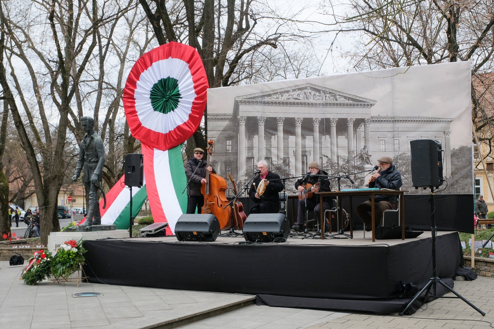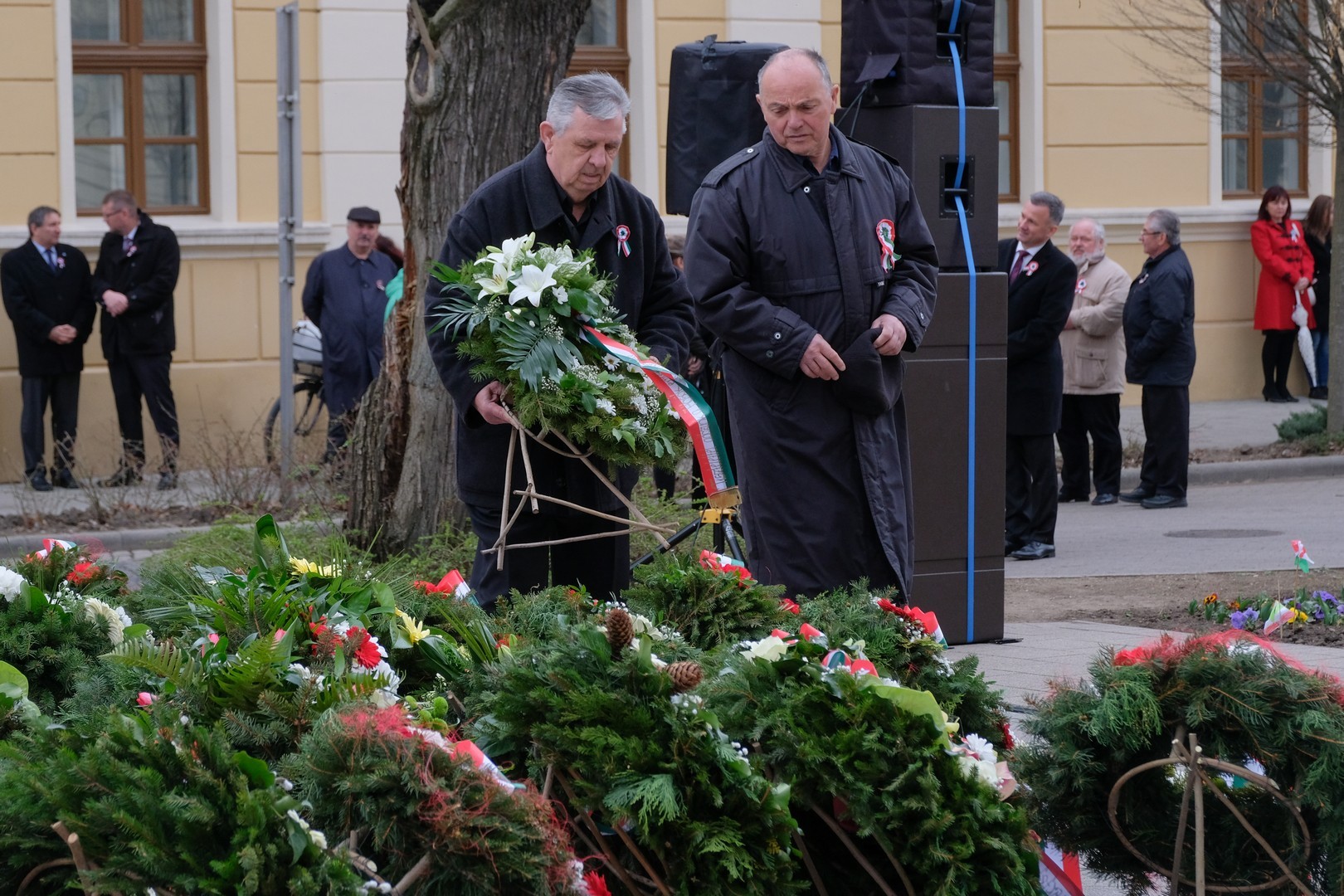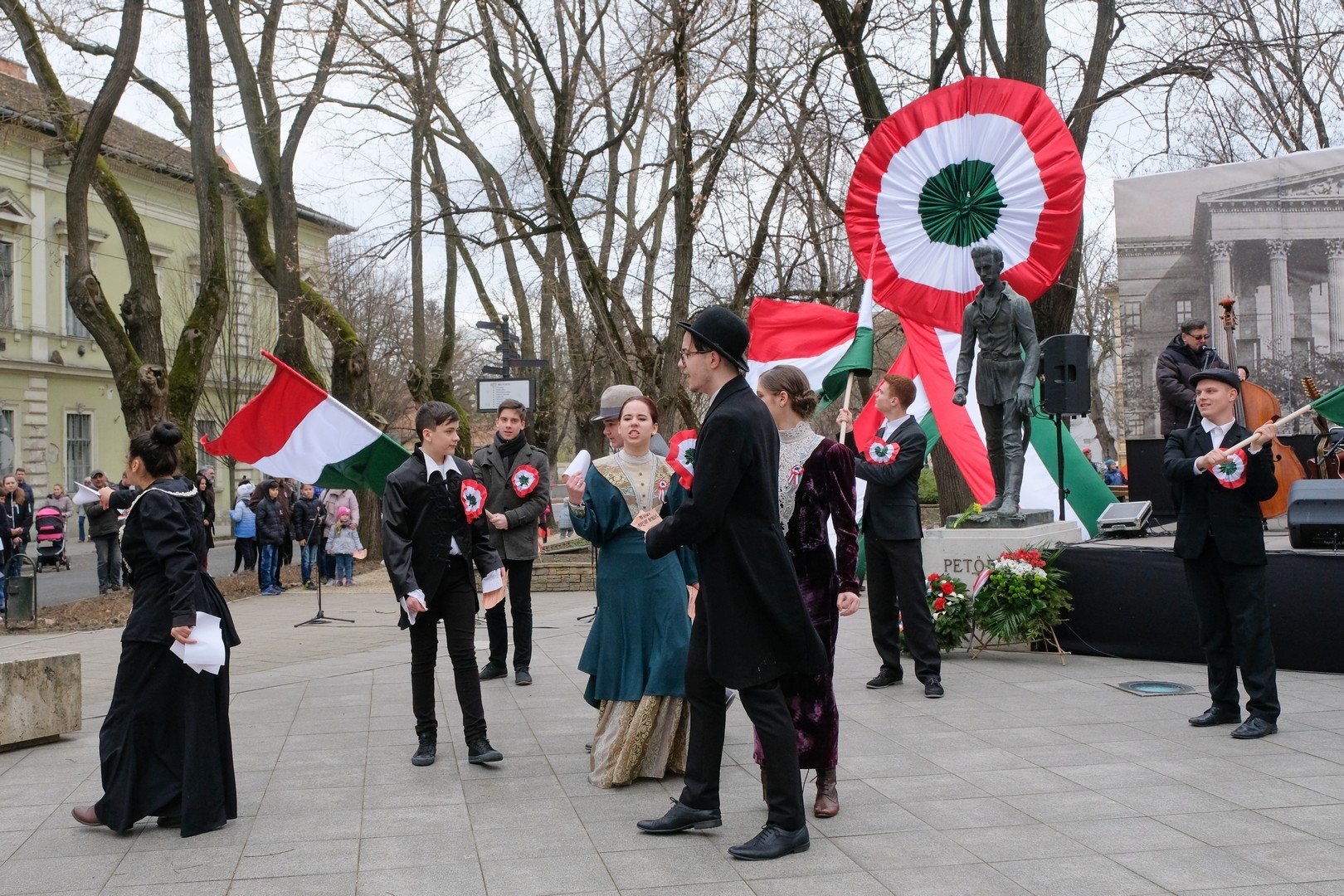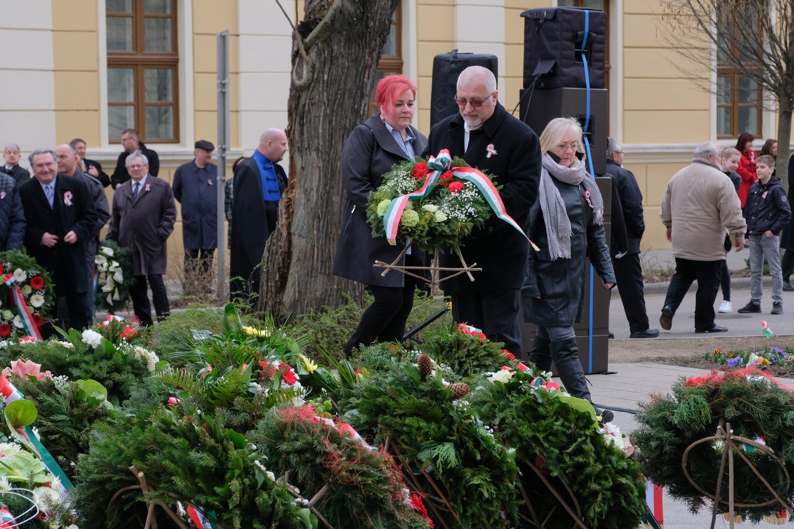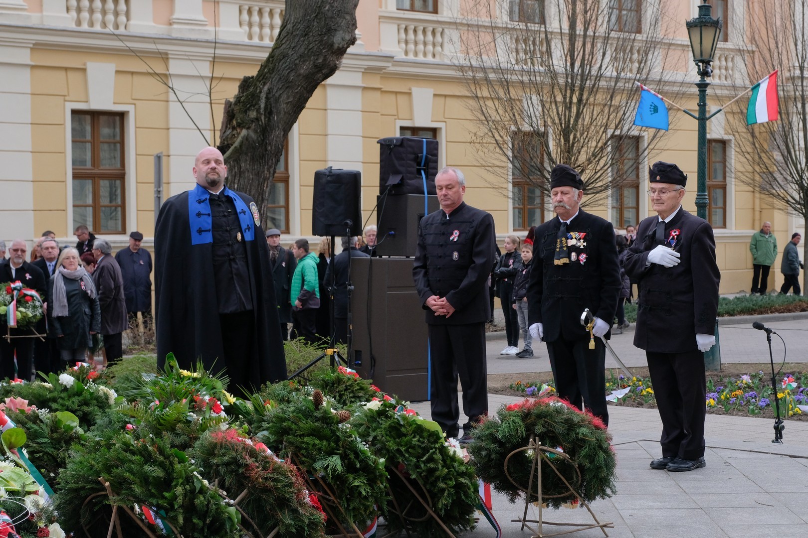 – A nagy koszorúk körül a kis zászlók azt üzenik, hogy a jelen és a jövő nemzedékei egyaránt közösen vallják az egykori márciusi ifjakkal: legyen béke, szabadság és egyetértés – zárta beszédét Görgényi Ernő.