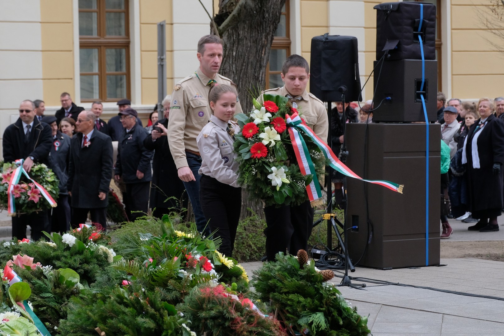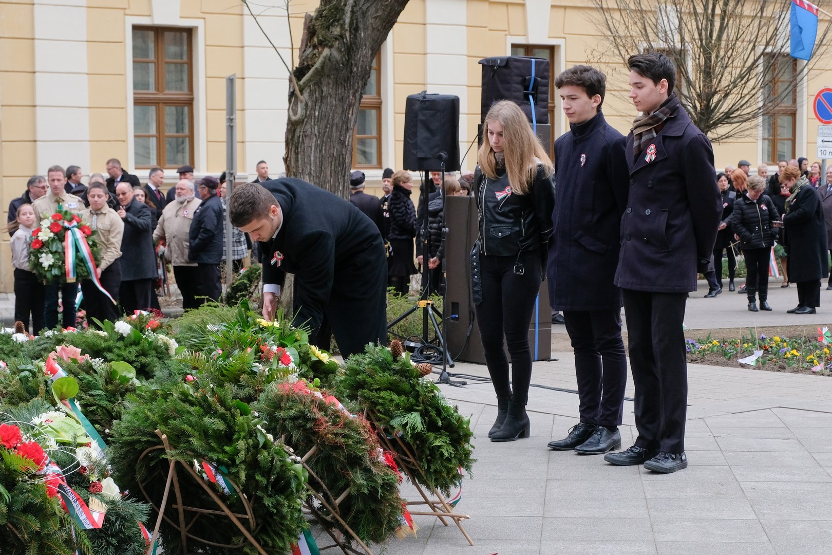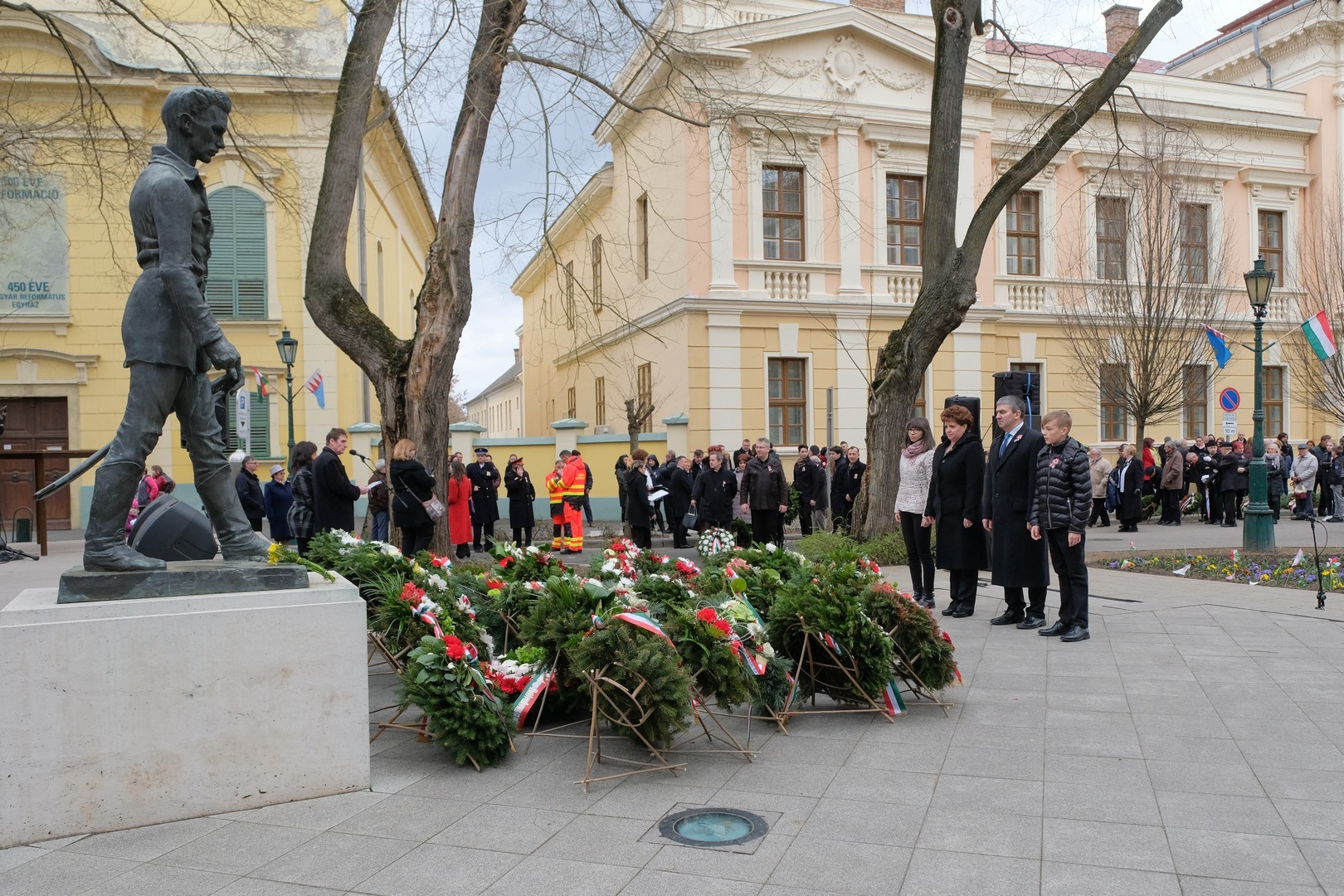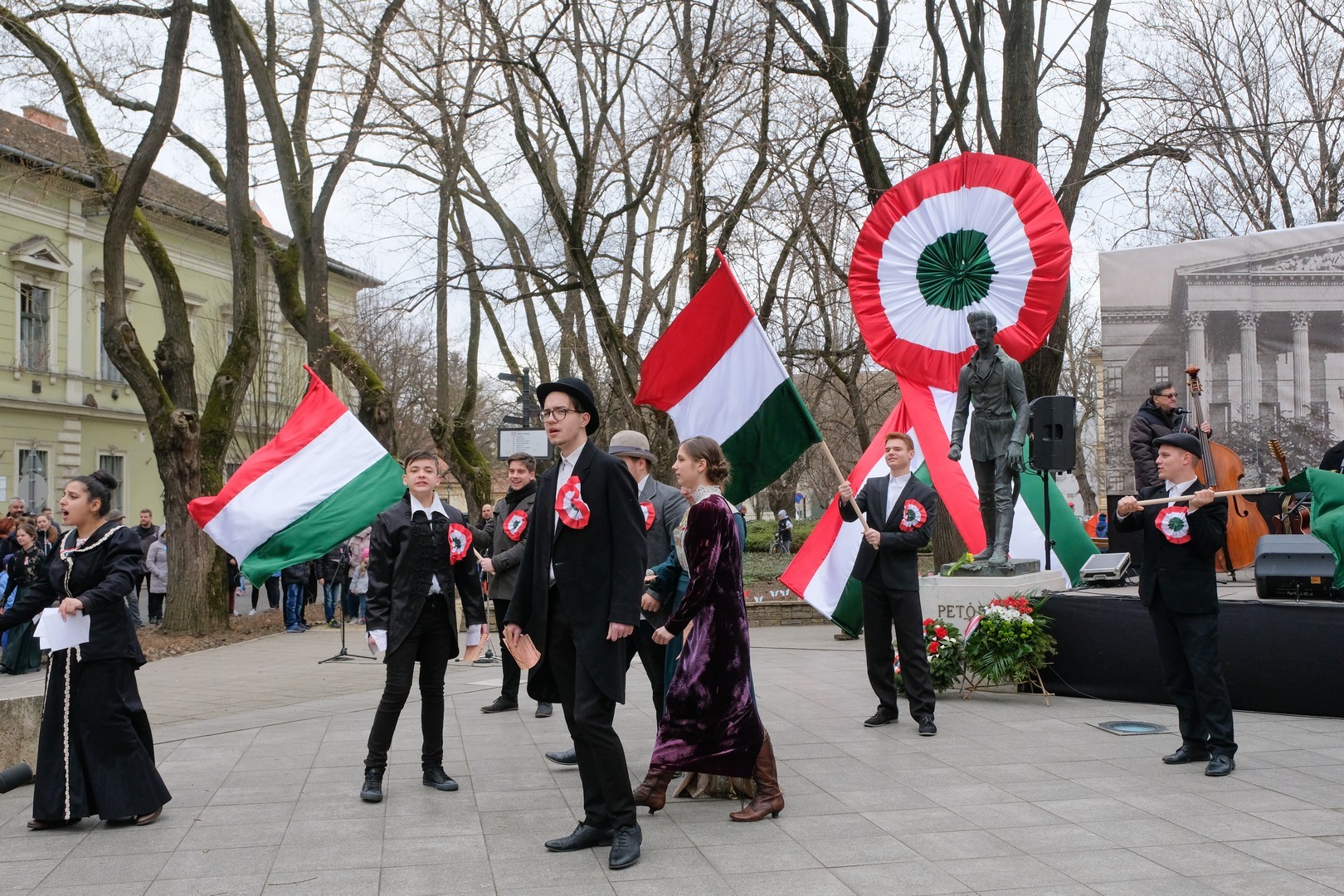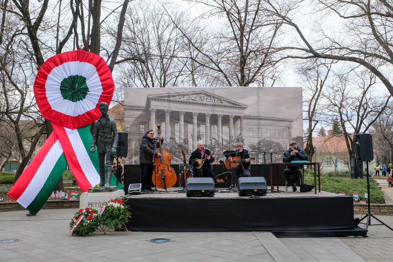 – A nagy koszorúk körül a kis zászlók azt üzenik, hogy a jelen és a jövő nemzedékei egyaránt közösen vallják az egykori márciusi ifjakkal: legyen béke, szabadság és egyetértés – zárta beszédét Görgényi Ernő.