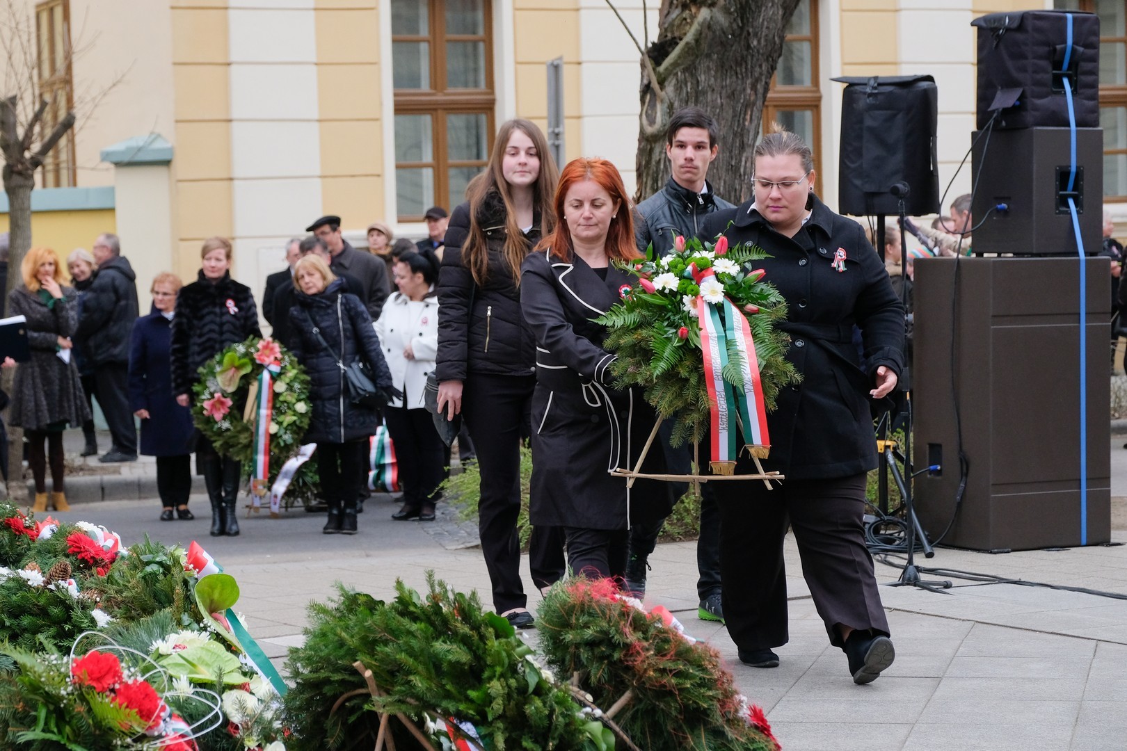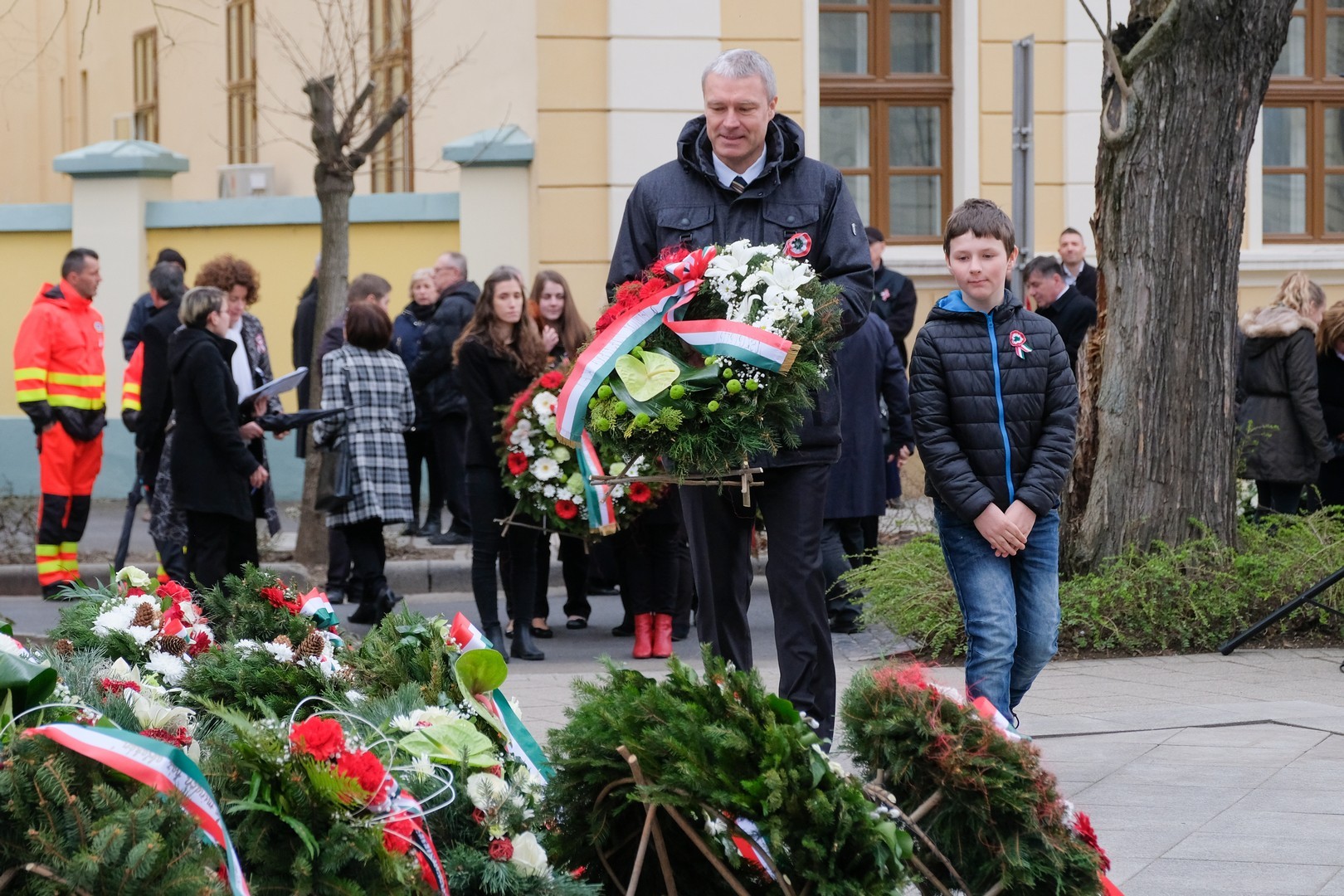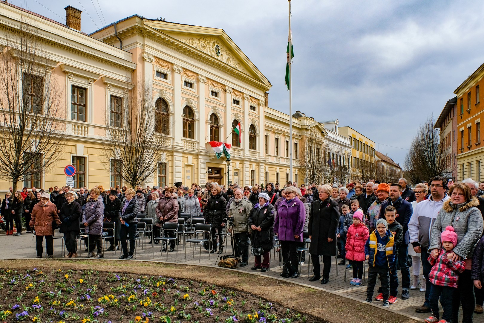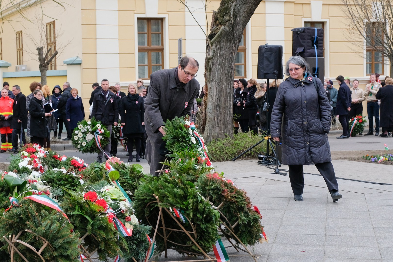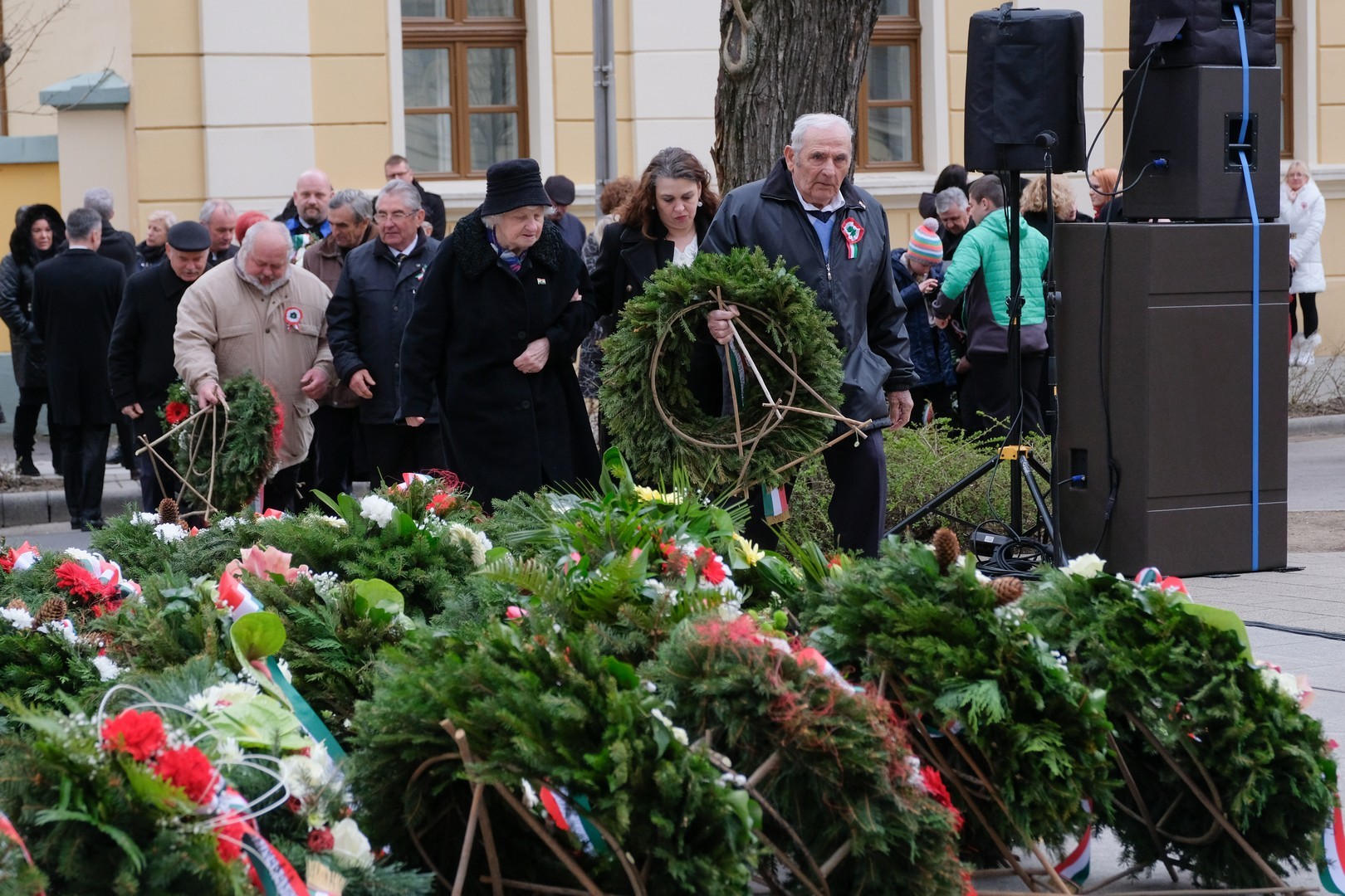 – A nagy koszorúk körül a kis zászlók azt üzenik, hogy a jelen és a jövő nemzedékei egyaránt közösen vallják az egykori márciusi ifjakkal: legyen béke, szabadság és egyetértés – zárta beszédét Görgényi Ernő.