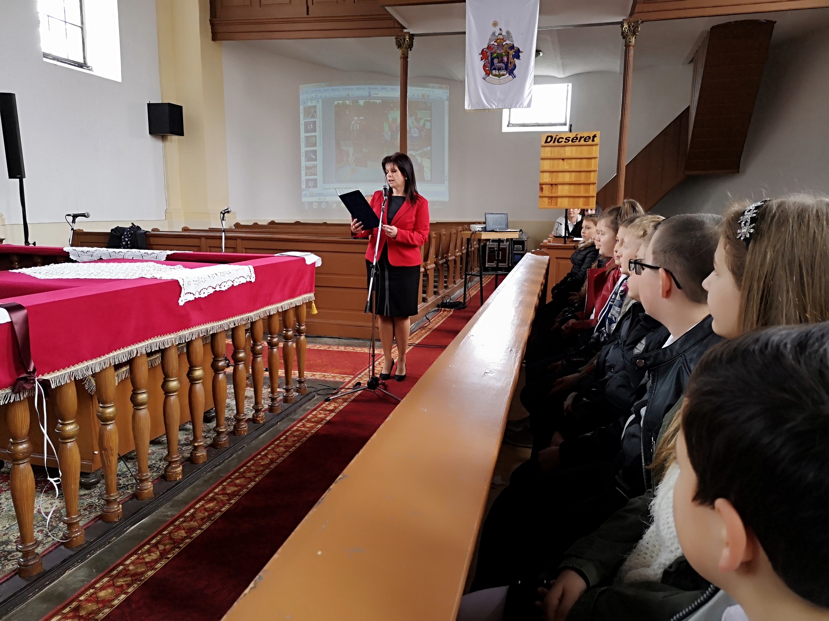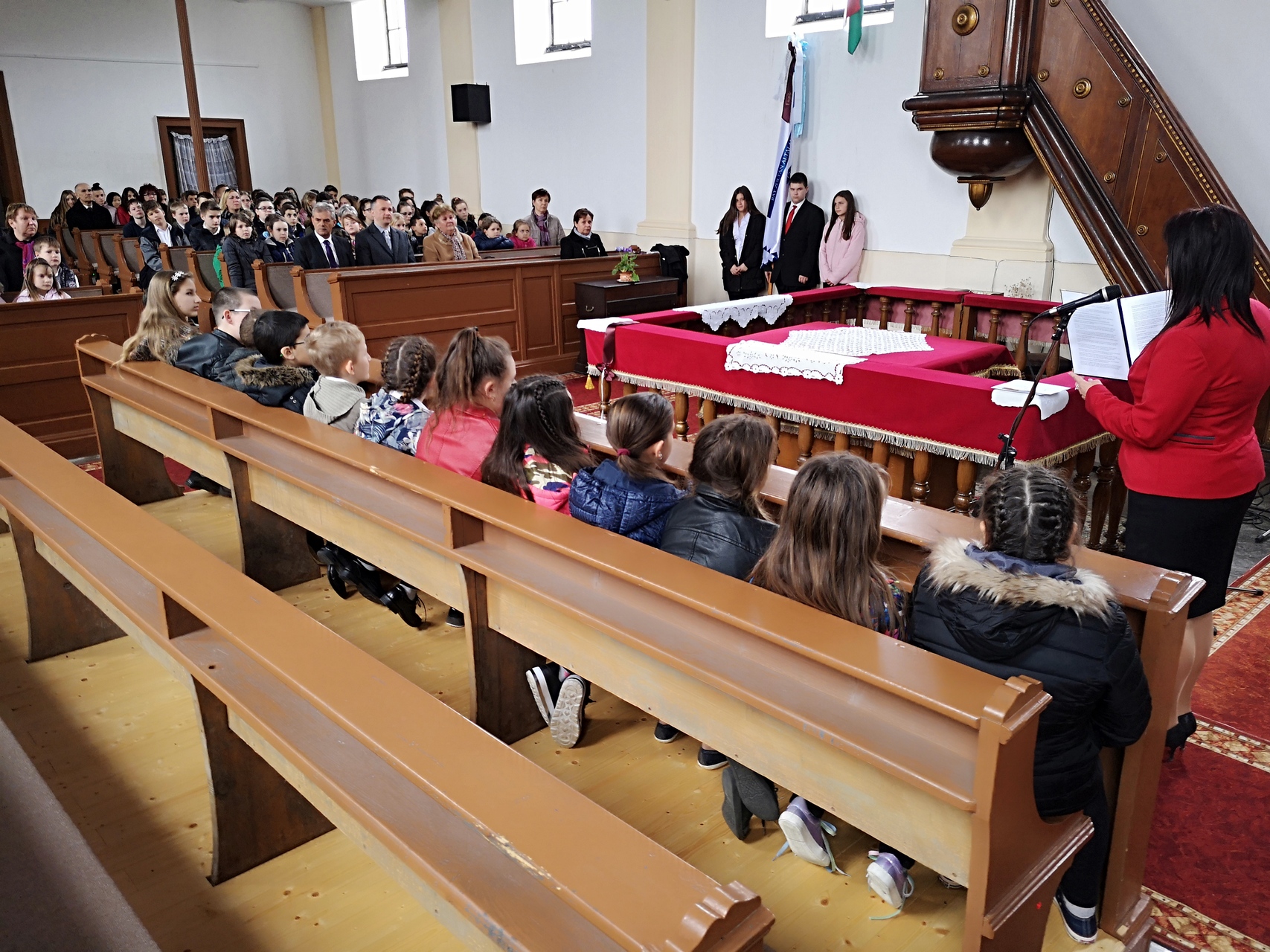 A köszöntő gondolatok után a negyedik osztályosok adtak rövid műsort, majd Bagyinszki Zoltán emlékezett meg az iskola névadójáról.