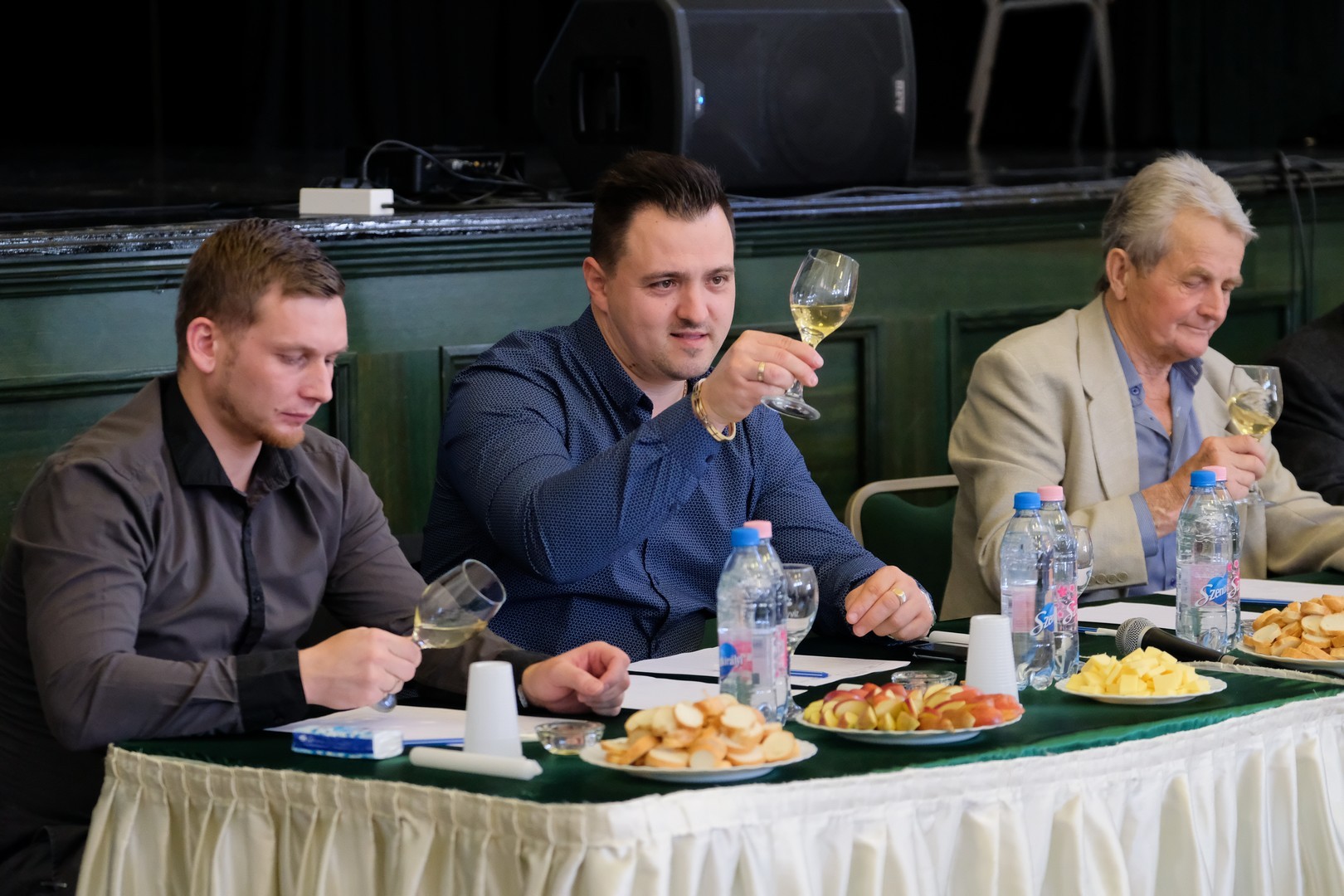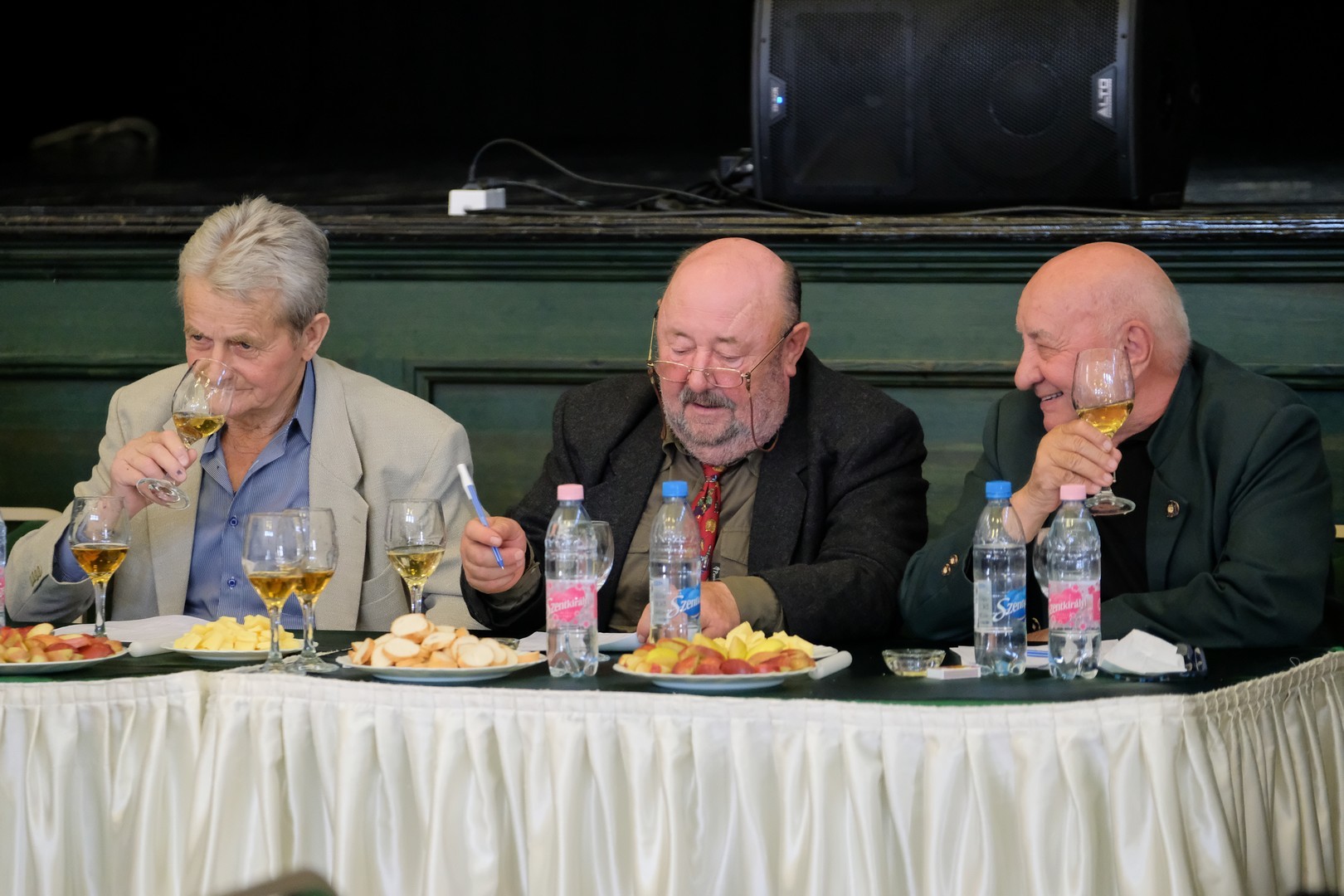A helyszínen Szatmári Sándor főszervezőtől megtudtuk, hogy a zsűriben három borász ült: Takács Ferenc, Gulyás Ferenc és Niedermayer Ádám. Rajtuk kívül egy háromtagú társadalmi zsűri is értékelte e borokat, az ő szavazatuk mintánként összesen egy pontot ért.