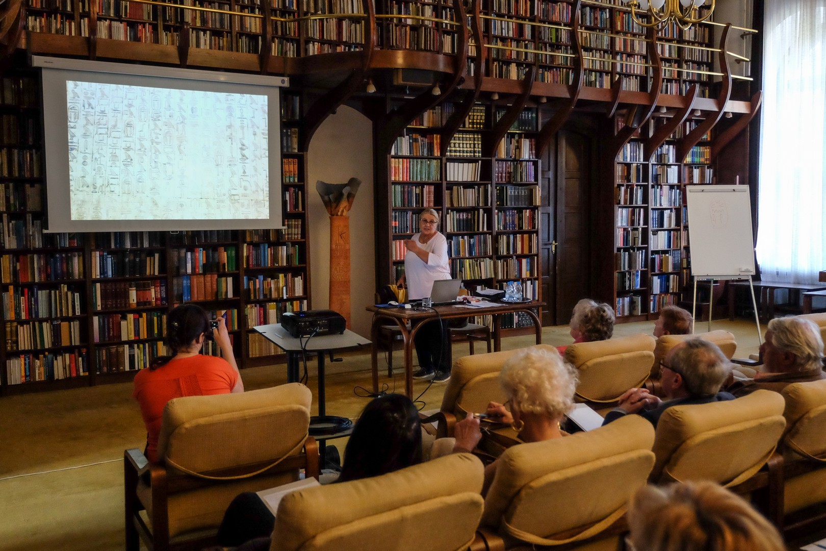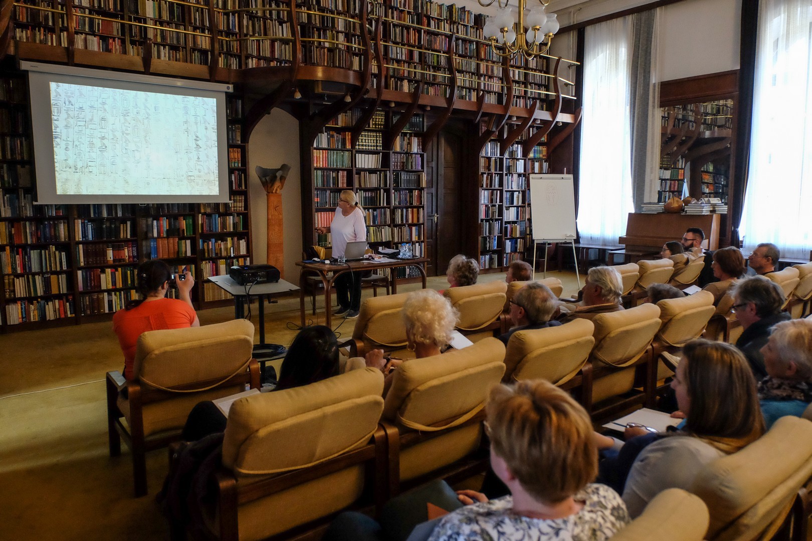 A téma, amivel érkezett, ezúttal is sokakat a könyvtárba szólított. A nagy érdeklődés köszönhető annak is, hogy Pécsi Ágnes előadónak is kiváló. A jelenlévők ezúttal azt sajátíthatták el tőle, merről merre olvasandók az ókori egyiptomi szent vésetek, és ezzel azt is megtudhatták, hogy nem fentről lefelé, amiként ezt a legtöbben hiszik. Ez persze még nem azt jelenti, hogy kötelező módon balról jobbra, mert az írásirány az, ami változik.