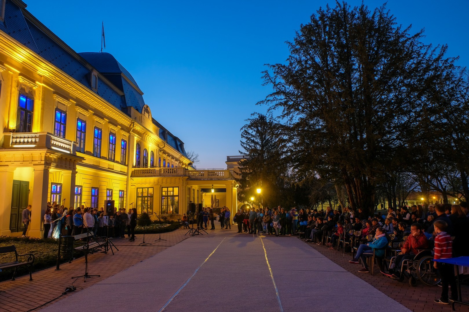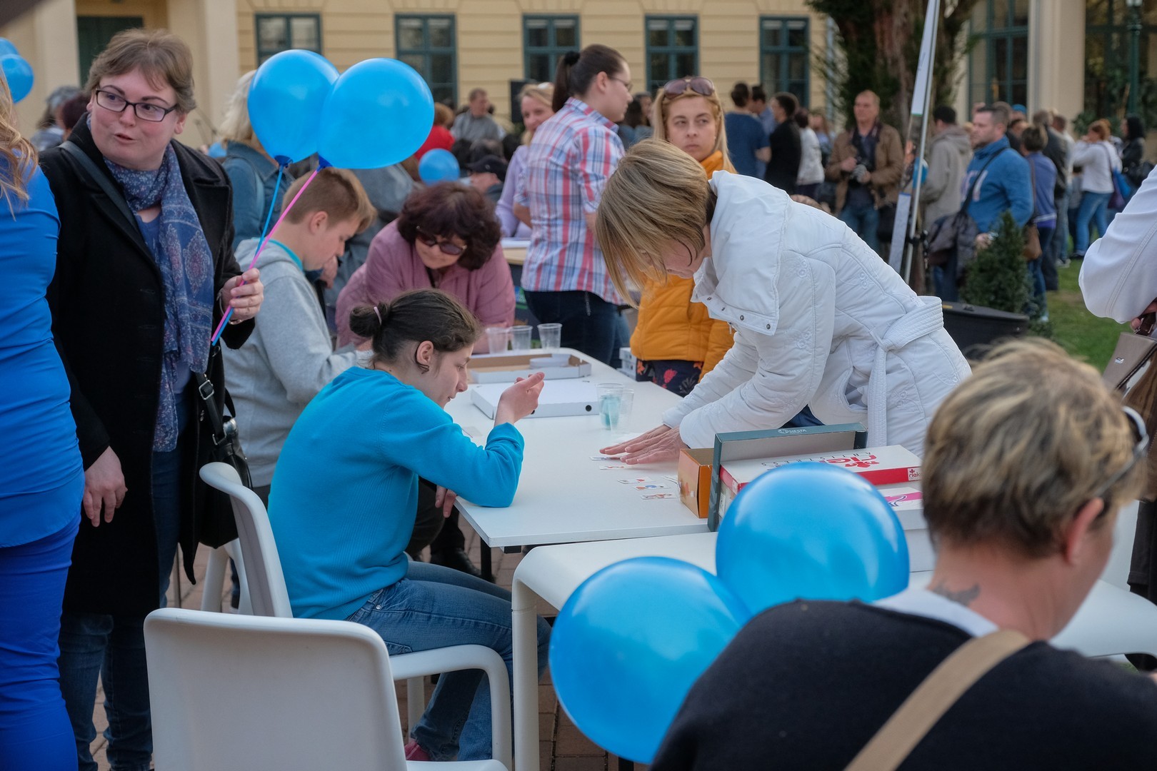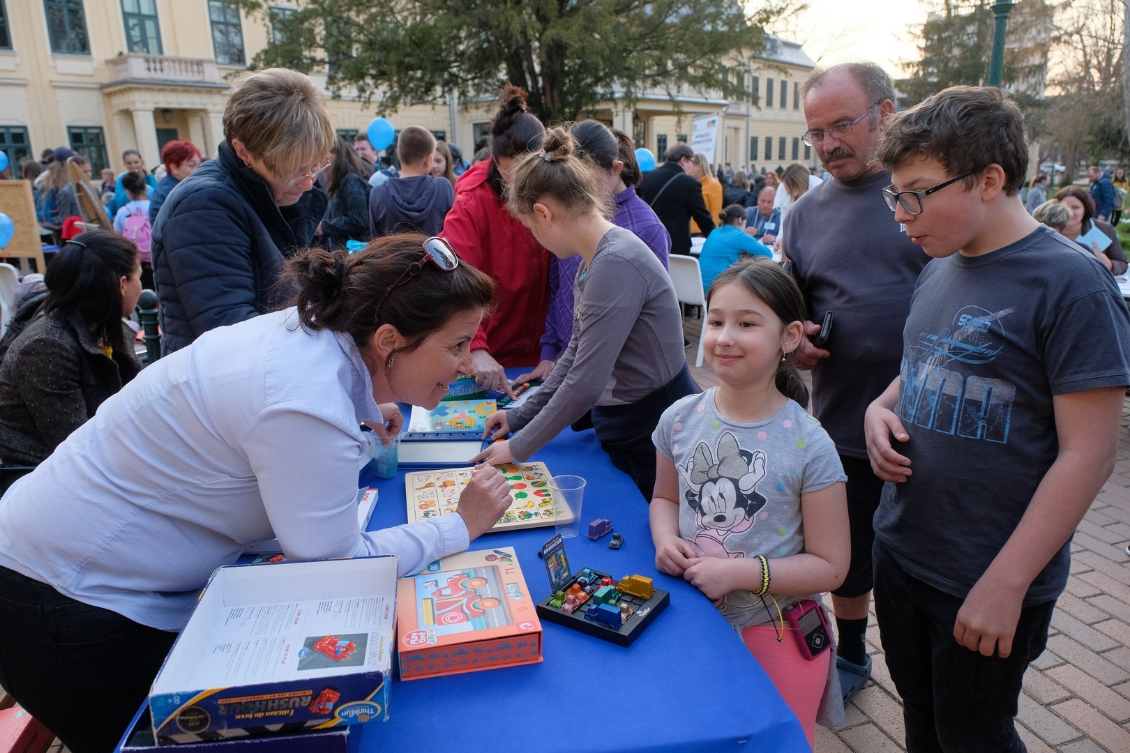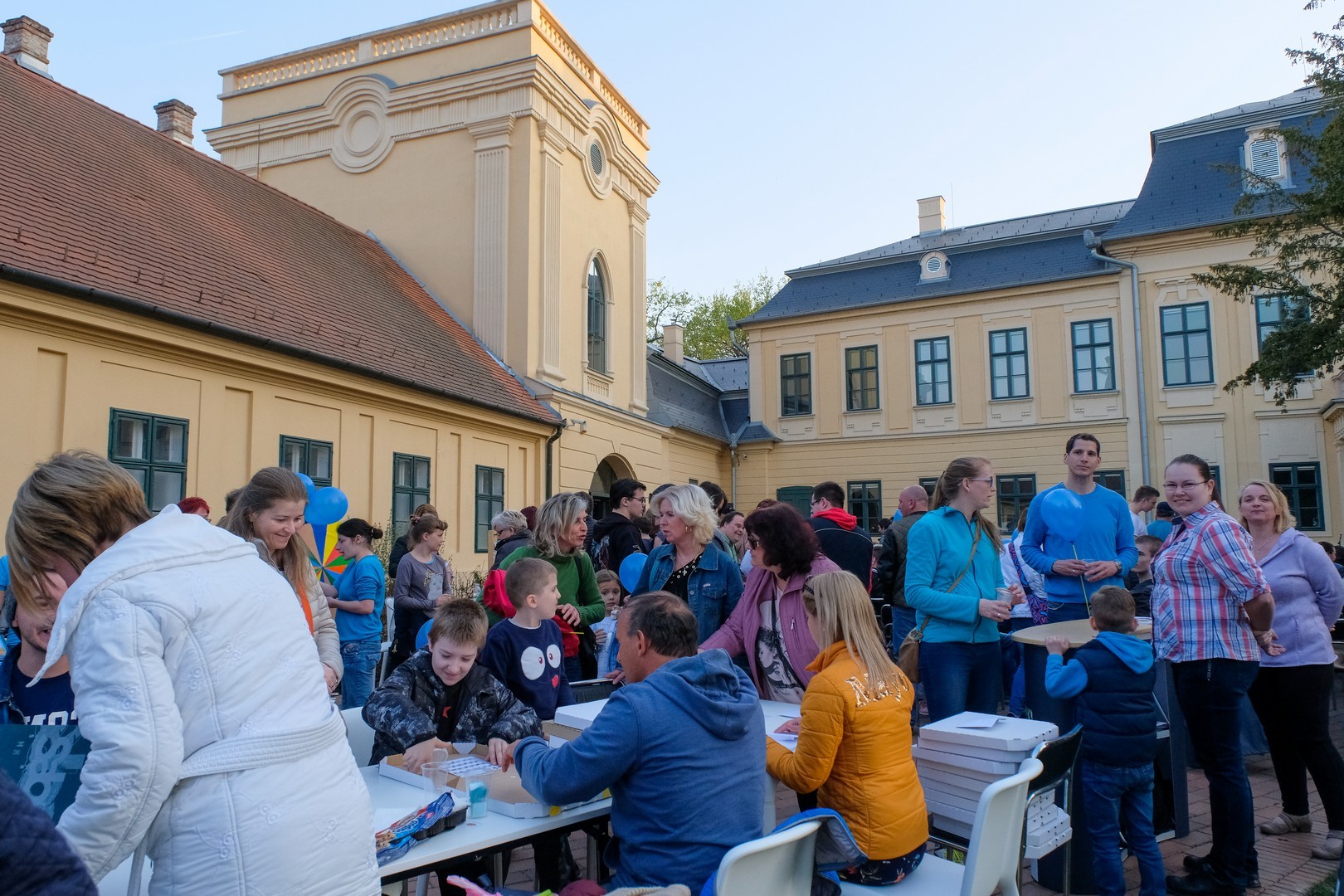A rendezvény délután felvonulással indult. A részvevők az Esély Pedagógiai Központ Pánczél Imre Tagintézményétől sétáltak át kék lufikkal az Almásy-kastély elé, ahol számos érzékenyítő program által ismertették meg a látogatókkal az autizmus esetén használt módszereket, technikákat, kommunikációs eszközöket. Nem csak játszani és tanulni lehetett itt, hanem biciklizni is, speciális kerékpárokon.