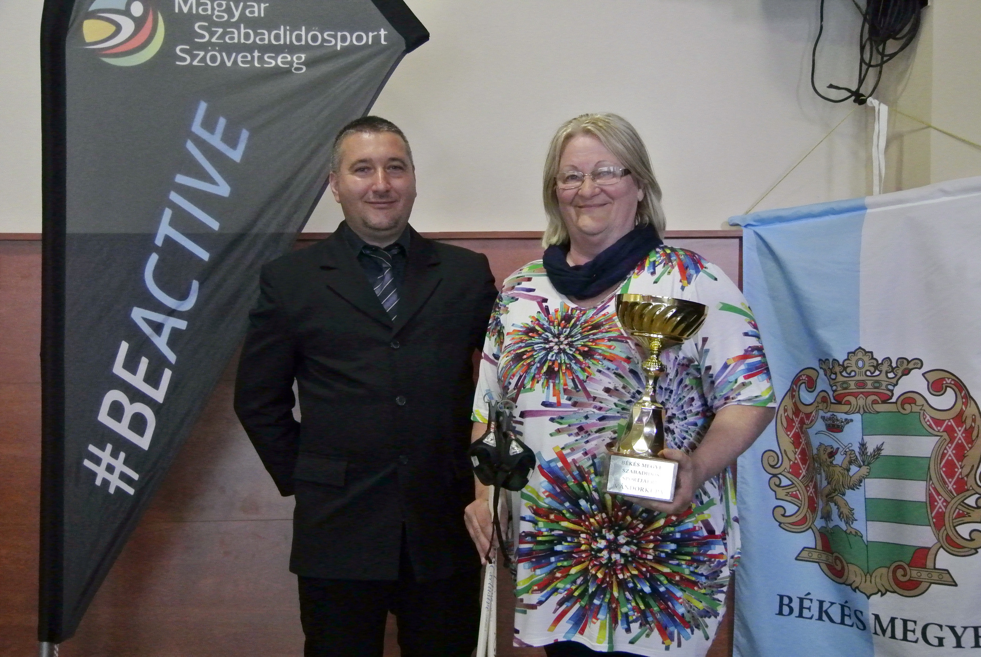 A közgyűlés végén hagyományosan átadták a megyei szervezet vándorserlegét is, melyet ezúttal a Szeghalmi Nordic Walking Klub érdemelte ki. A díjat Elek Julianna egyesületi elnök vehette át, akivel tavaly közösen indították el a Békés Megyei Nordic Walking Programot.