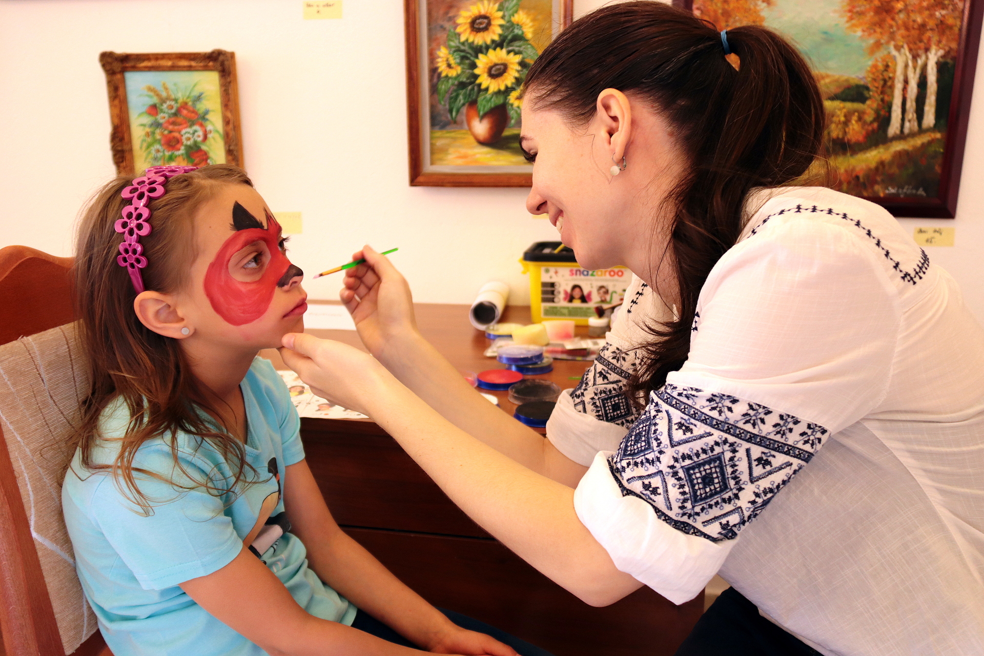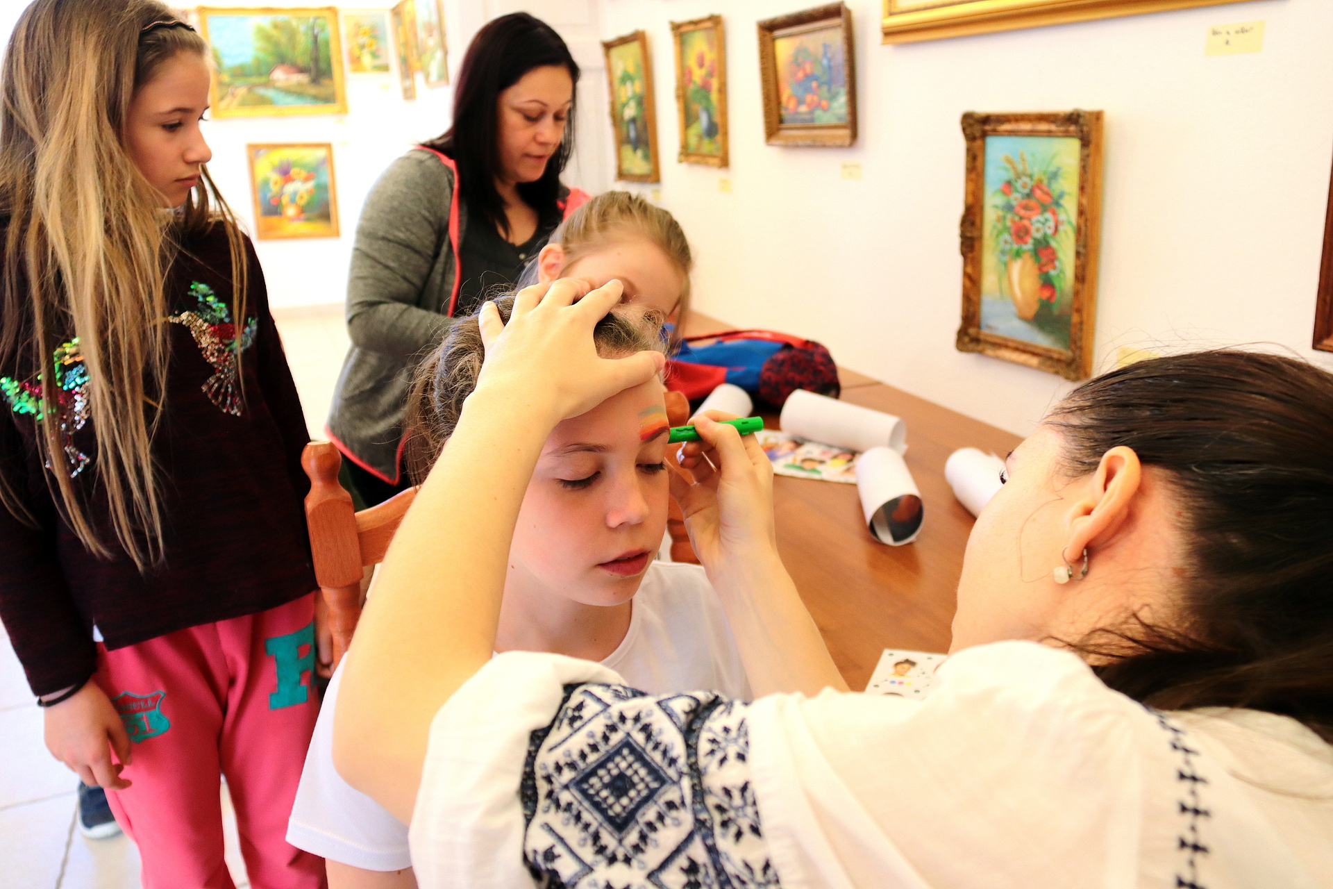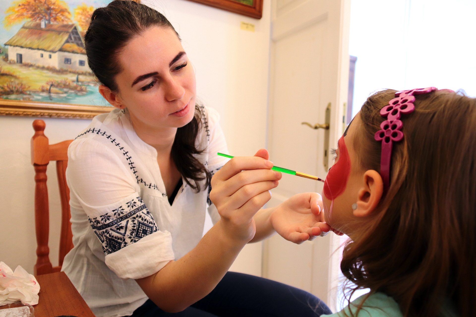 Nagy volt az érdeklődés az arcfestés iránt is. A jelentkezők különböző minták közül választhatták ki a nekik leginkább tetszőt. A legnépszerűbbnek a nyuszifélarcdísz és a szivárvány bizonyult. Csobán Annától megtudtuk, utóbbit főként a nagyobbacska leányzók kérik. De akadnak olyanok is, akik a karjukat vagy a kézfejüket szeretnék kifestetni, míg mások az egész arcukat befedő kompozícióra vágynak. Élete első testfestő rajzával az unokahúgát örvendeztette meg, azóta több ezret készített, így most már tudja, elrontani nem lehet. A legrosszabb esetben az történik, hogy nem pont úgy sikerül, ahogyan eltervezte.