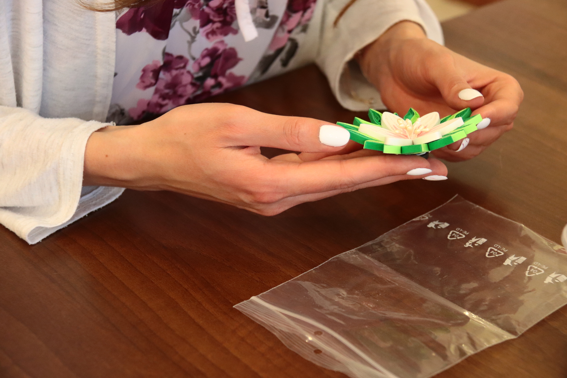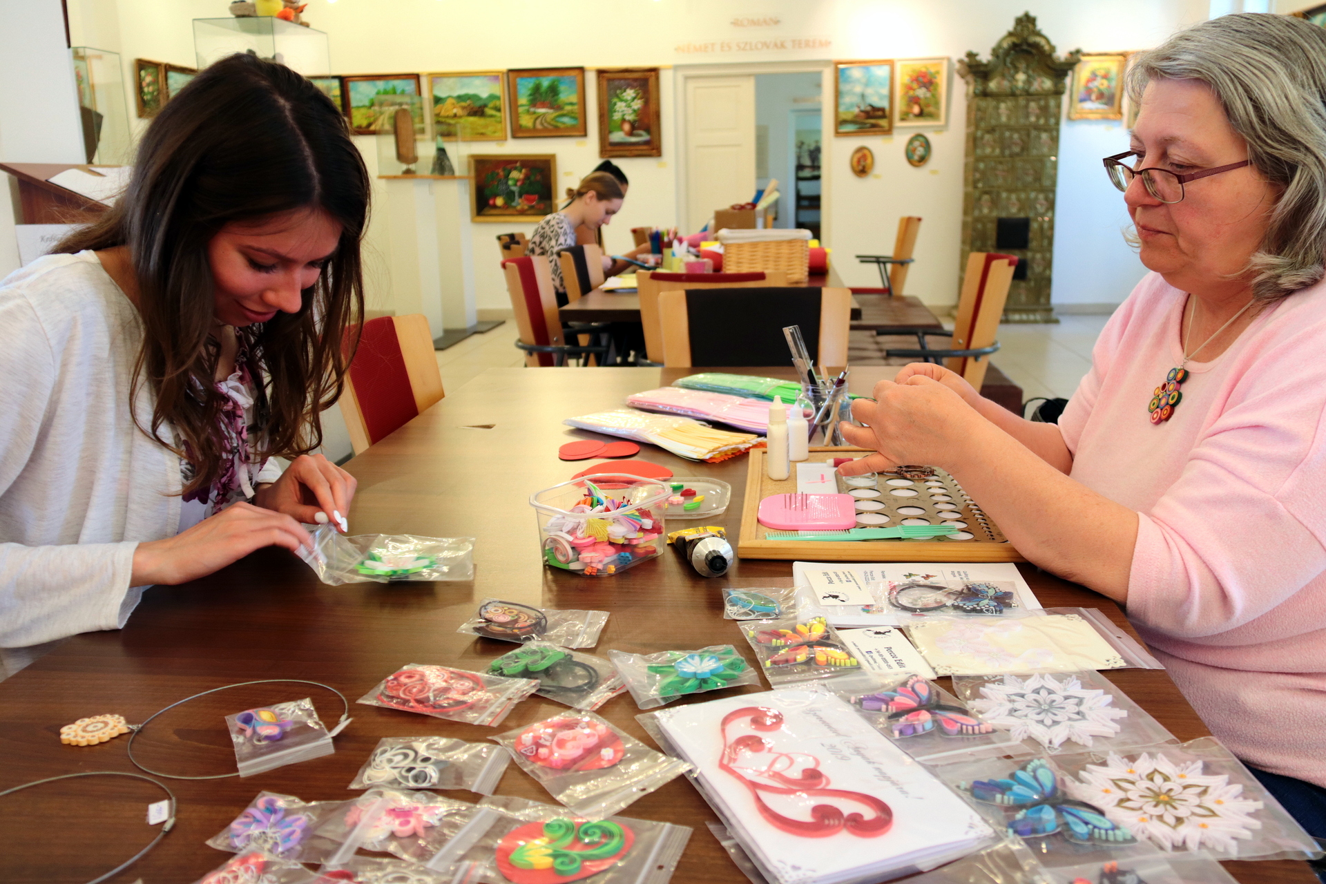 A szomszédos asztalnál Percze Edit, alias Quilling boszi mesterkedett. Mint mondta, hat éve kezdett el ezzel a technikával foglalkozni, miután az egyik ismerőse vásárolt magának egy quillingékszert. Mivel ez nagyon megragadta a tetszését, utánaolvasott a világhálón, sőt egyre jobban belemélyedt az elsajátításába, egyre bonyolultabb formákkal kezdett el kísérletezni.