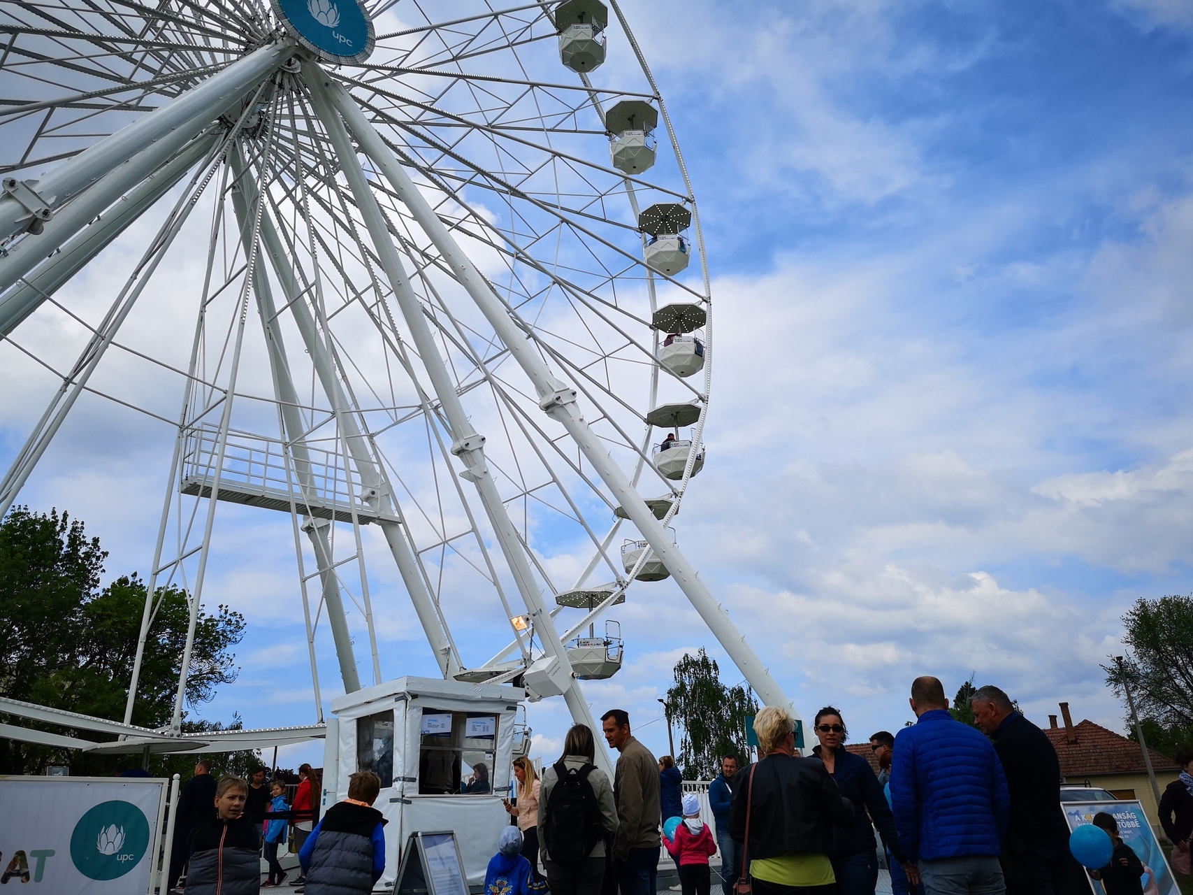 A gyulai óriáskerék is ezen a napon startolt, és ahogy a helyszínen megtudtuk: a 35 méter magas szerkezetet egészen május 12-ig élvezhetik a helyiek, akik már dél körül sorban álltak egy-egy „utazásért”.