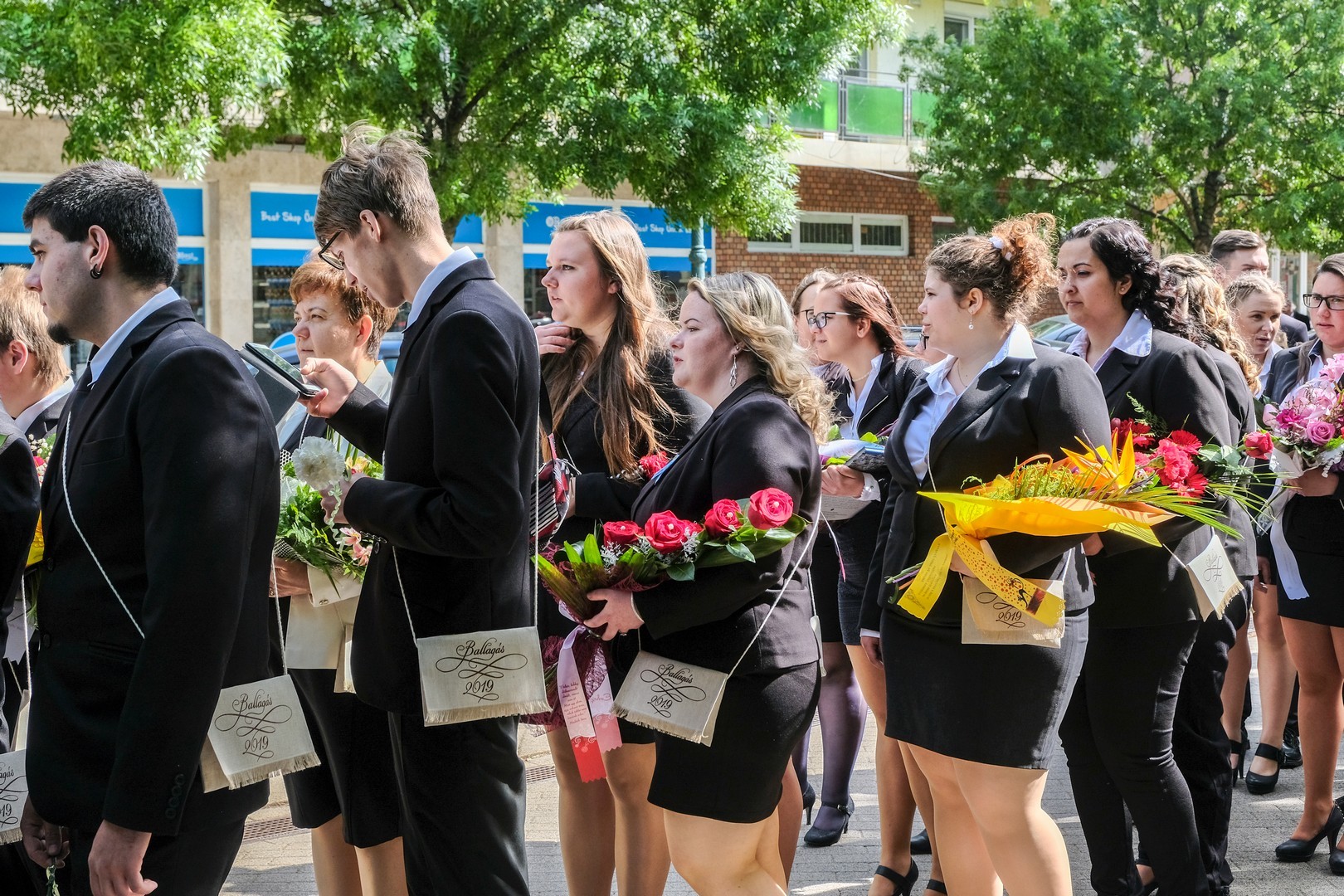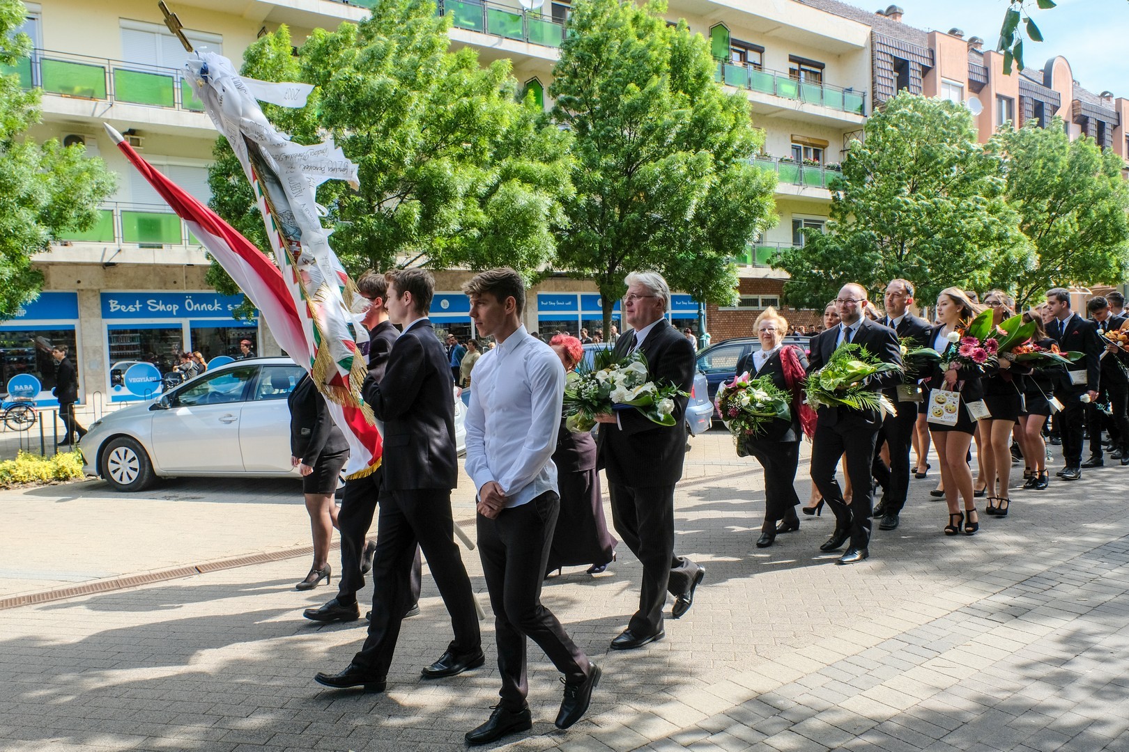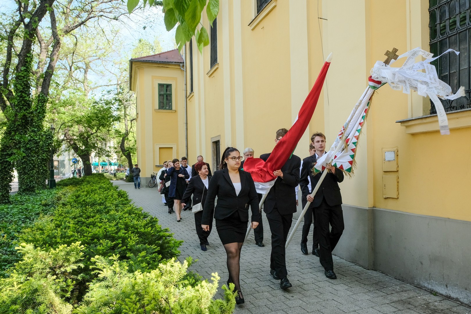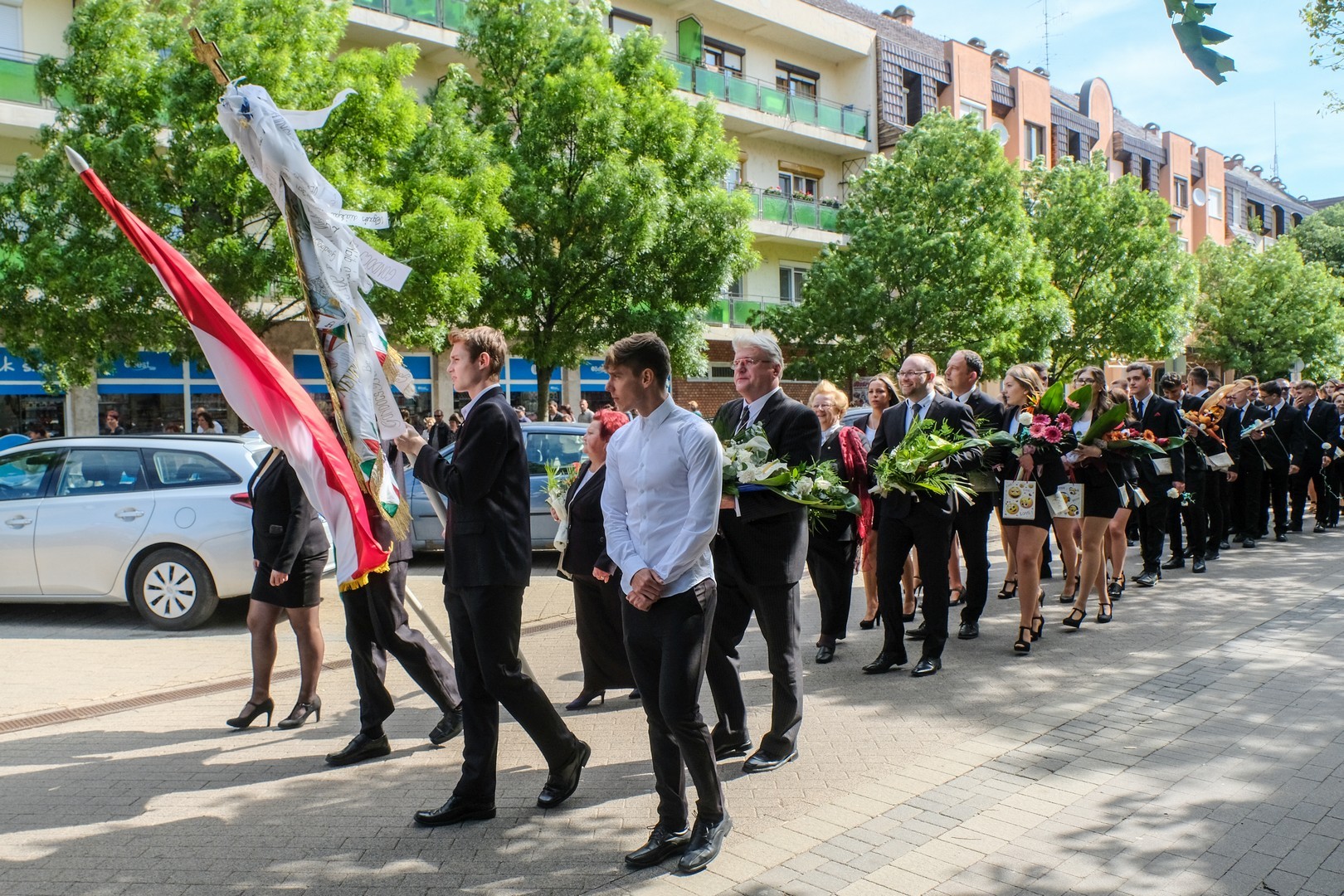 A szentmisét követő ballagási ünnepség első részében a tanulók nevében Kiss Anikó Andrea és Csatlós Orsolya (13. SzÉ) búcsúzott, Kostyalik Krisztina (12. C) szavalatával köszönt el diáktársaitól és tanáraitól.
