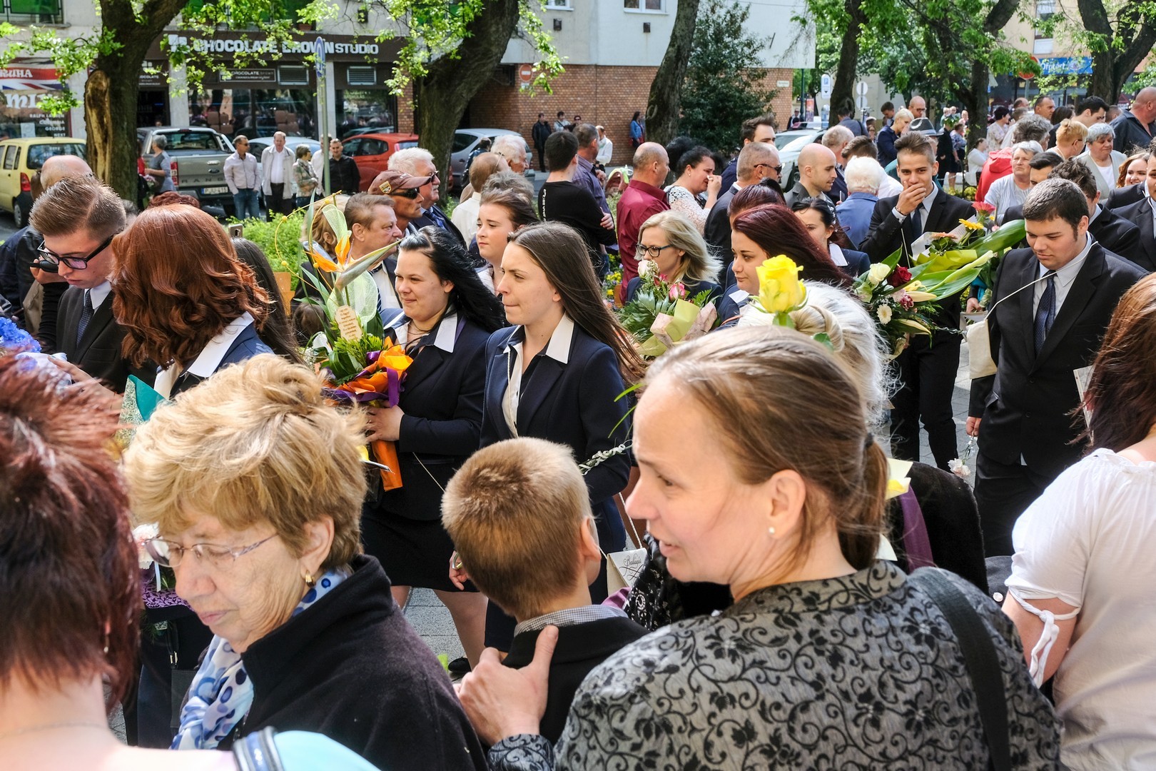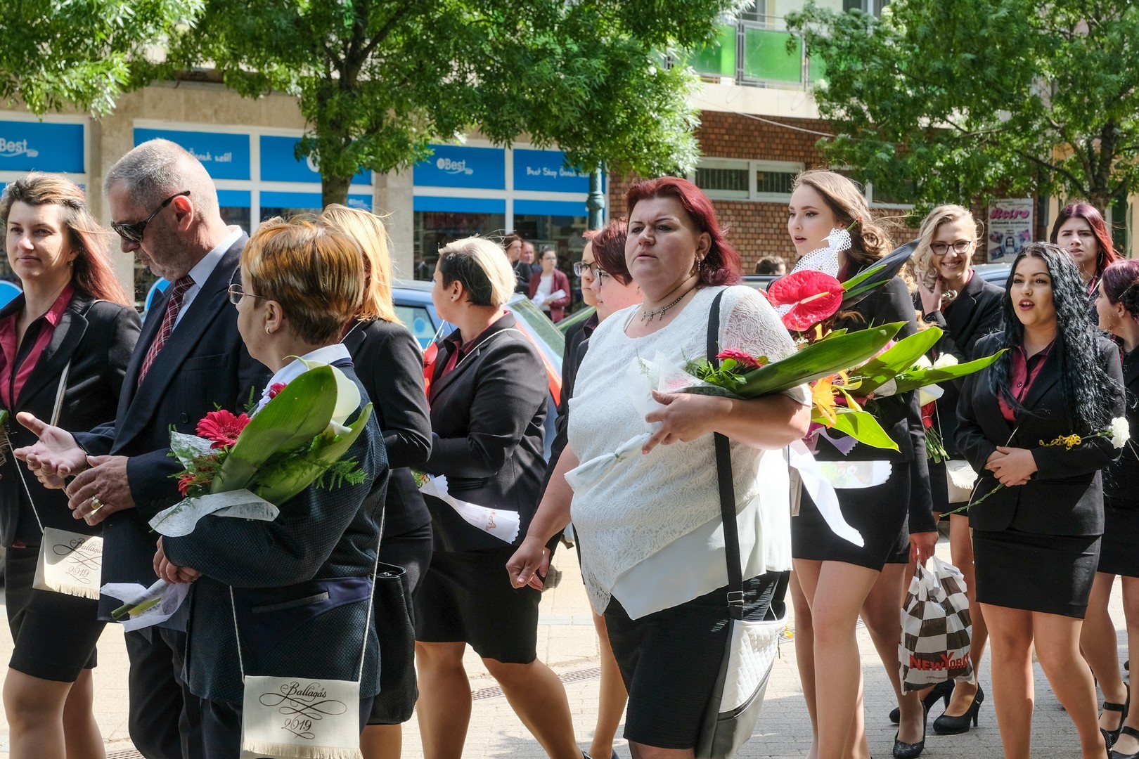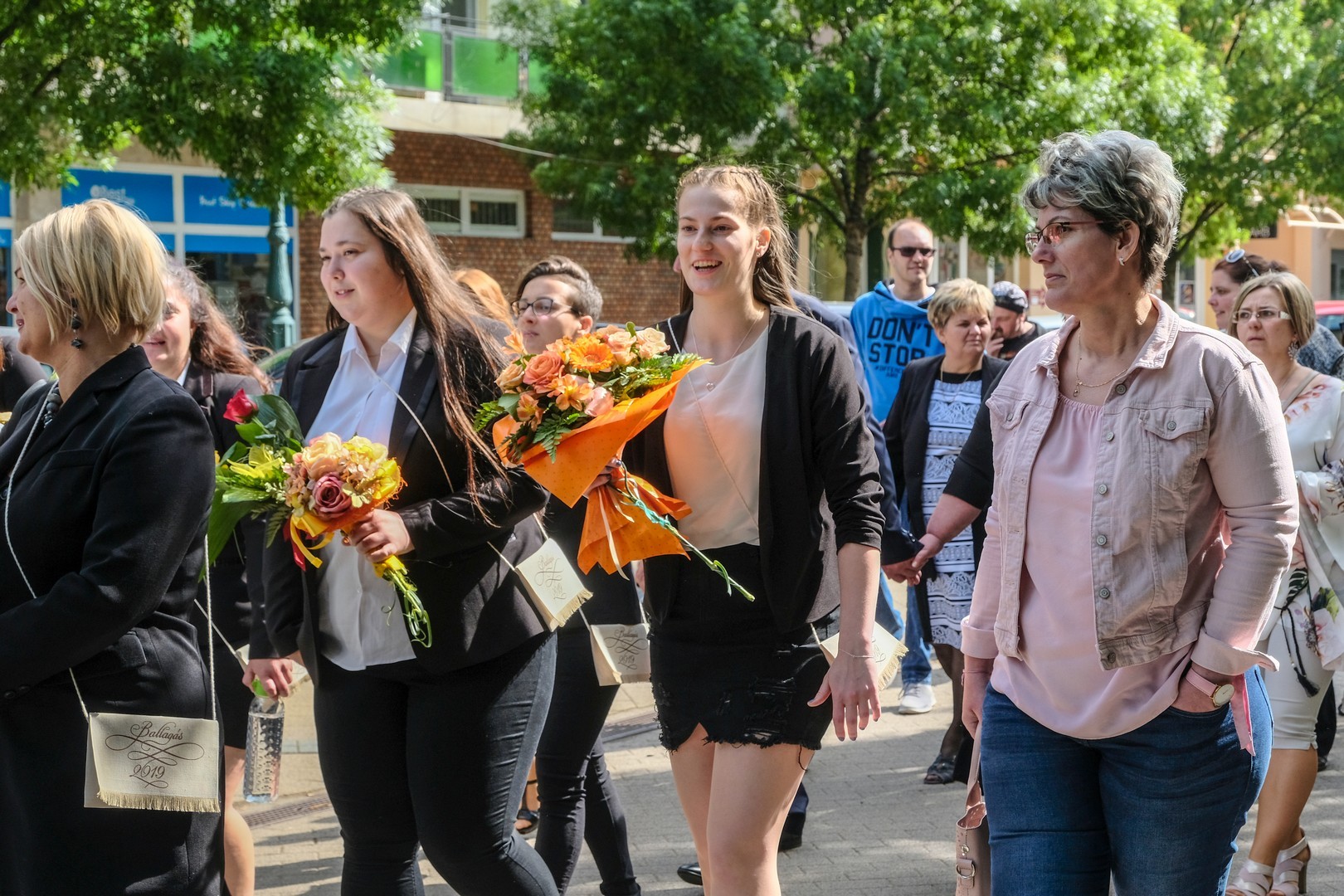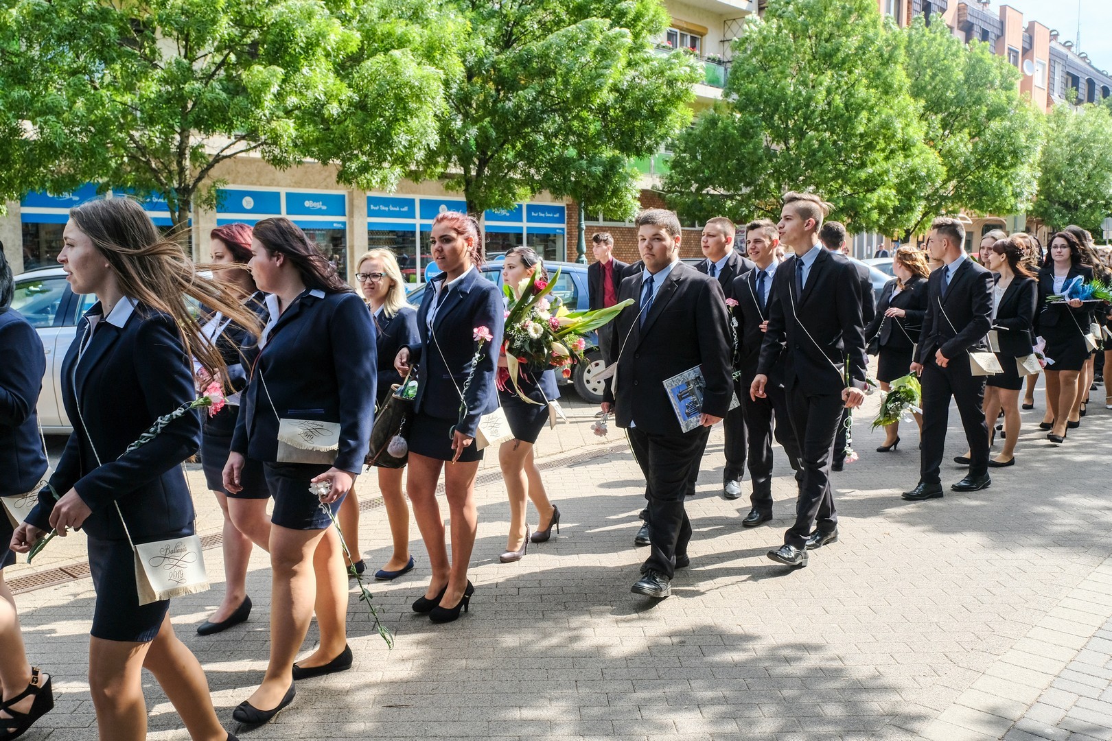 A szentmisét követő ballagási ünnepség első részében a tanulók nevében Kiss Anikó Andrea és Csatlós Orsolya (13. SzÉ) búcsúzott, Kostyalik Krisztina (12. C) szavalatával köszönt el diáktársaitól és tanáraitól.