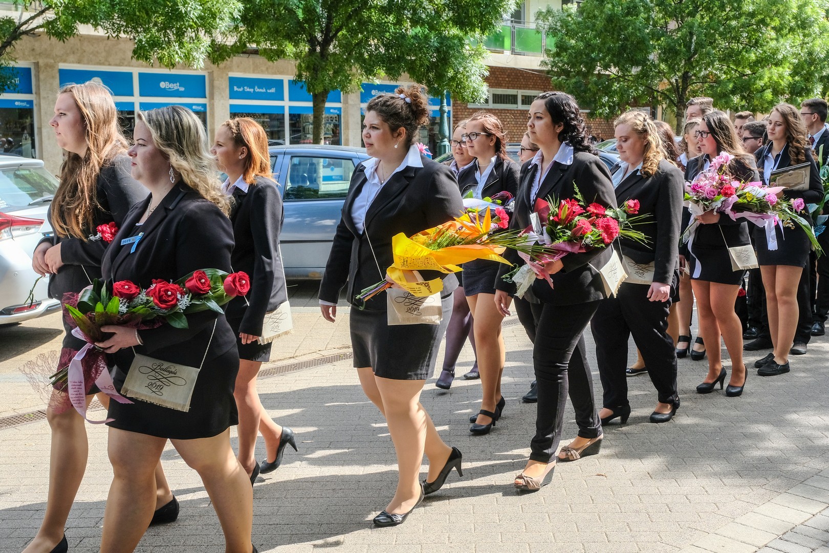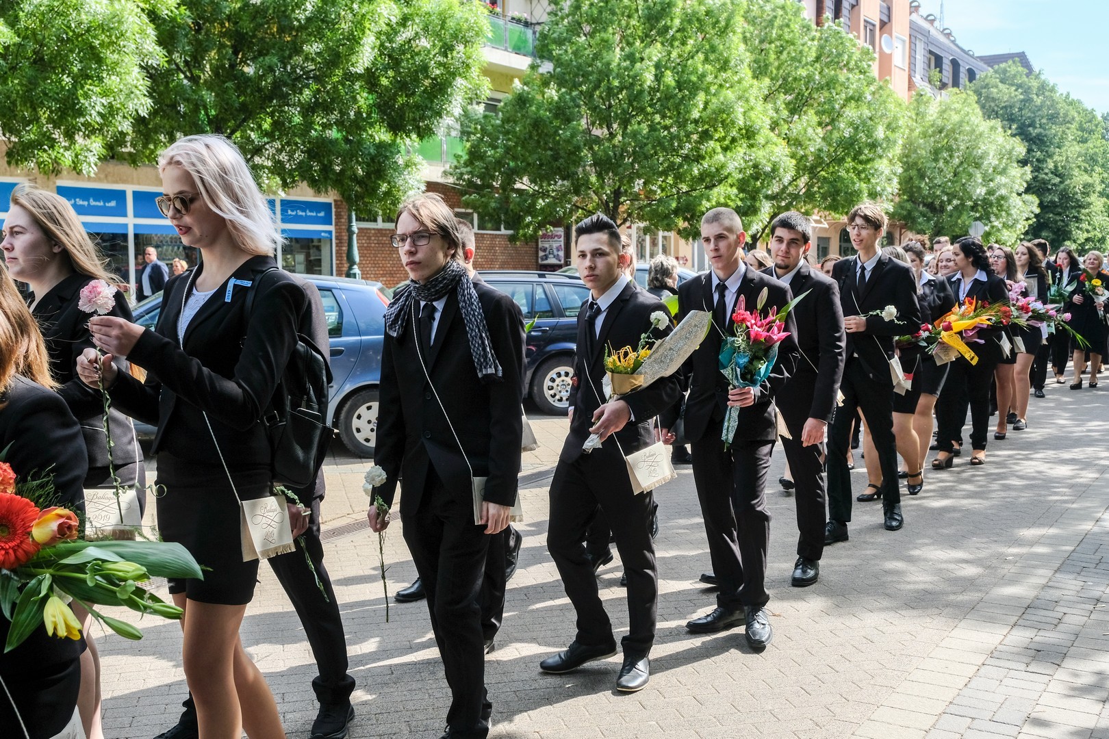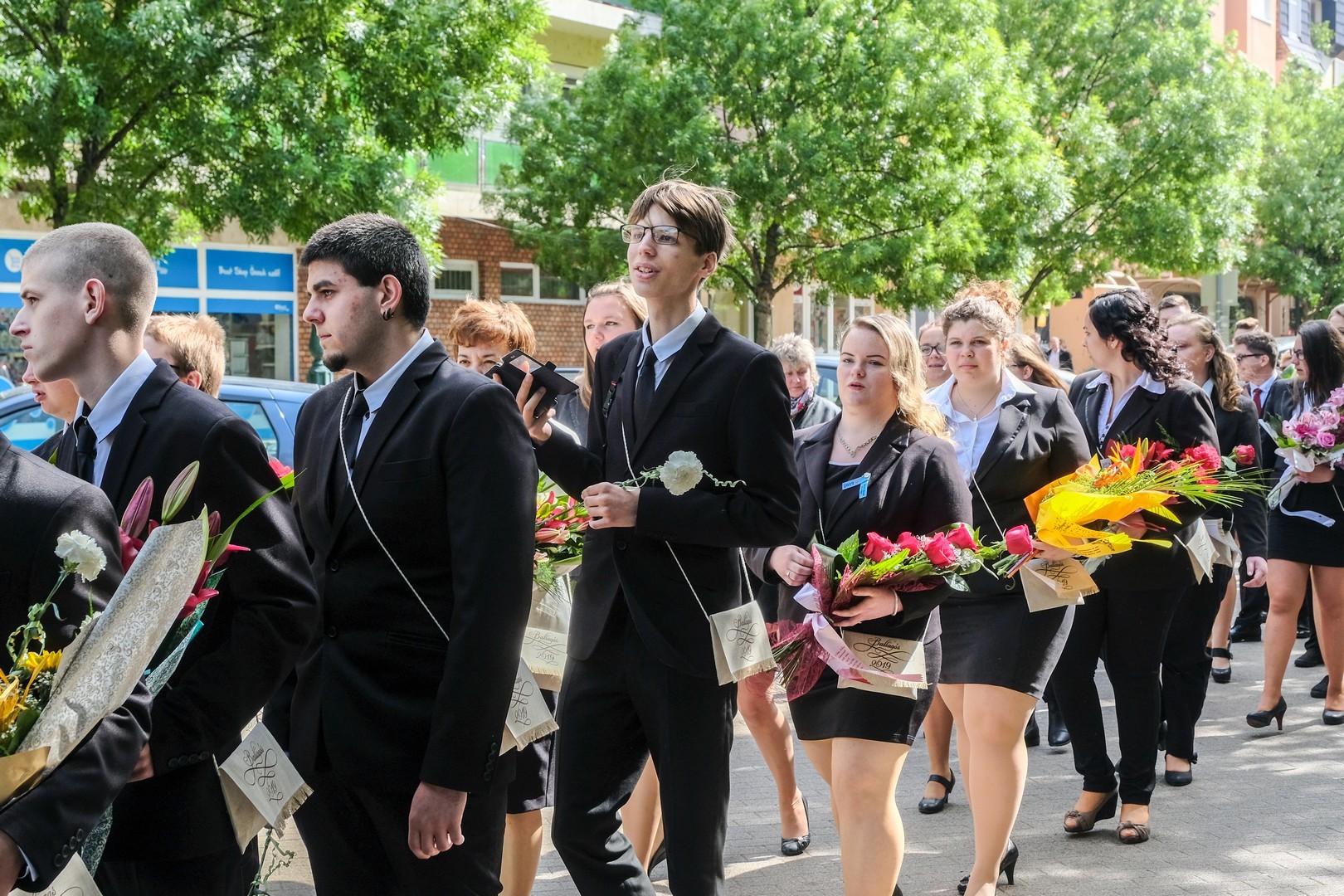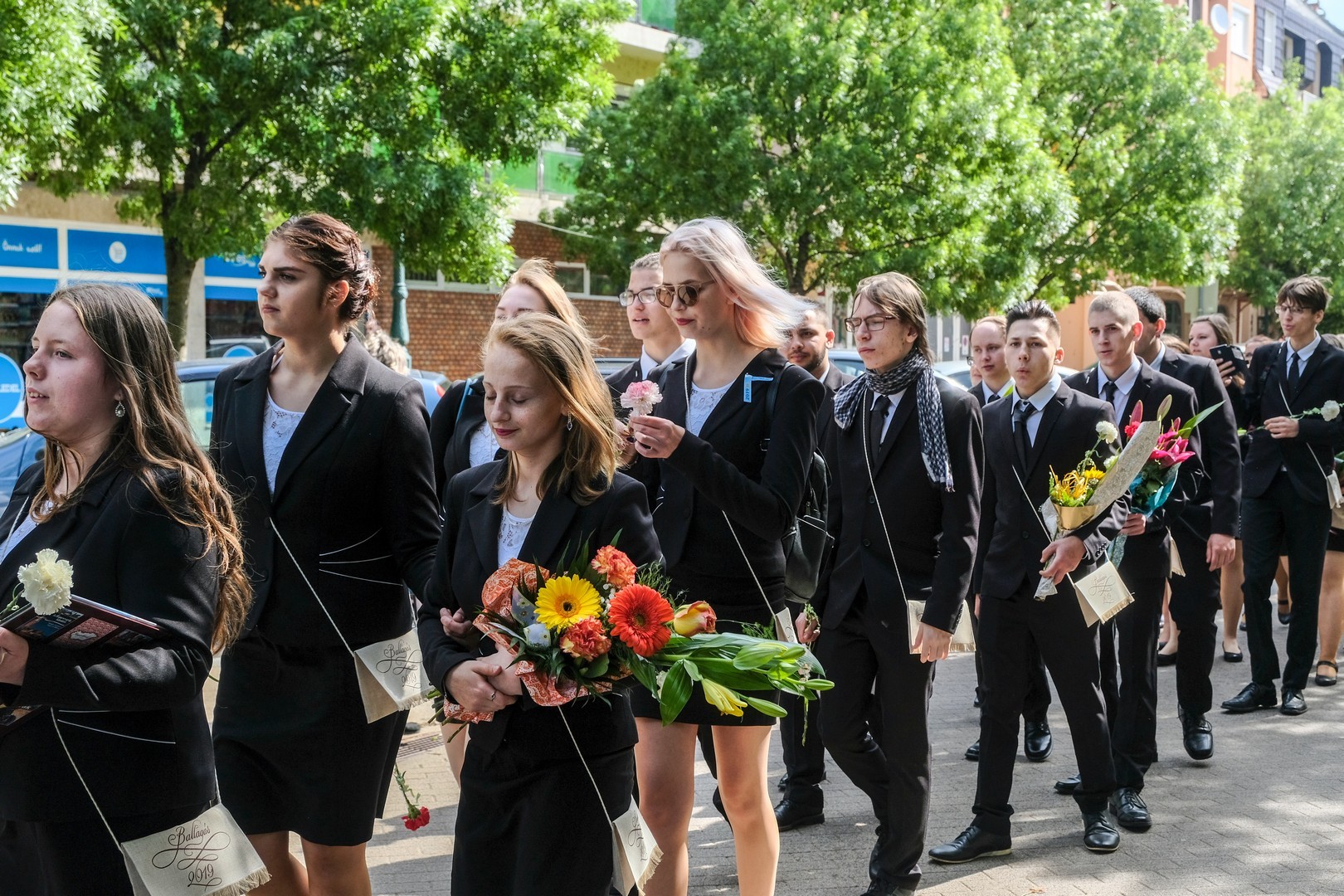 A szentmisét követő ballagási ünnepség első részében a tanulók nevében Kiss Anikó Andrea és Csatlós Orsolya (13. SzÉ) búcsúzott, Kostyalik Krisztina (12. C) szavalatával köszönt el diáktársaitól és tanáraitól.