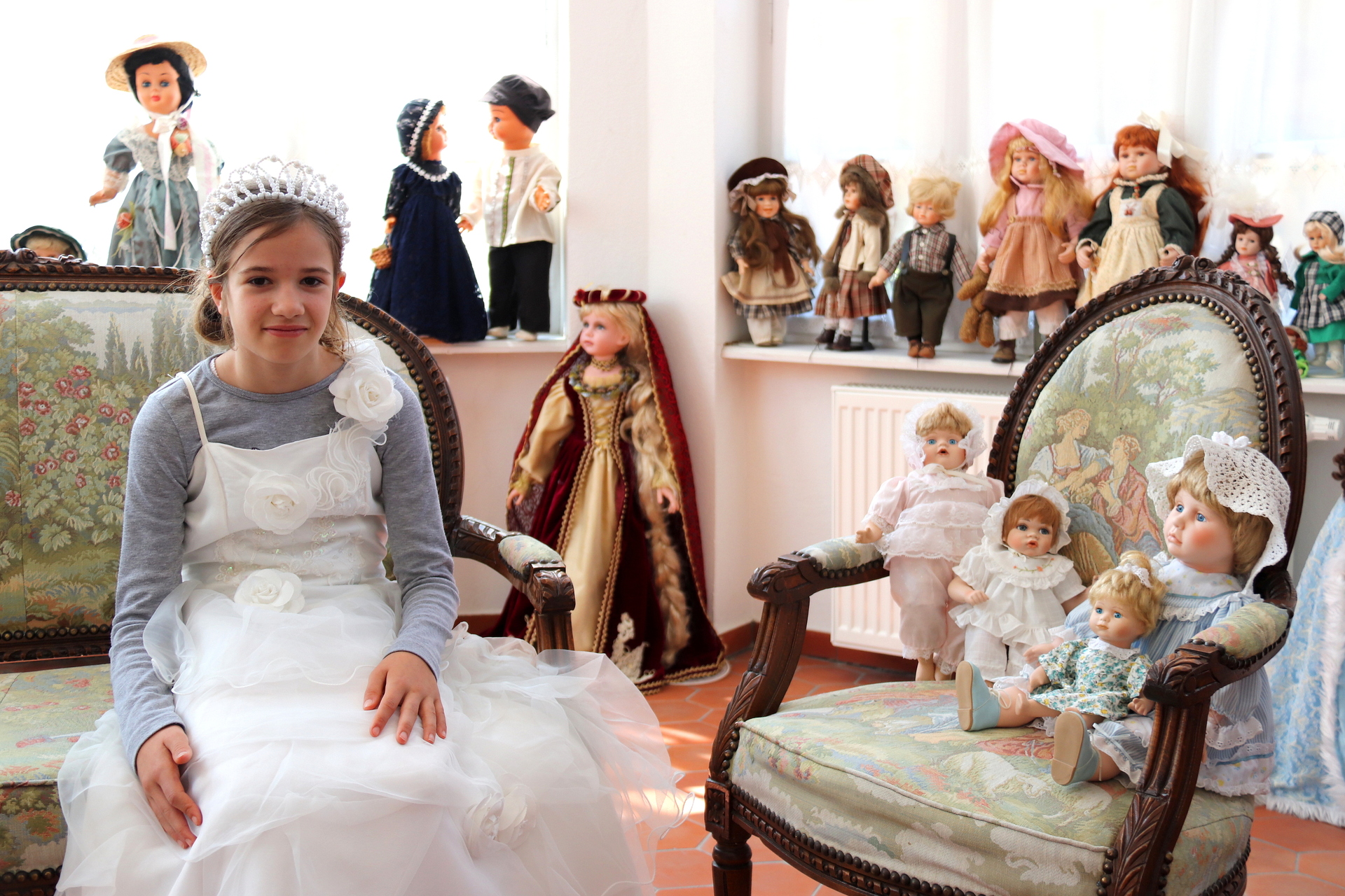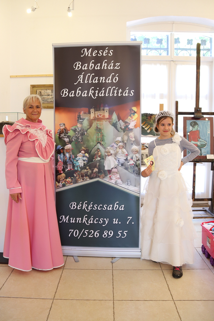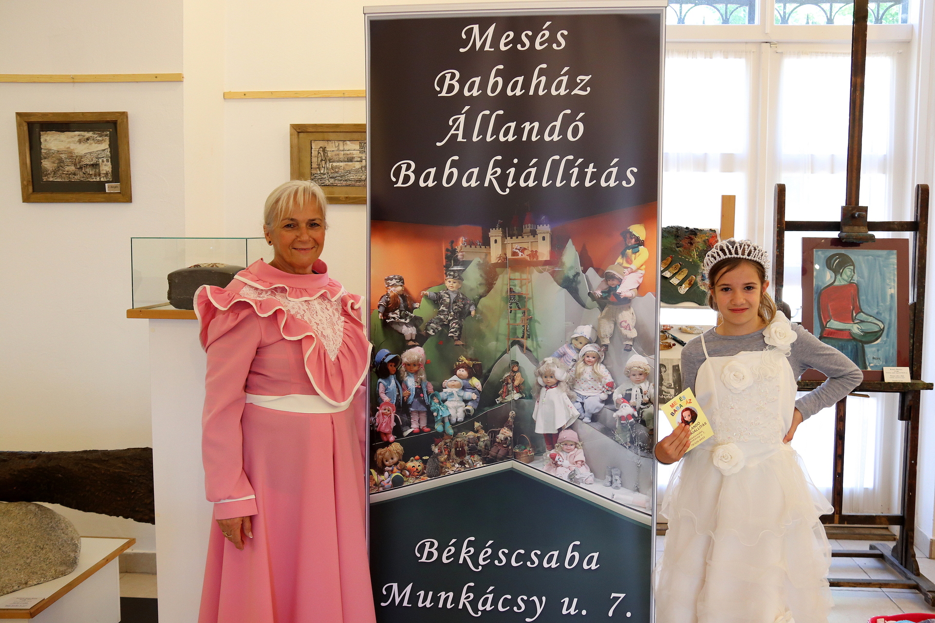 A Mesés Babaház jó néhány évvel ezelőtt nyílt meg Békéscsabán, a Munkácsy utcában, egy volt takarékszövetkezet helységeiben Somlyai Lajosné nyugdíjas pedagógus kezdeményezésére. A kiállítás alapját különböző típusú babák alkotják, szám szerint immár kétezer darab. Ez 25 évnyi gyűjtőmunka eredménye, tudtuk meg az alapítótól, aki a Közösségek Hete szombati rendezvényére csaknem hetven babát hozott el a megyeszékhelyről. Ezekből ötven a szalonban tekinthető meg augusztus 31-ig. Vannak köztük német gyártmányúak, de vannak skandináv készítésűek is, kisebbek és nagyobbak egyaránt.