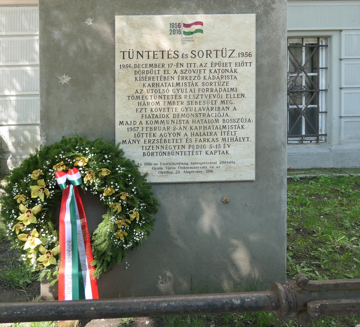 Bagyinszki Zoltán, az alapítvány kuratóriumának elnöke lapunknak elmondta: Csikós Milánnal, a gyulai polgármesteri hivatal közoktatási és kulturális ügyintézőjével és Pataky László kuratóriumi taggal koszorút helyeztek el az Október 23. téri emlékműnél, a rendőrség előtti kis emlékműnél, a gyulavári kopjafánál és a XX. századi gyulai hősök és áldozatok emlékművénél.