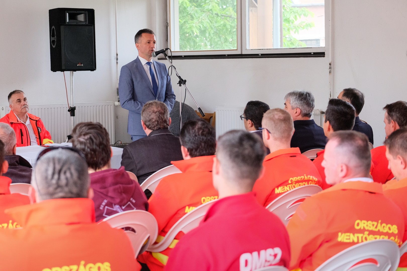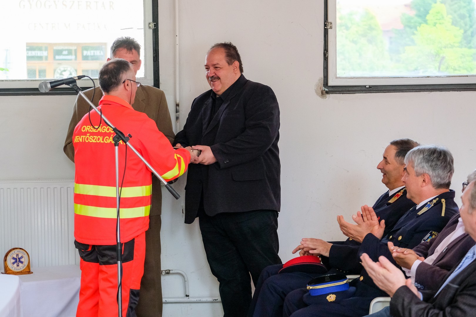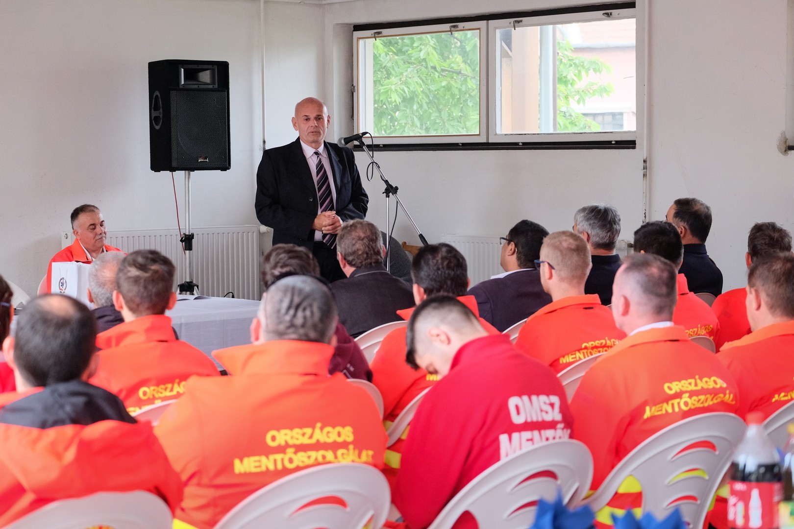 Sárosi Tamás megyei tisztifőorvos szólt a megjelentekhez. Felhívta a figyelmet a kormányhivatal Közös érték az egészség elnevezésű programjára, melynek keretében a mentőszolgálattal együttműködve tartottak tanfolyamokat munkavállalóiknak.