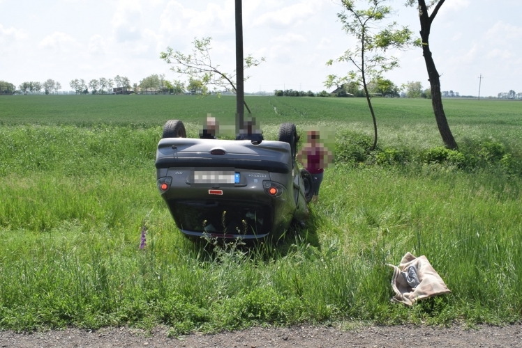 Csanádapáca irányából Békéscsaba felé tartó személygépkocsi vezetője előzés közben vészfékezett, majd az autó árokba sodródott és felborult Békéscsaba külterületén május 19-én délelőtt. Az autót vezető nőt könnyű sérüléssel vitték kórházba a mentők.