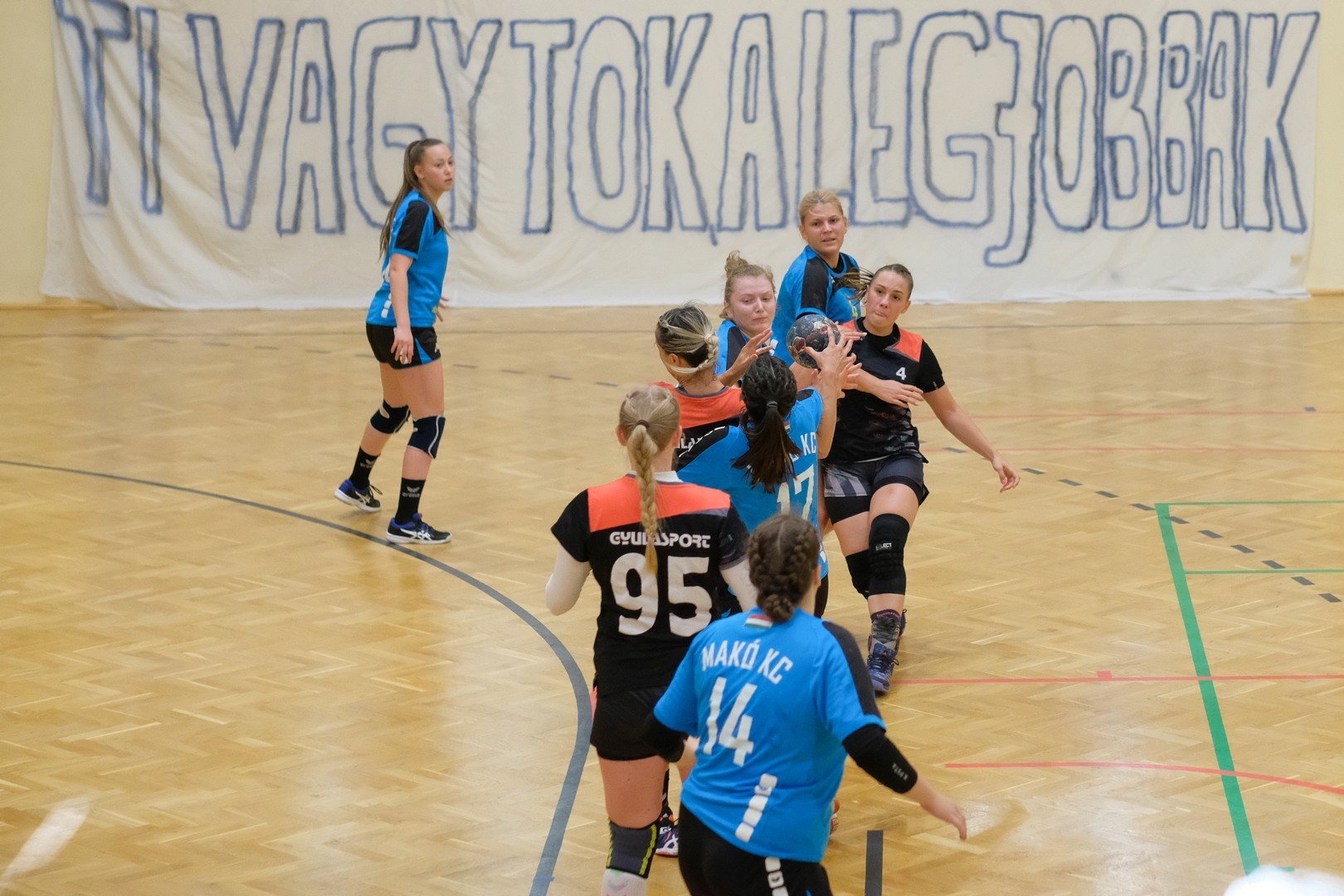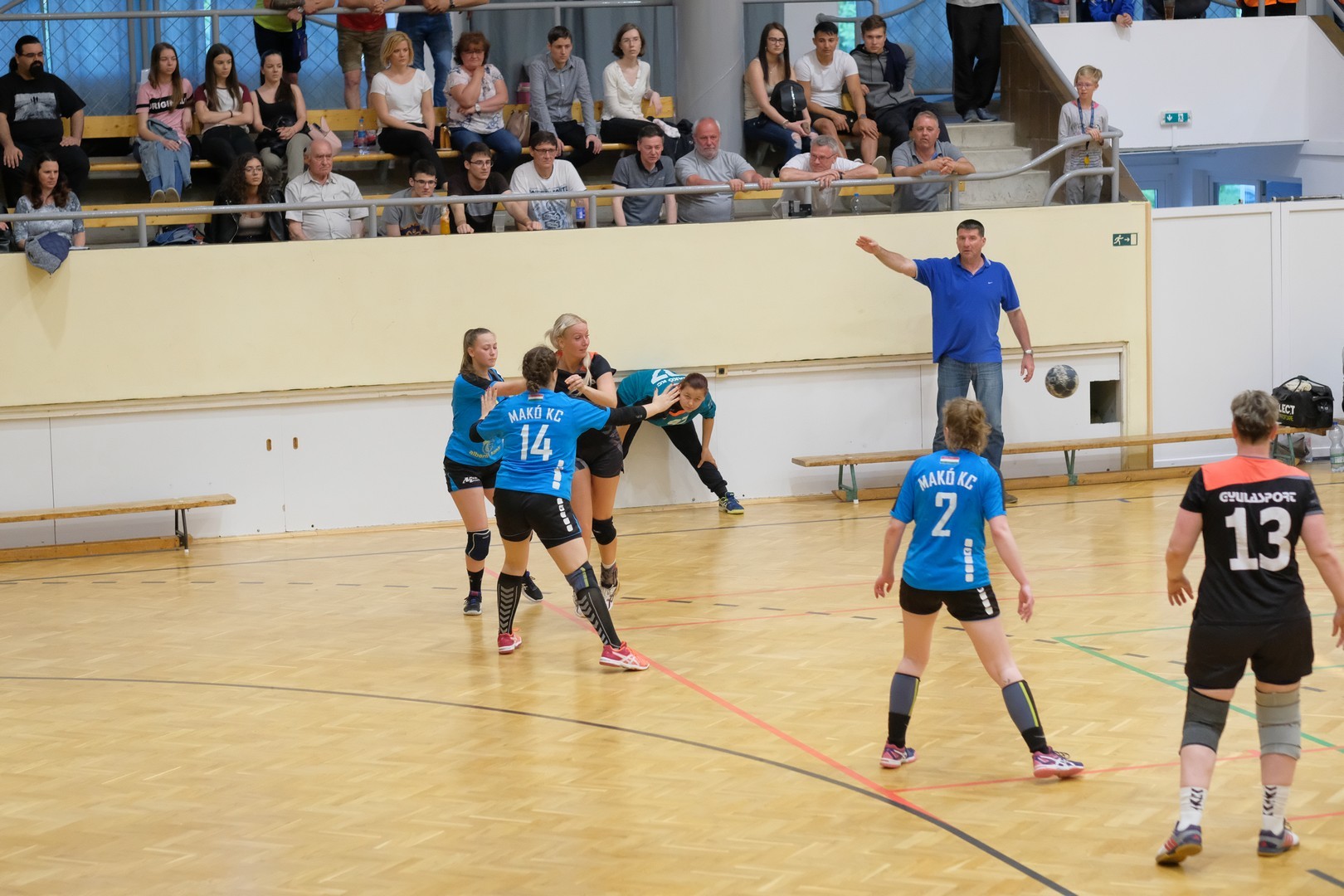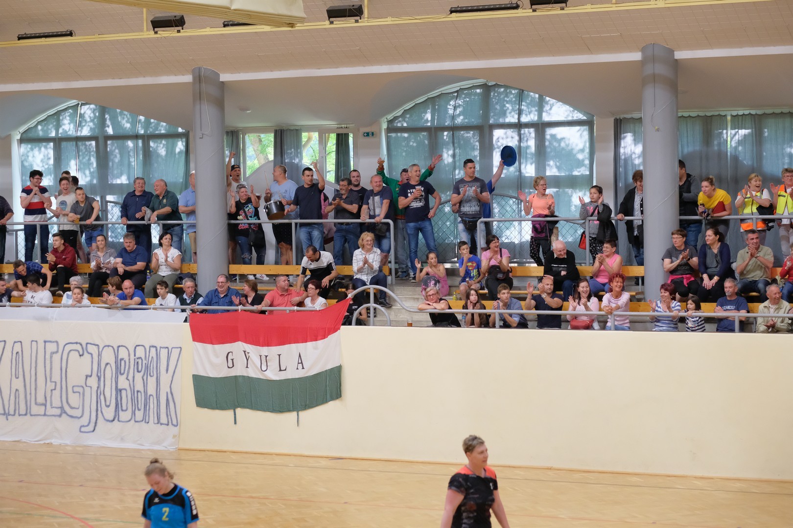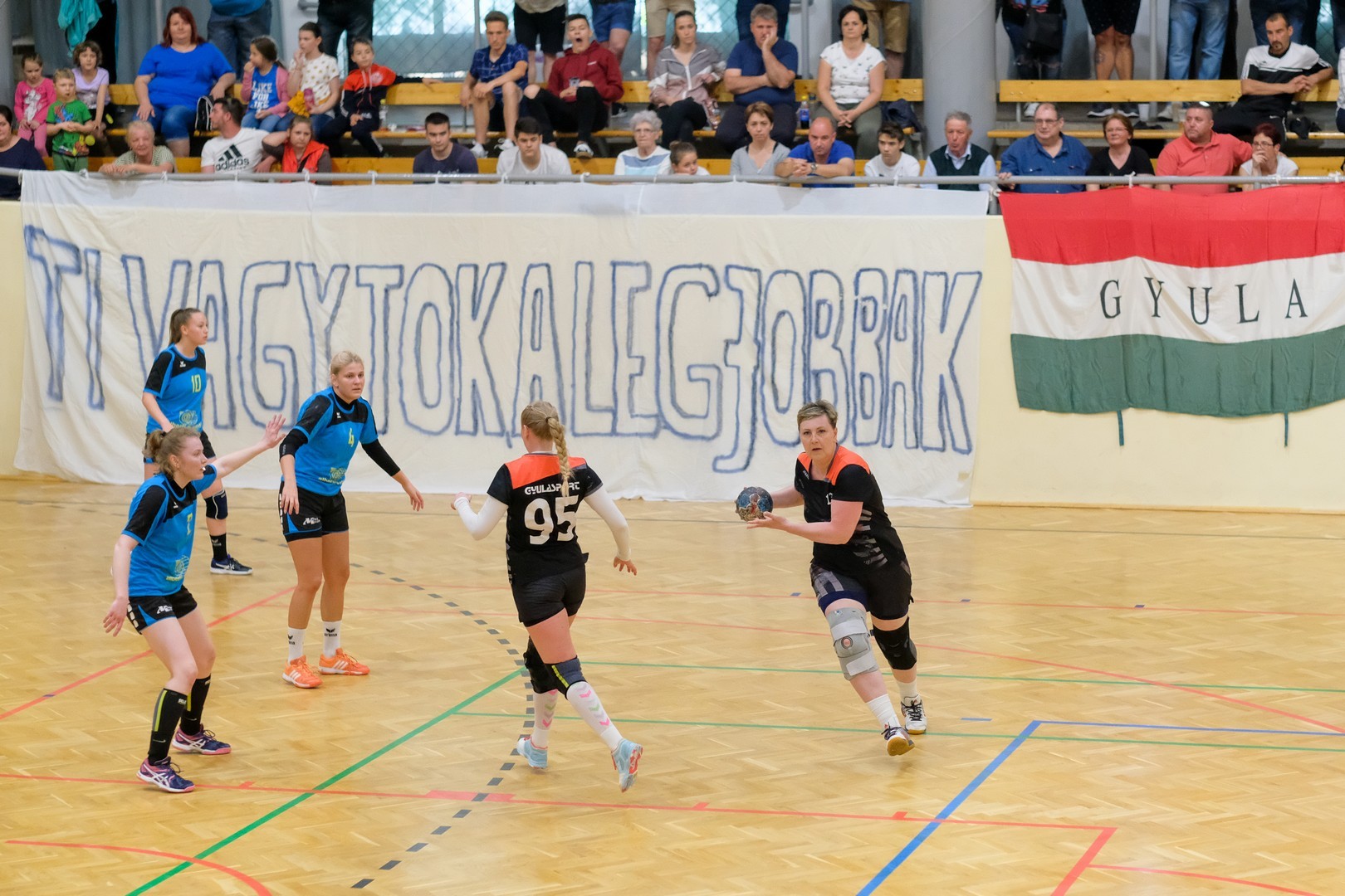 A mindent eldöntő párharc makói góllal kezdődött, ám ez volt az utolsó pillanat, amikor a vendégek érezhették előnyben magukat. Az idegesen és szétszórtan játszó gyulai csapat percről percre növelte előnyét, így már a félidő végére kilencgólos előnyt harcolt ki magának. A hazai drukkerek egy különleges gólnak is szemtanúi lehetnek, amikor a Kovács-Csapó Hajnalka a játékrész legszebb megmozdulásaként lőtte saját hatosáról az ellenfél kapujába a labdát.