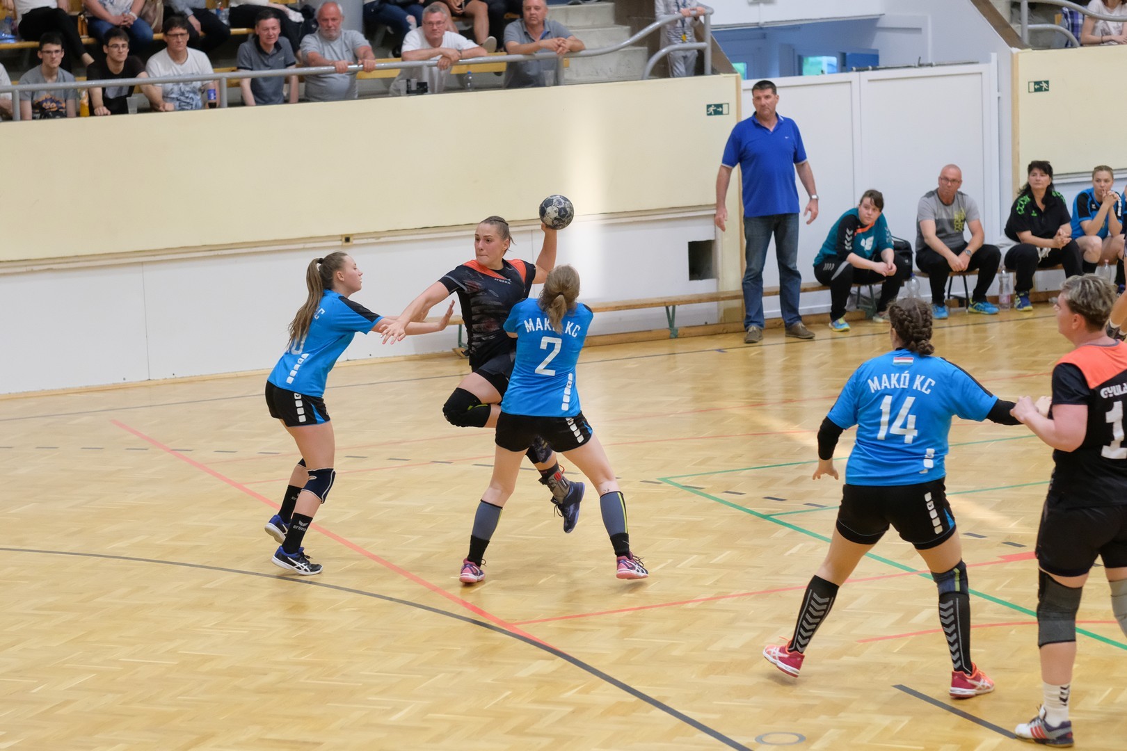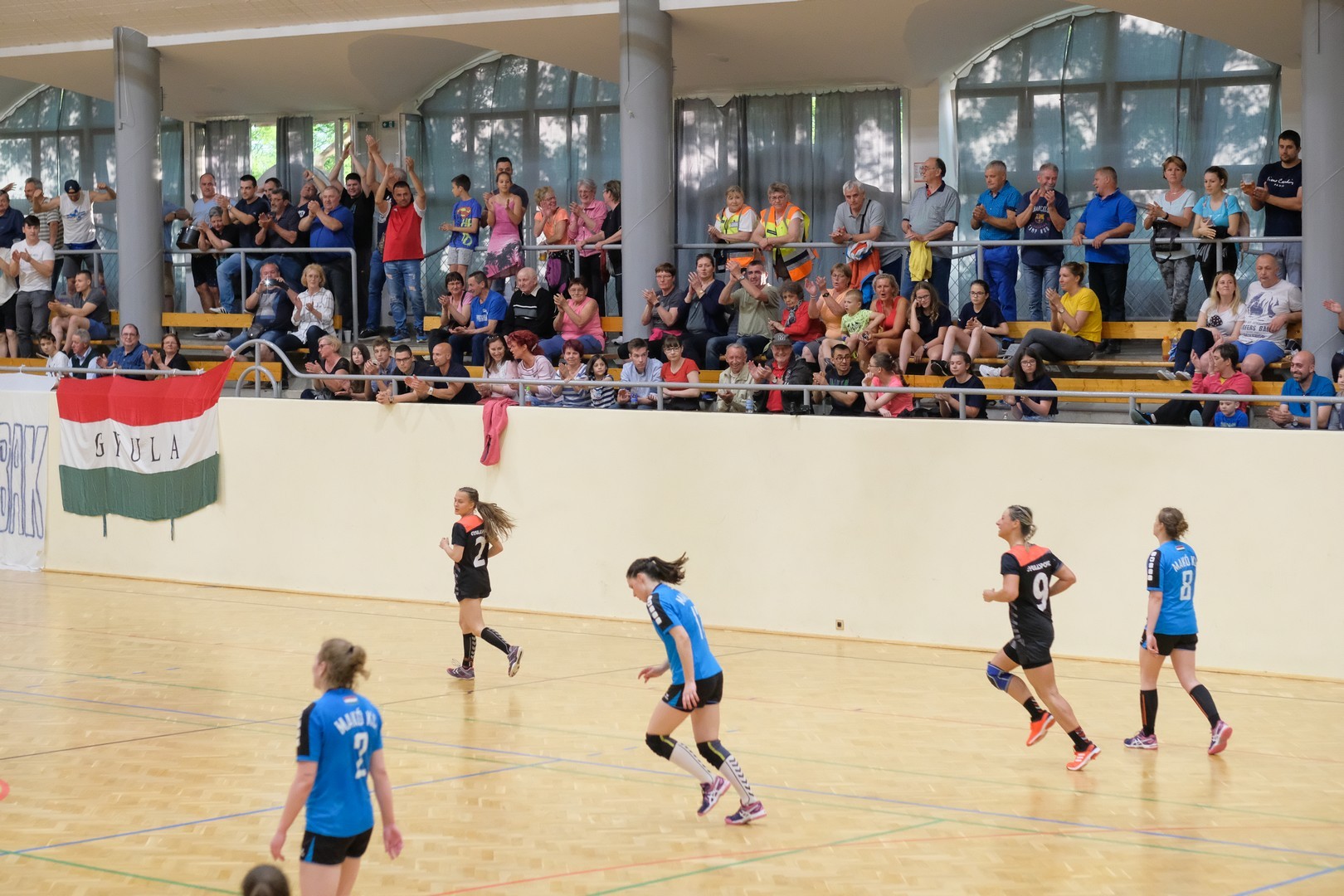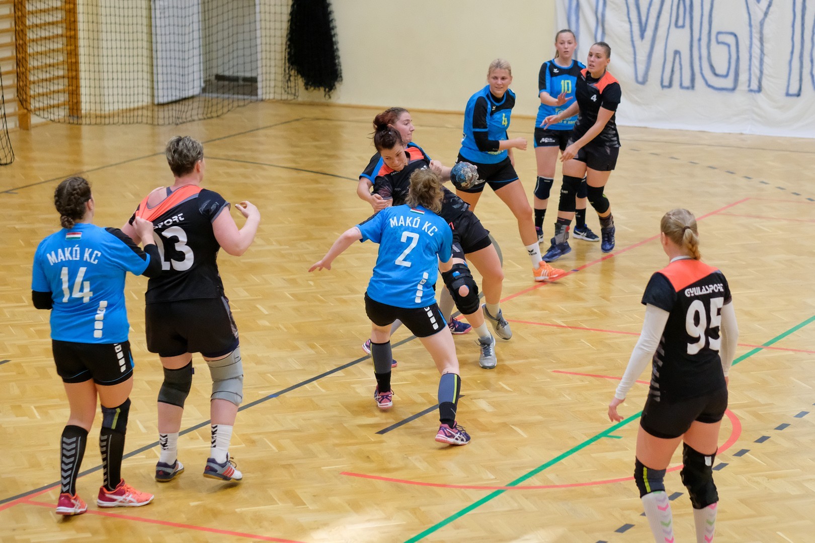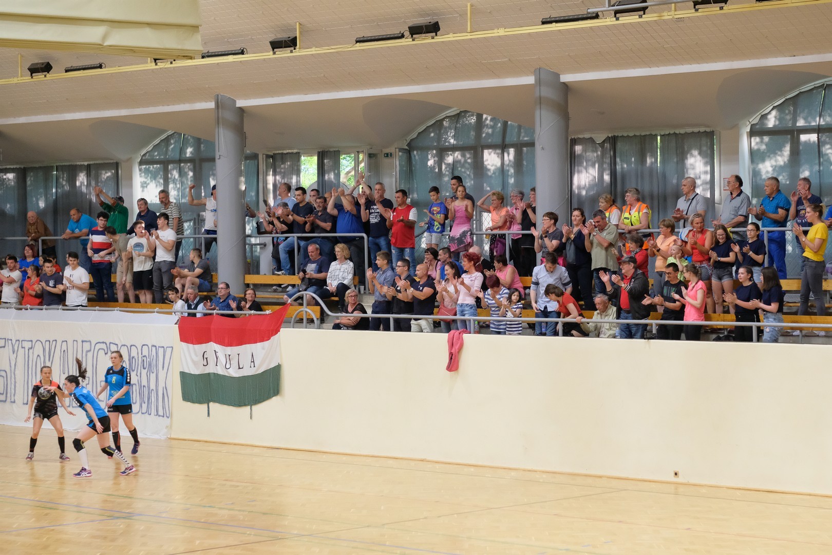 A mindent eldöntő párharc makói góllal kezdődött, ám ez volt az utolsó pillanat, amikor a vendégek érezhették előnyben magukat. Az idegesen és szétszórtan játszó gyulai csapat percről percre növelte előnyét, így már a félidő végére kilencgólos előnyt harcolt ki magának. A hazai drukkerek egy különleges gólnak is szemtanúi lehetnek, amikor a Kovács-Csapó Hajnalka a játékrész legszebb megmozdulásaként lőtte saját hatosáról az ellenfél kapujába a labdát.