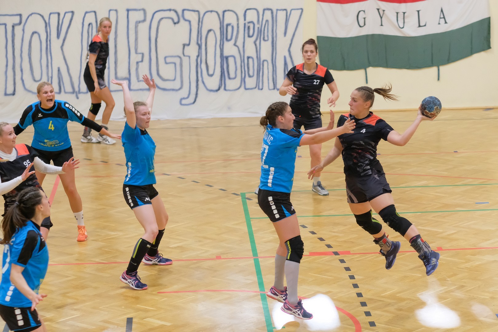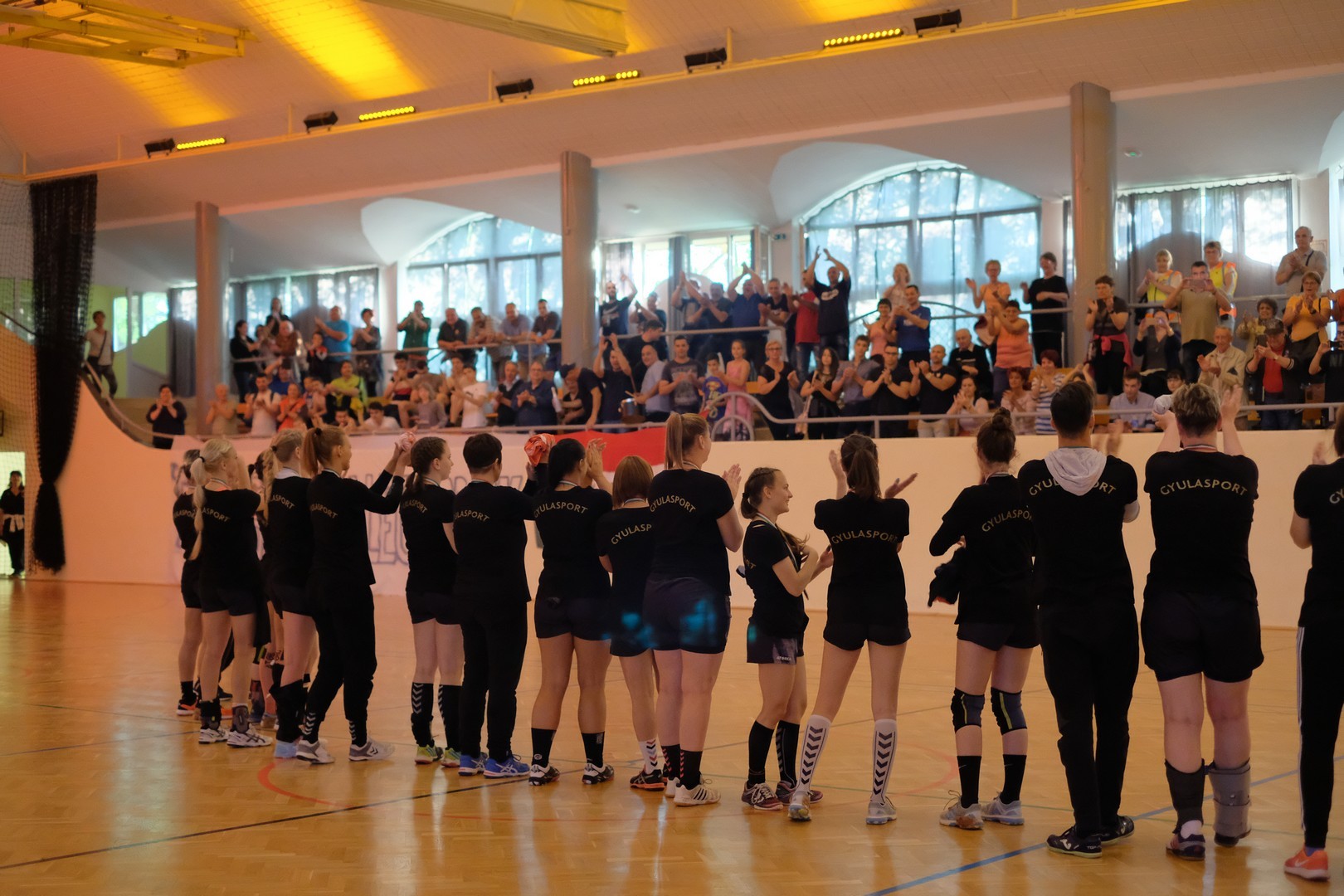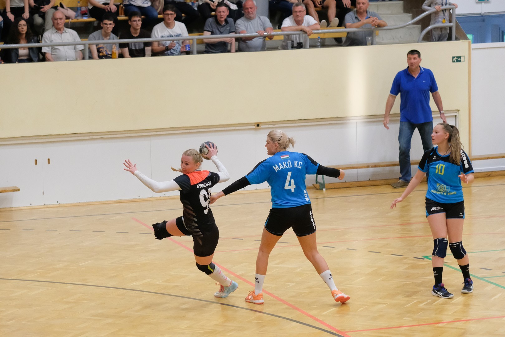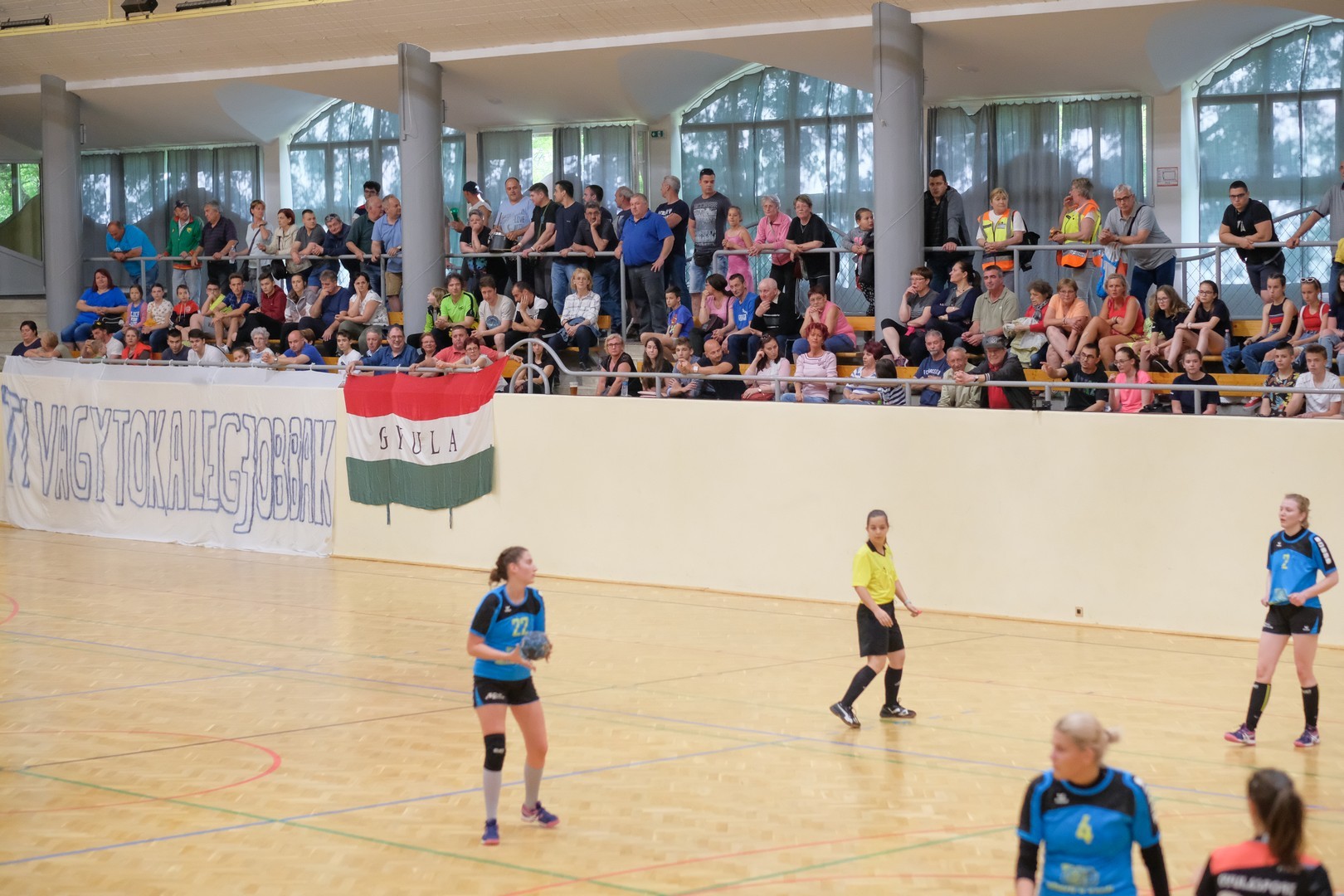 A mindent eldöntő párharc makói góllal kezdődött, ám ez volt az utolsó pillanat, amikor a vendégek érezhették előnyben magukat. Az idegesen és szétszórtan játszó gyulai csapat percről percre növelte előnyét, így már a félidő végére kilencgólos előnyt harcolt ki magának. A hazai drukkerek egy különleges gólnak is szemtanúi lehetnek, amikor a Kovács-Csapó Hajnalka a játékrész legszebb megmozdulásaként lőtte saját hatosáról az ellenfél kapujába a labdát.