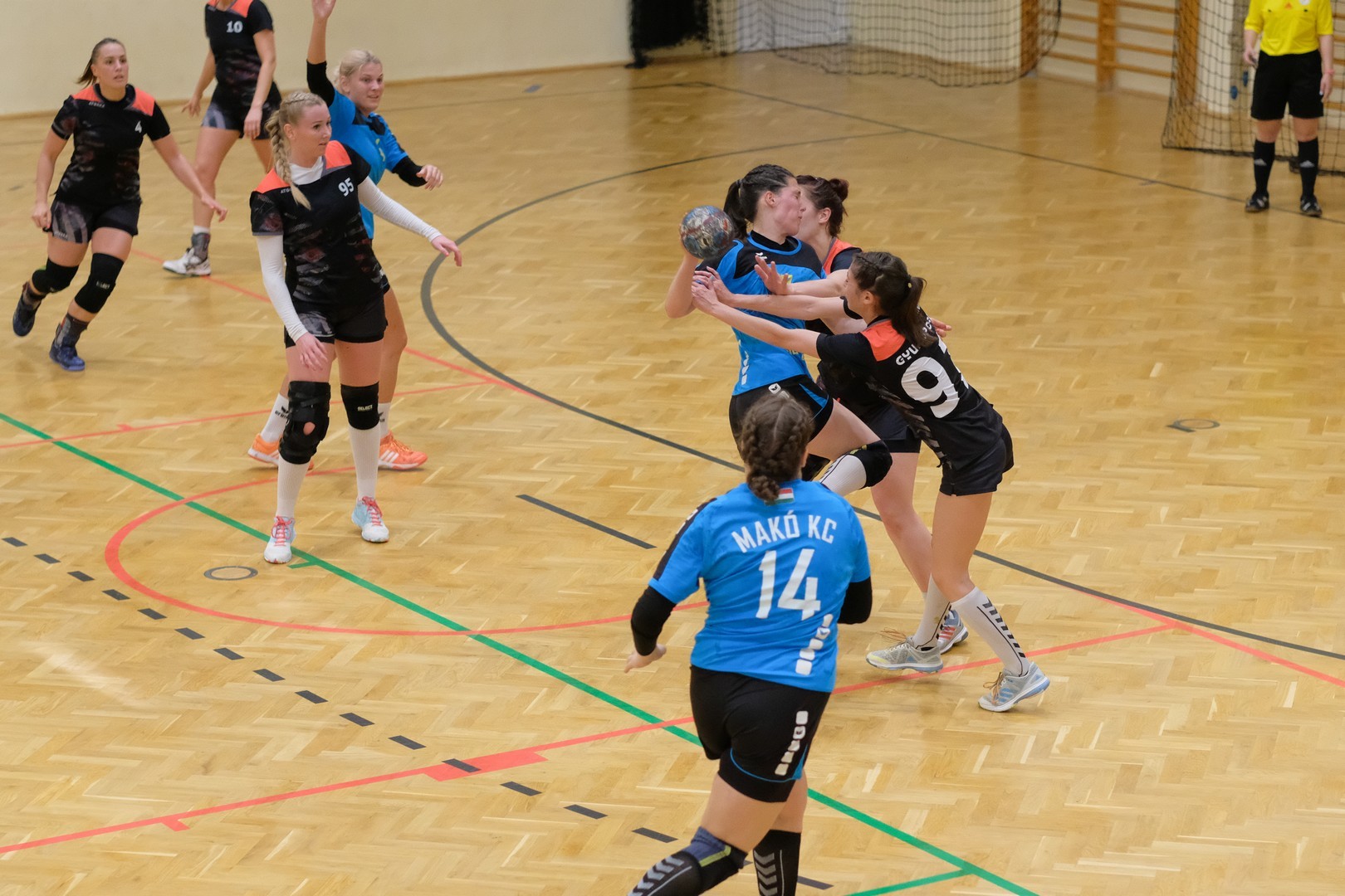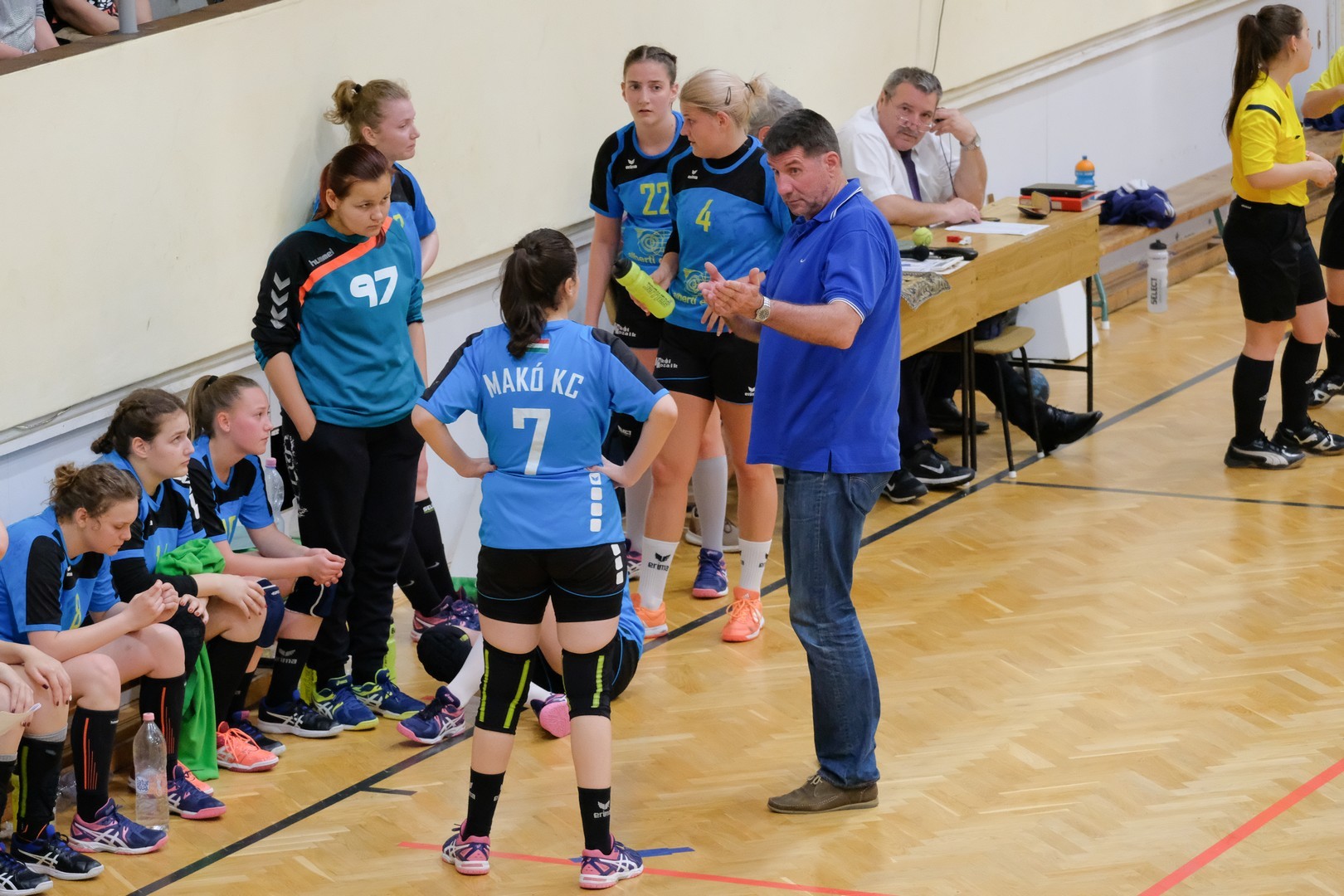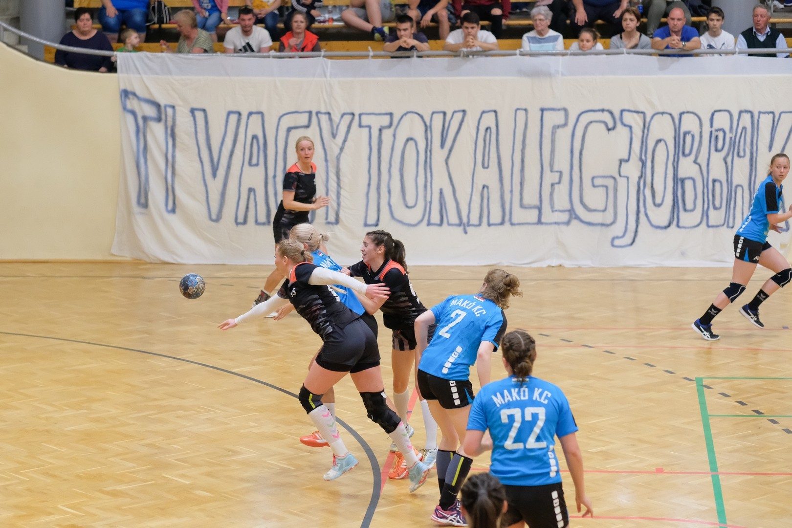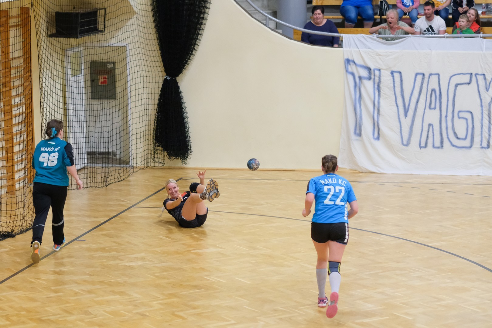 A mindent eldöntő párharc makói góllal kezdődött, ám ez volt az utolsó pillanat, amikor a vendégek érezhették előnyben magukat. Az idegesen és szétszórtan játszó gyulai csapat percről percre növelte előnyét, így már a félidő végére kilencgólos előnyt harcolt ki magának. A hazai drukkerek egy különleges gólnak is szemtanúi lehetnek, amikor a Kovács-Csapó Hajnalka a játékrész legszebb megmozdulásaként lőtte saját hatosáról az ellenfél kapujába a labdát.