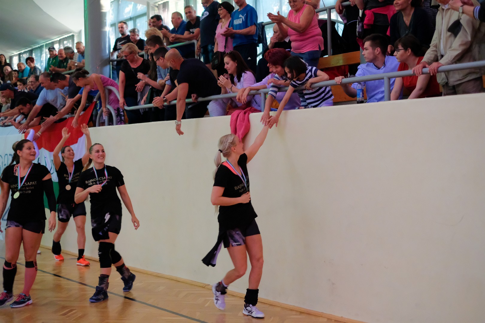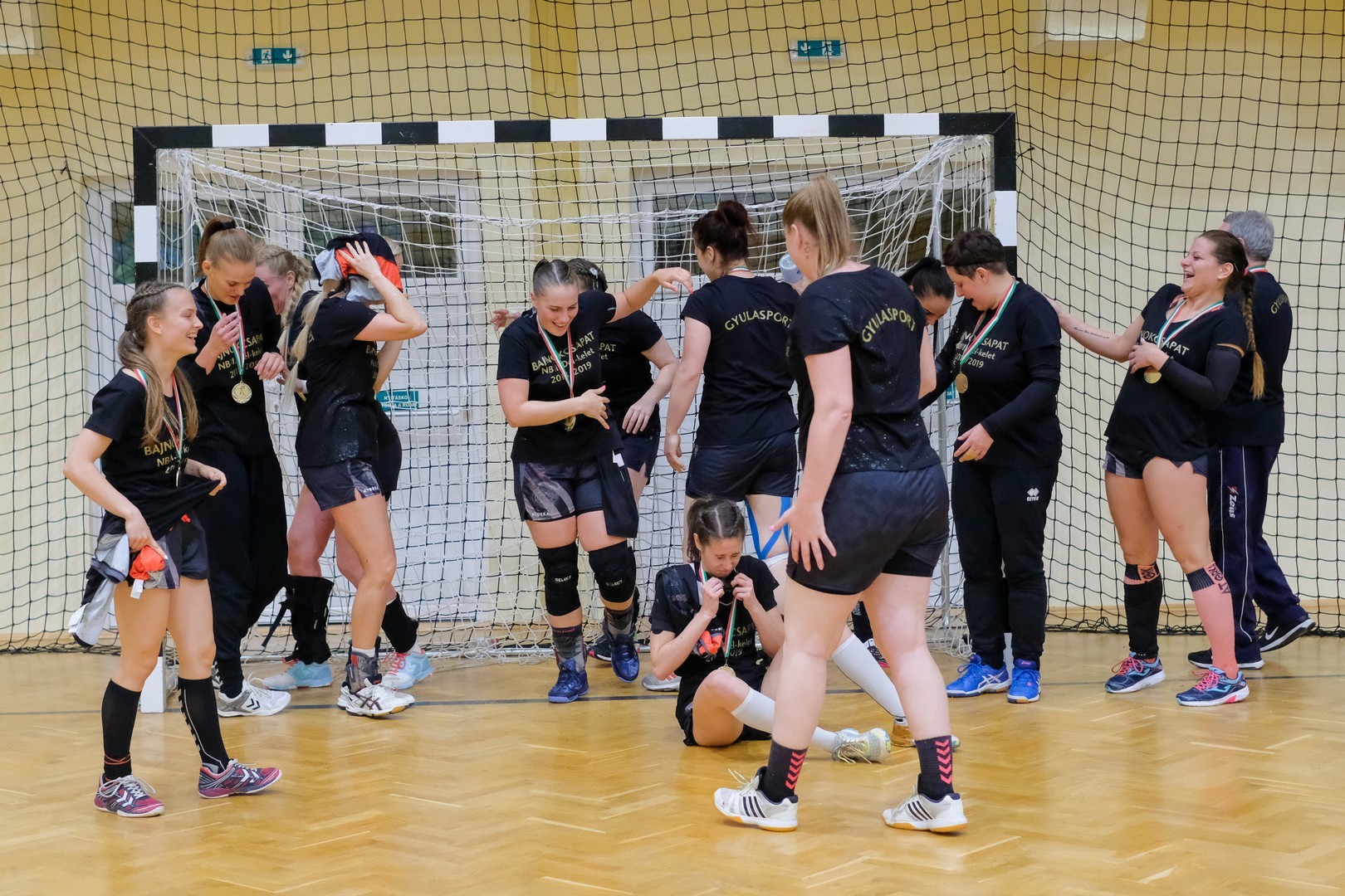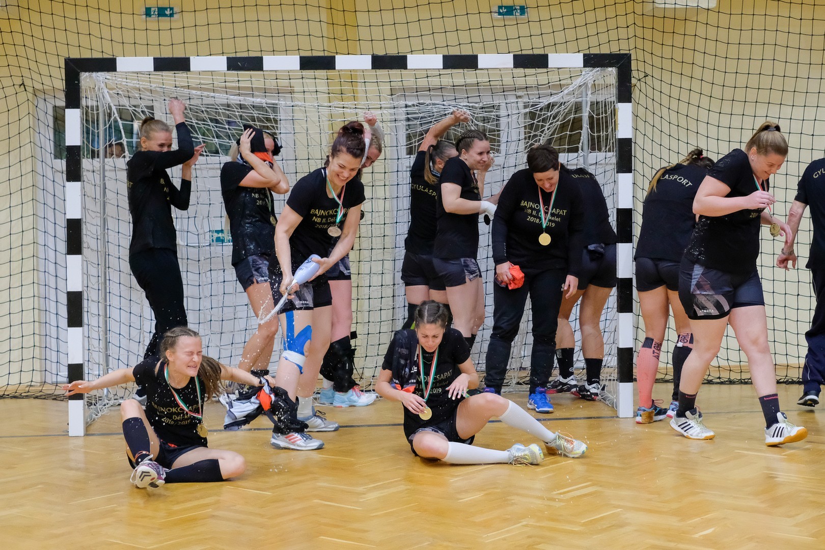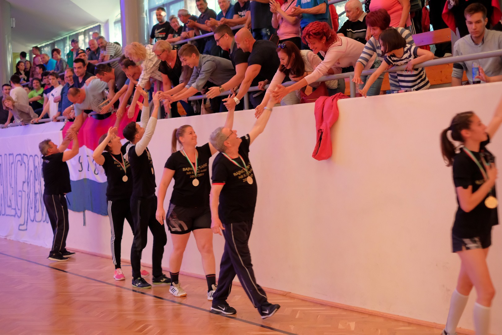 A lefújáskor pedig kitört a bajnoki aranyláz, amikor a Barna-csapat tagjai, a szurkolók hangorkánjának közepette, vehették át az őket megillető aranymedálokat. Az ünneplésbe egy kis üröm is vegyült, hiszen Borsós Erika és Zsittnyánné Csiffáry Csilla is elbúcsúzott szeretett közönségétől.