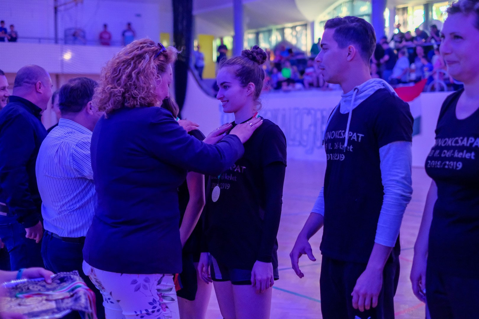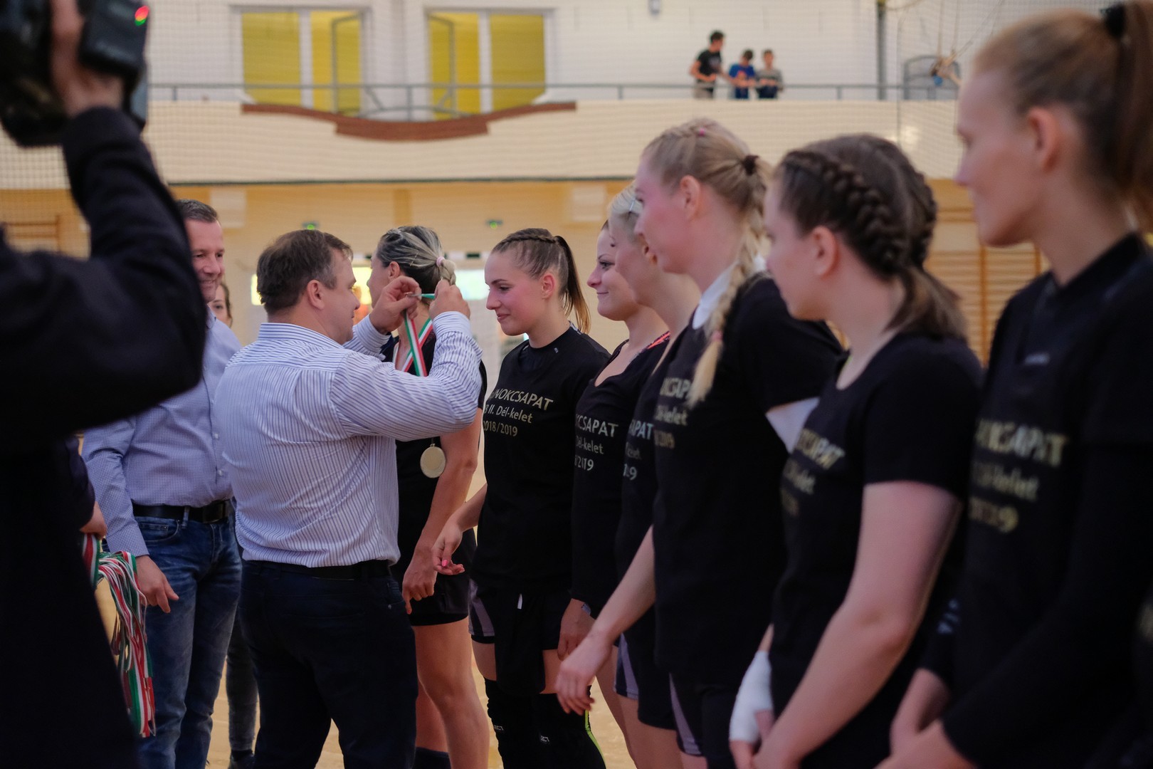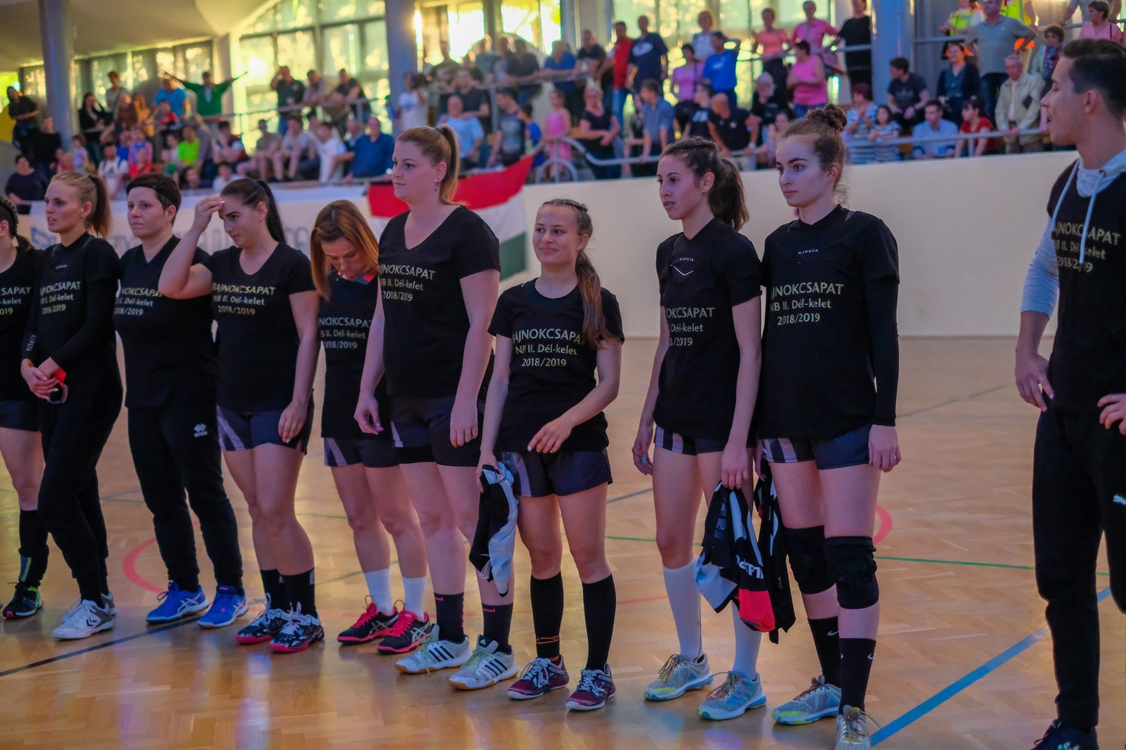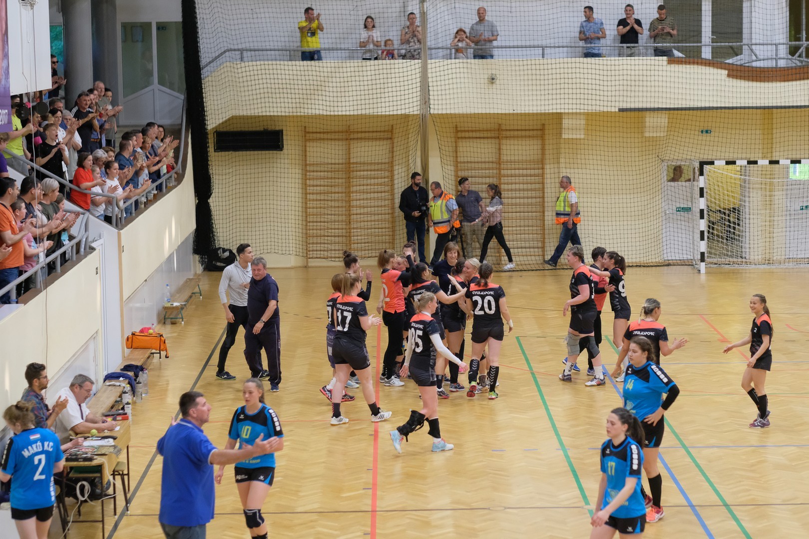 A lefújáskor pedig kitört a bajnoki aranyláz, amikor a Barna-csapat tagjai, a szurkolók hangorkánjának közepette, vehették át az őket megillető aranymedálokat. Az ünneplésbe egy kis üröm is vegyült, hiszen Borsós Erika és Zsittnyánné Csiffáry Csilla is elbúcsúzott szeretett közönségétől.