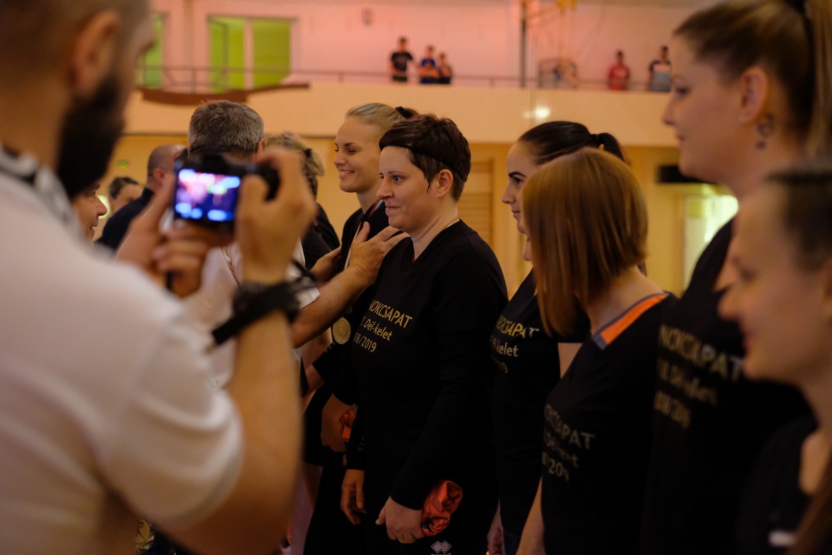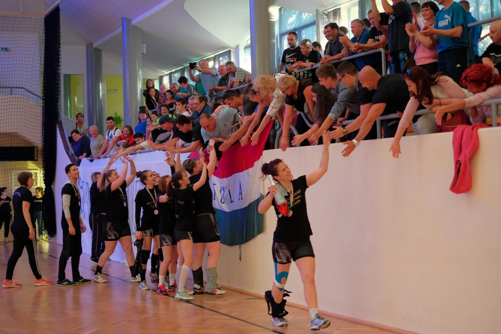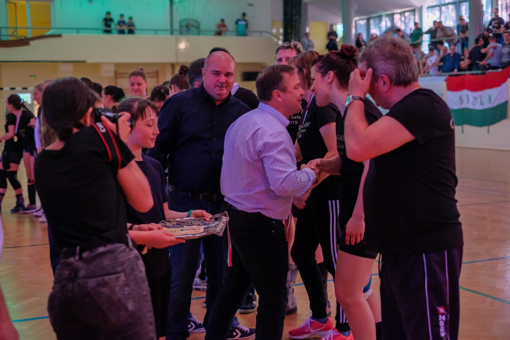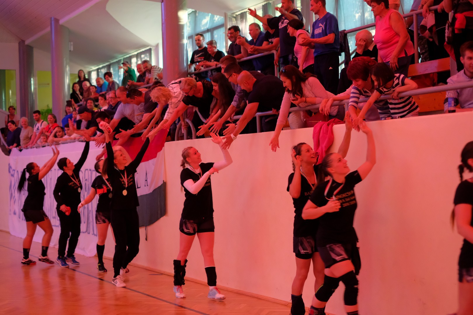 A lefújáskor pedig kitört a bajnoki aranyláz, amikor a Barna-csapat tagjai, a szurkolók hangorkánjának közepette, vehették át az őket megillető aranymedálokat. Az ünneplésbe egy kis üröm is vegyült, hiszen Borsós Erika és Zsittnyánné Csiffáry Csilla is elbúcsúzott szeretett közönségétől.