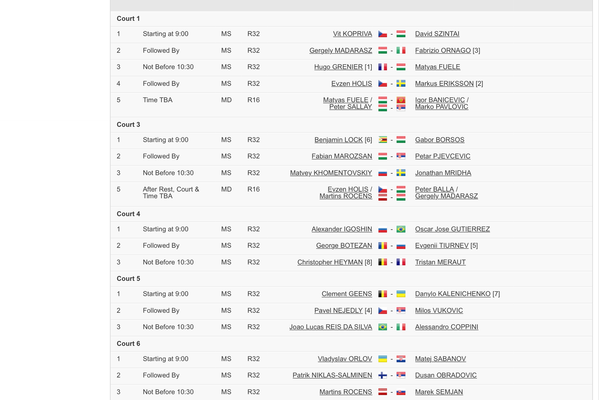 A még versenyben lévő magyar játékosoknak nem sikerült feljutni a főtáblára, a párosok mérkőzései során azonban rögtön egy komoly magyar sikert könyvelhettek el a szurkolók.
