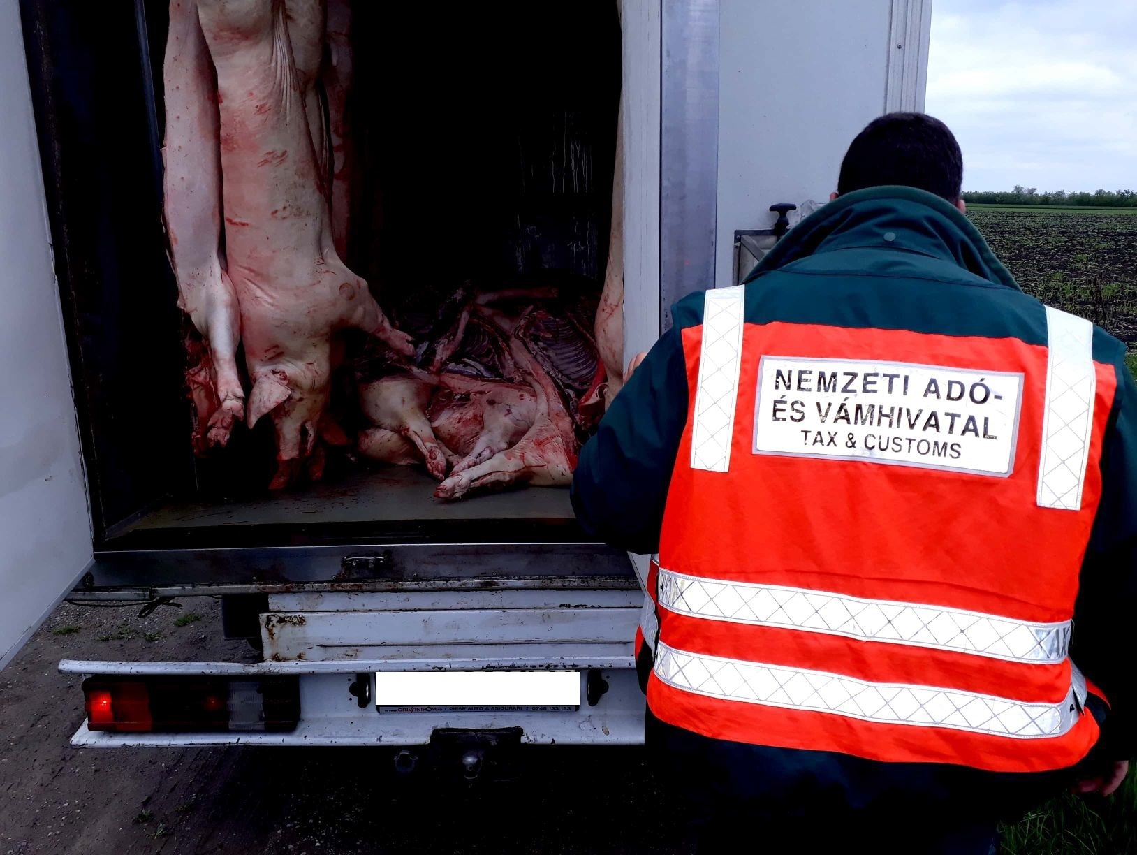 Az egyik, magyar jármű 817 kilogramm hústerméket és belsőséget szállított. A raktérben a hőmérséklet jóval magasabb volt az előírtnál, a padló véres, a tehergépkocsi oldalburkolata pedig repedezett, szennyezett volt.