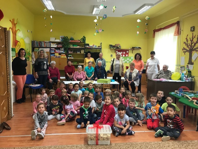A Wenckheim Stefánia Mária Nappali Központba járó idősek május 24-én a máriafalvai óvodába látogattak el, ahol gyereknap alkalmából saját készítésű süteményekkel lepték meg a kicsiket.