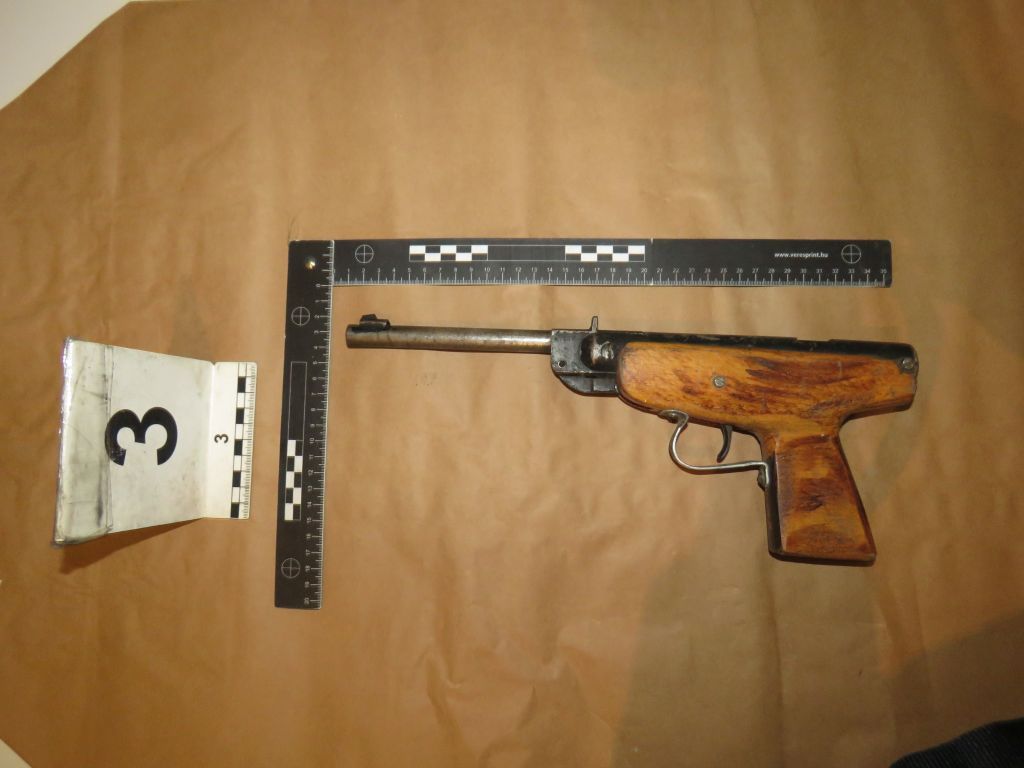 A baleset után tartott házkutatáson a rendőrök a lakóházban és melléképületeiben az átalakított légpisztoly mellett találtak egy szintén átalakított maroklőfegyvert és egy kispuskát, valamint csaknem száz lőszert. A férfinak nem volt a fegyverek, lőszerek tartásához engedélye.