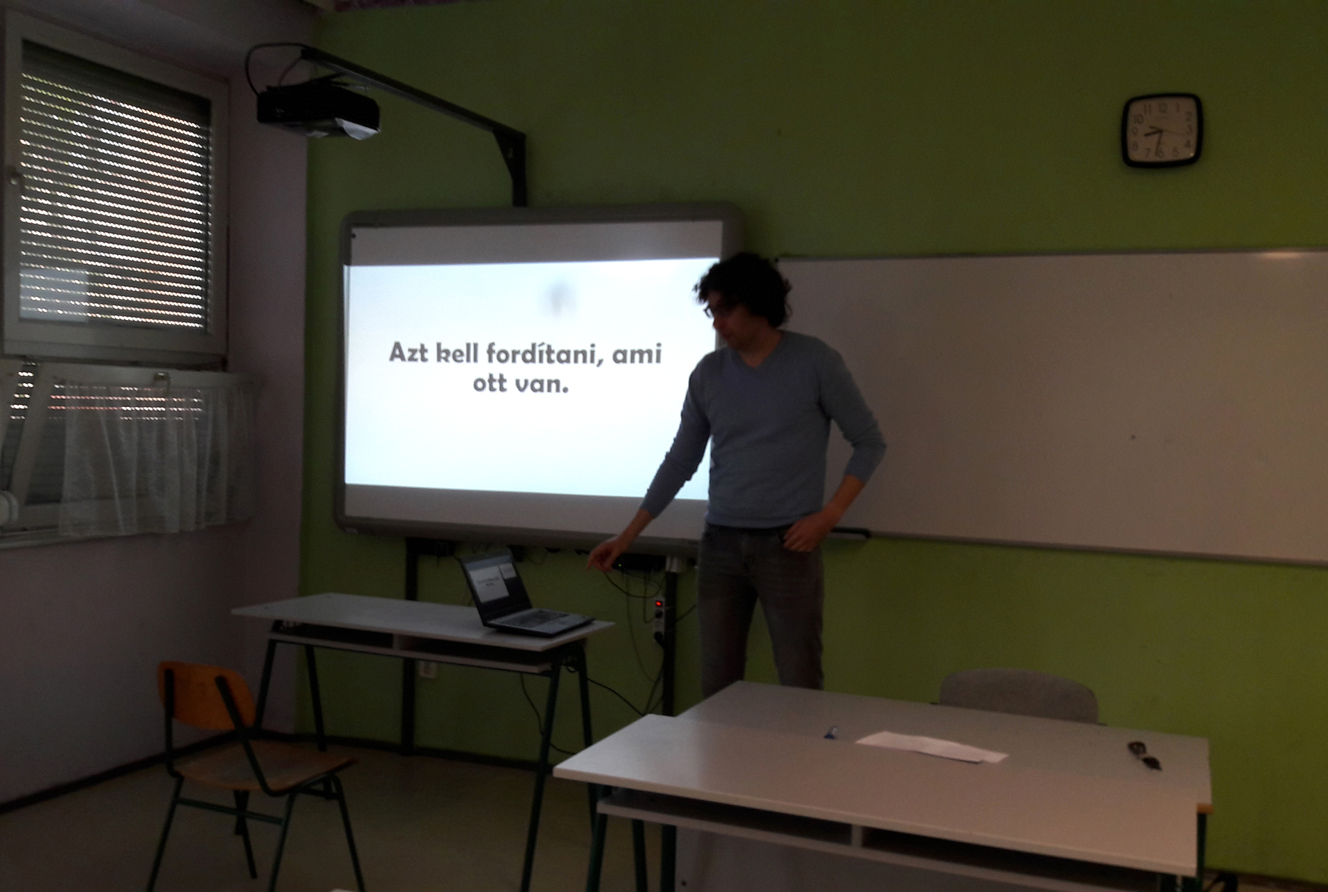 A Mogyoróssy János Városi Könyvtárban tartott fordítói bemutatkozása után június 7-én az Erkel Ferenc gimnáziumban tartott rendhagyó németórát Csősz Róbert.