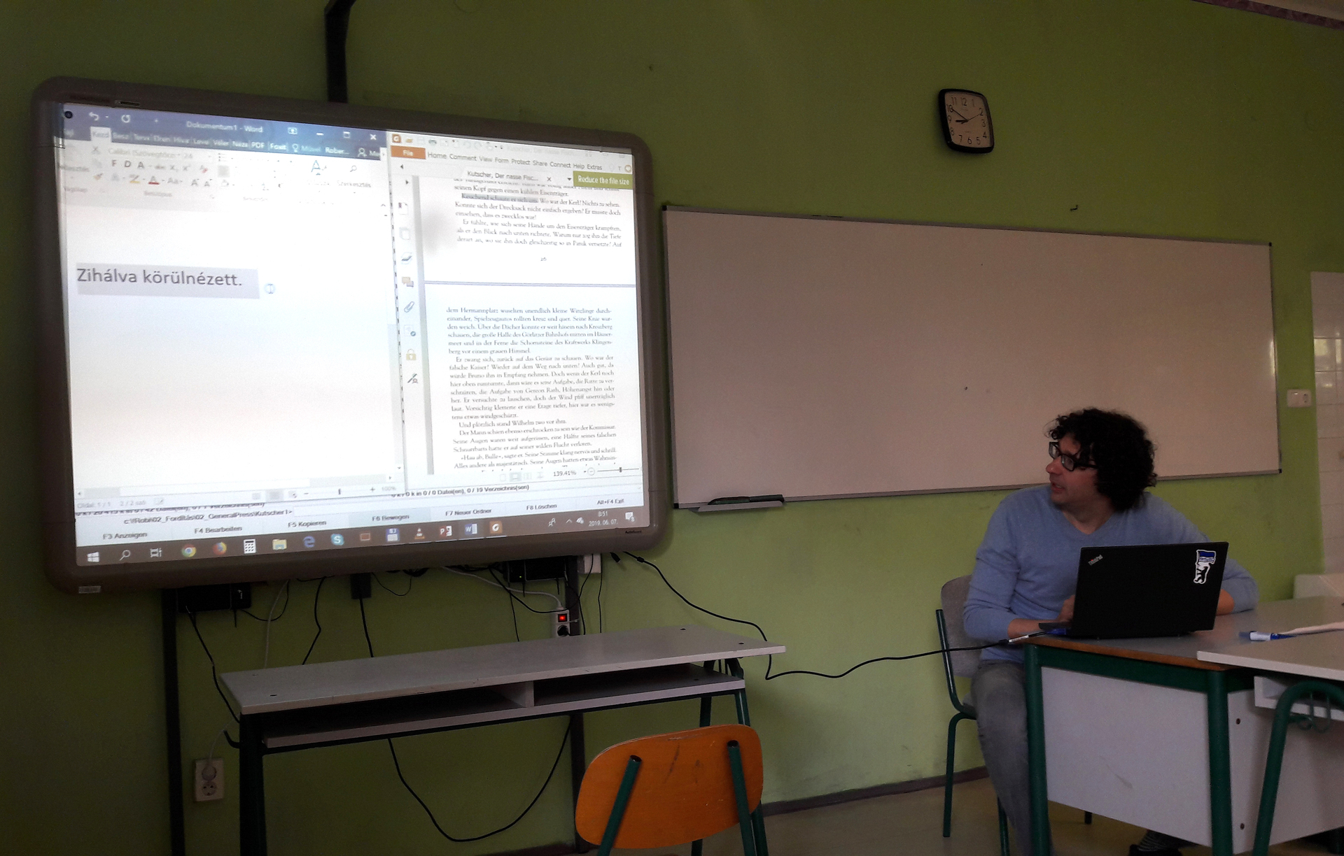 Az Erkel-gimnázium tizenegyedikes német fakultációs tanulóival csoportmunkában fordították a német író nagy sikerű regényének, a Tisztázatlan bűnügynek néhány részletét. A rendhagyó órára a Goethe Intézet kezdeményezésére és támogatásával kerülhetett sor.